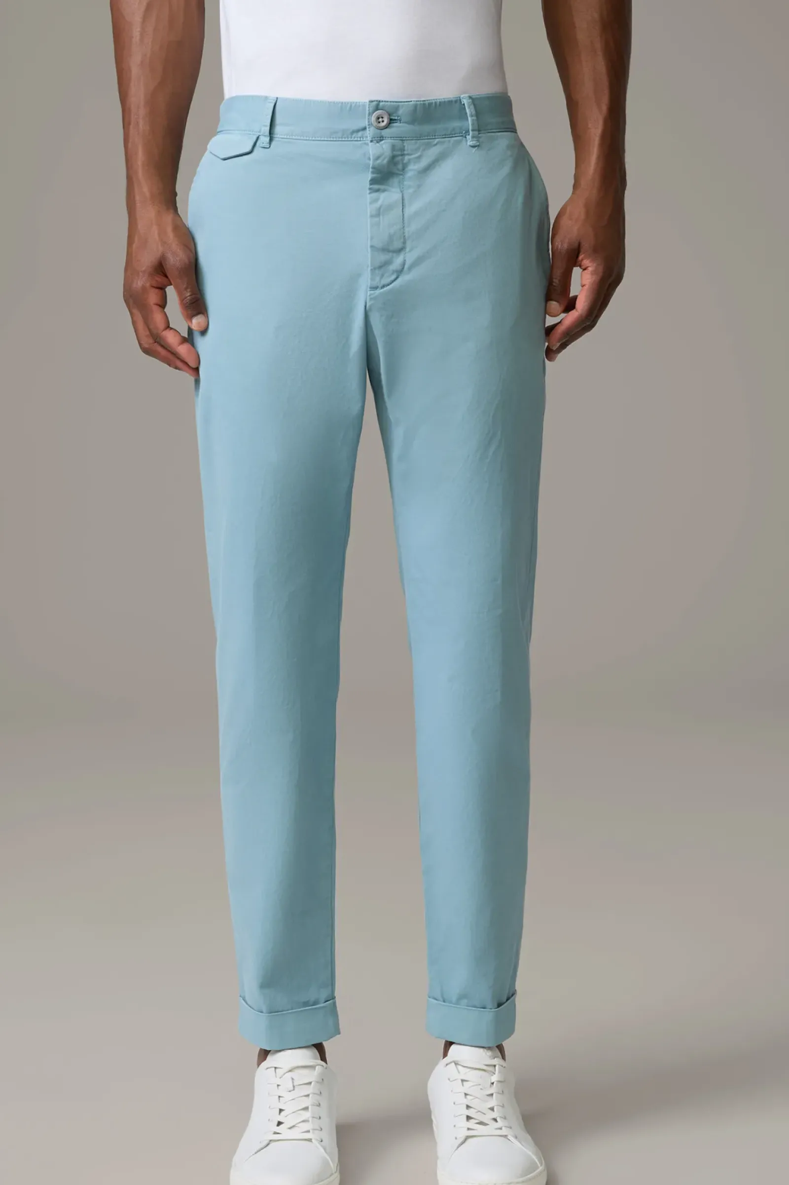 Die Chino Luc aus Cotton-Stretch überzeugt in elastischer Qualität und dezent strukturierter Optik. Mit Pattengesäßtaschen und fixiertem Umschlag am Hosensaum.