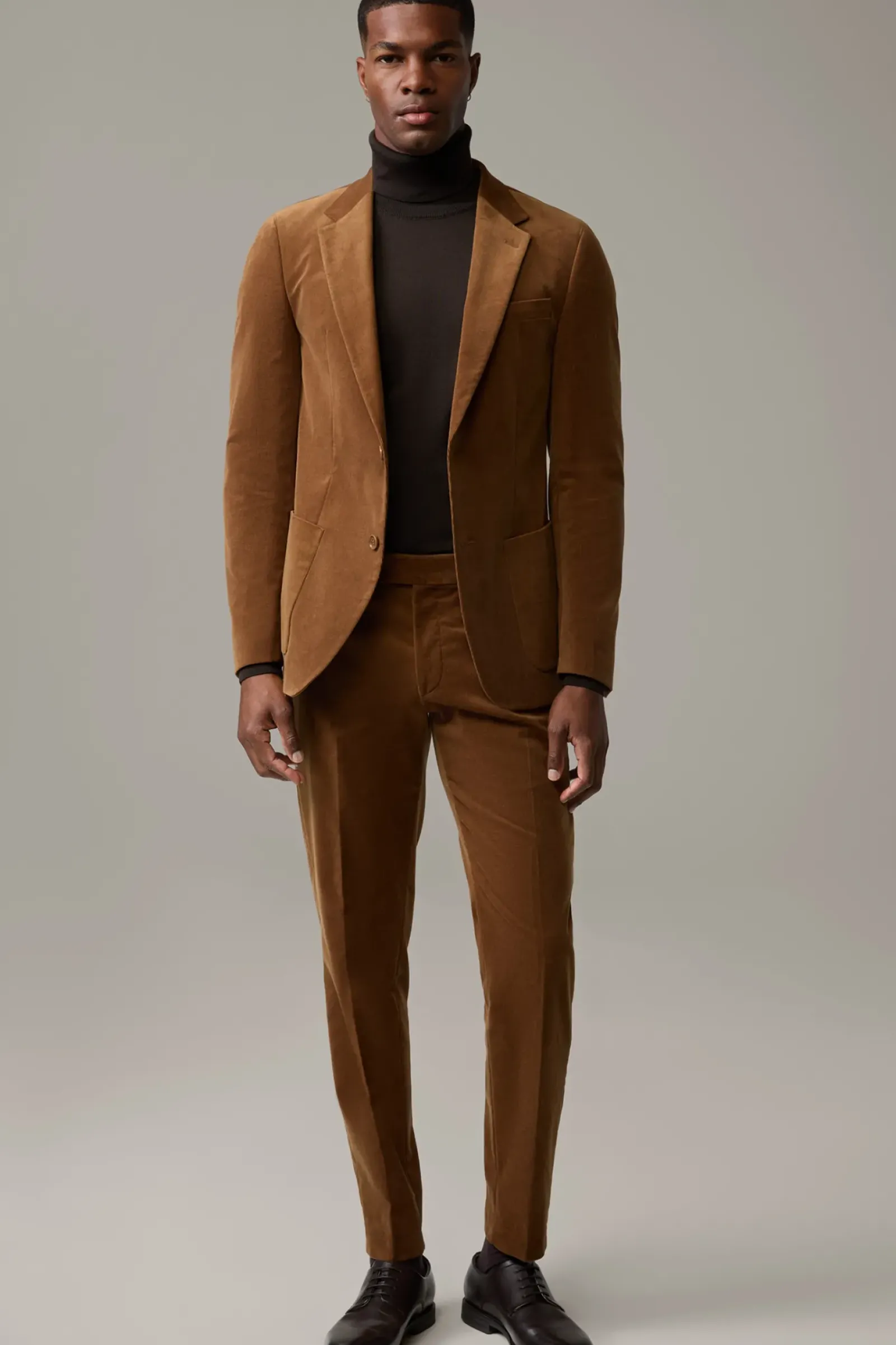 Komfortabel und stylisch: die Anzughose im Cord-Design mit Bügelfalten, Leistengesäßtaschen und doppelter Hakenschließe. Mit fließendem Kniefutter.