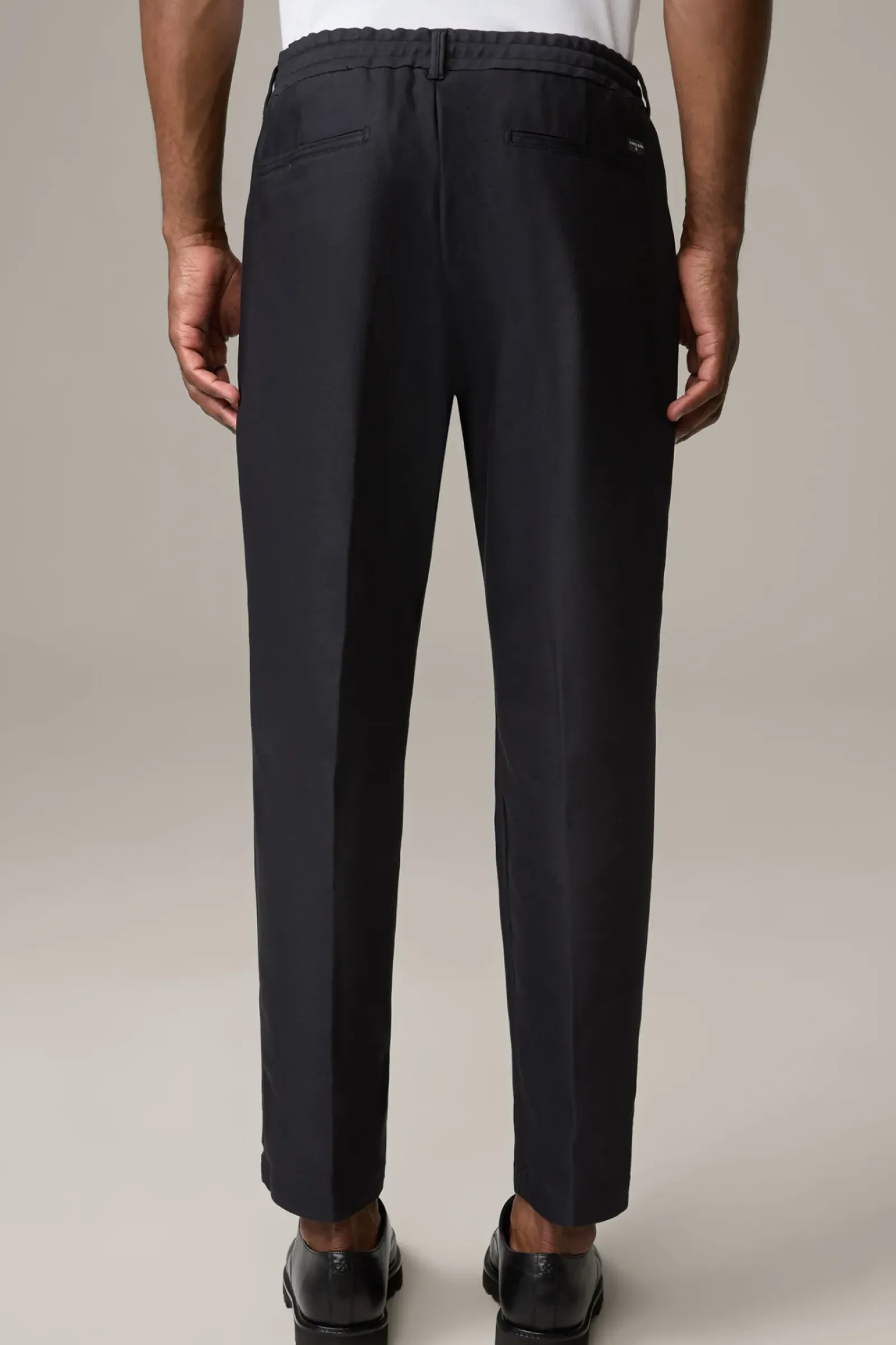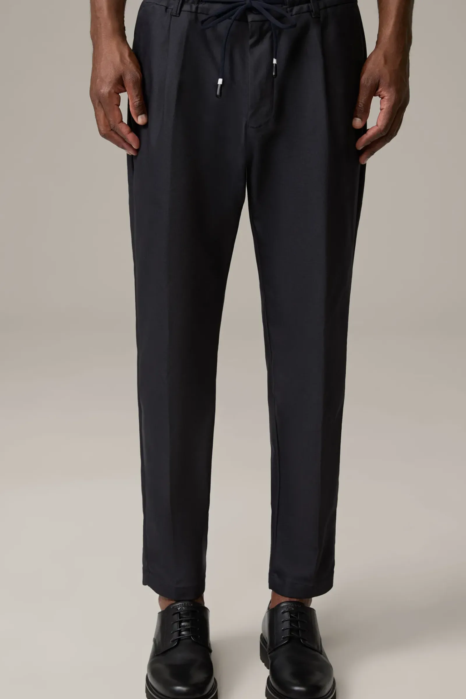 Begeistert mit Bundfalte im lässigen Stretch-Mix: die Anzughose Lui mit elastischem Tunnelzugbund und Leistengesäßtaschen. Relaxter Fit.