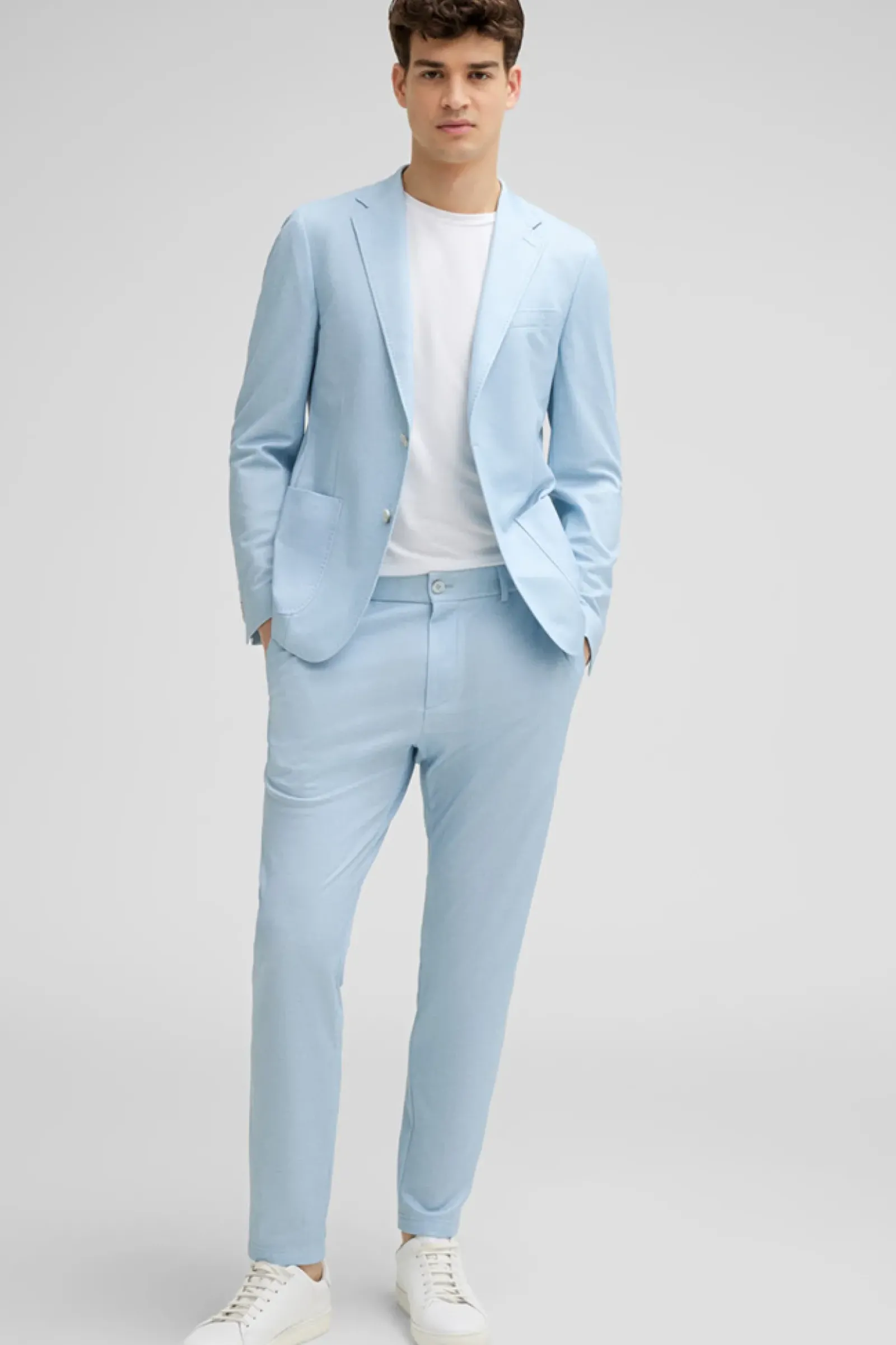 Ein Maximum an Komfort bietet die Anzughose Tius im pflegeleichten, knitterfreien und schnelltrocknenden 4-Way-Stretch aus Tech-Cotton. Mit rückseitig elastischem Bund und klassischen Bügelfalten.
