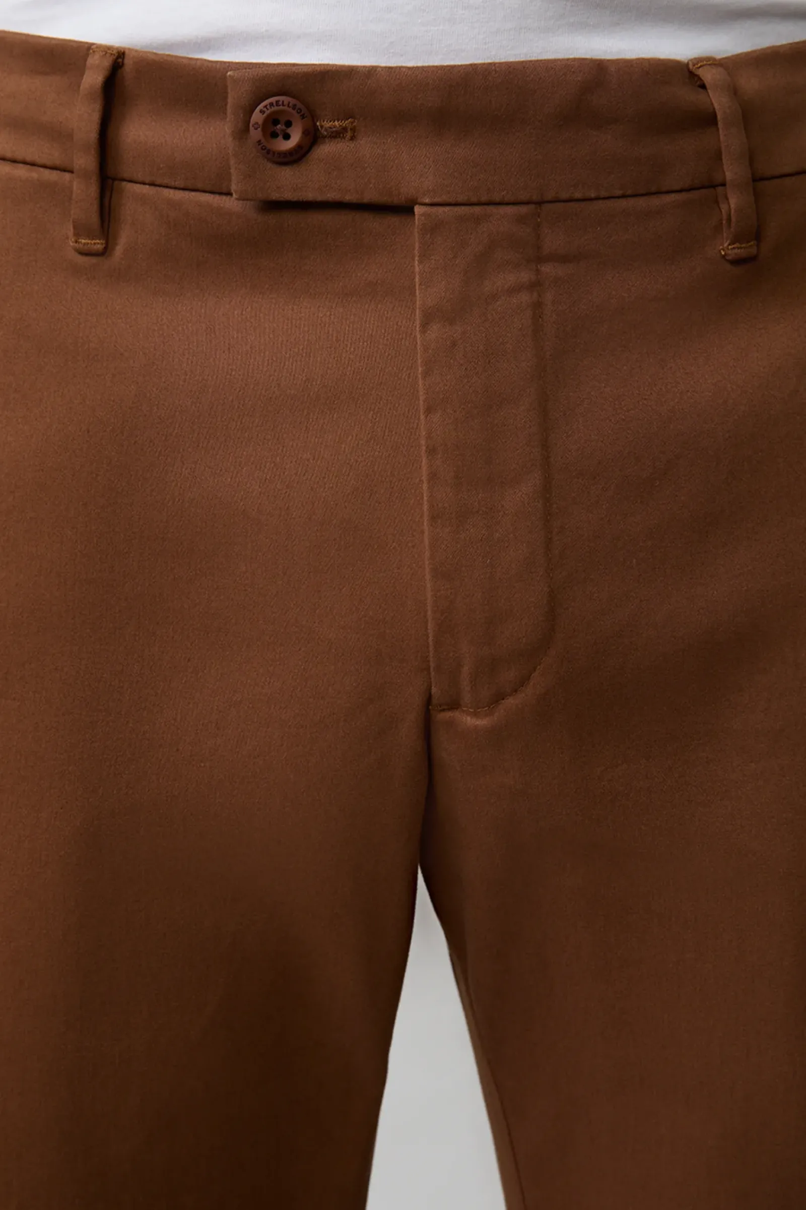 In Flex Cross-Qualität mit schmalem Beinverlauf punktet die Chino Code. Mit Paspelgesäßtaschen und Knopfriegel.