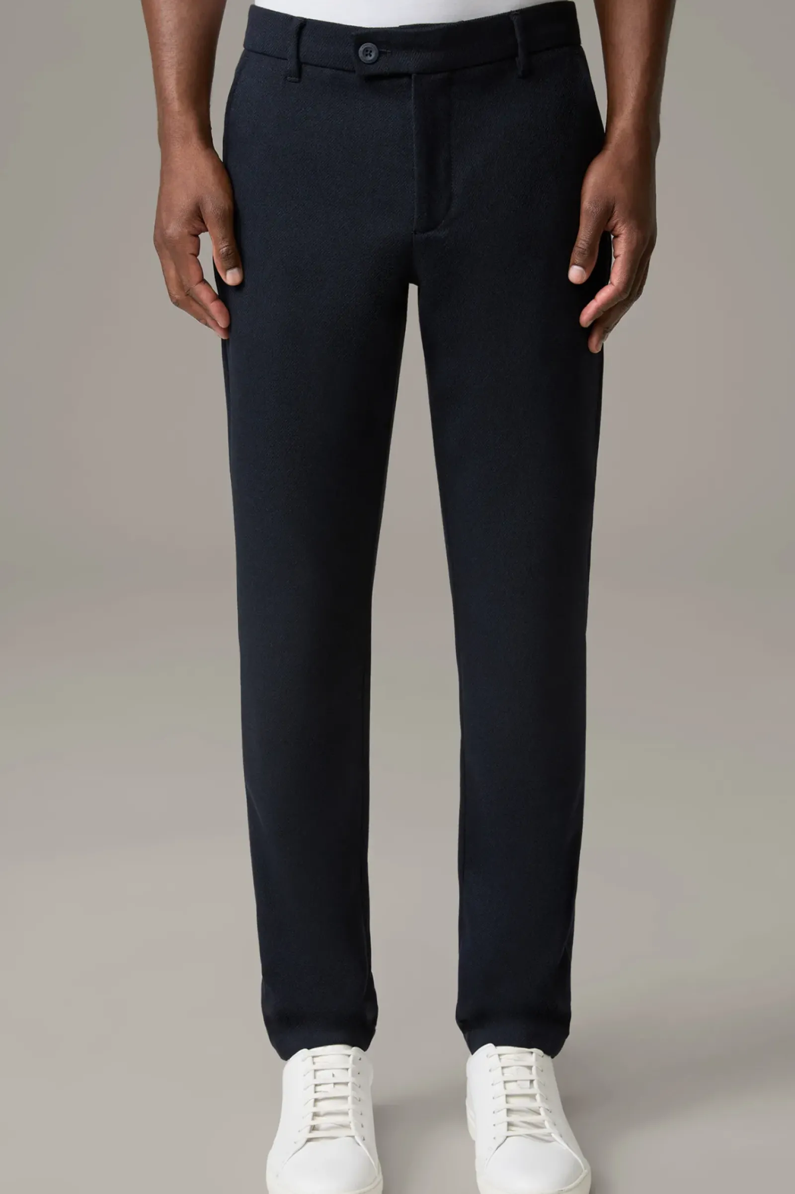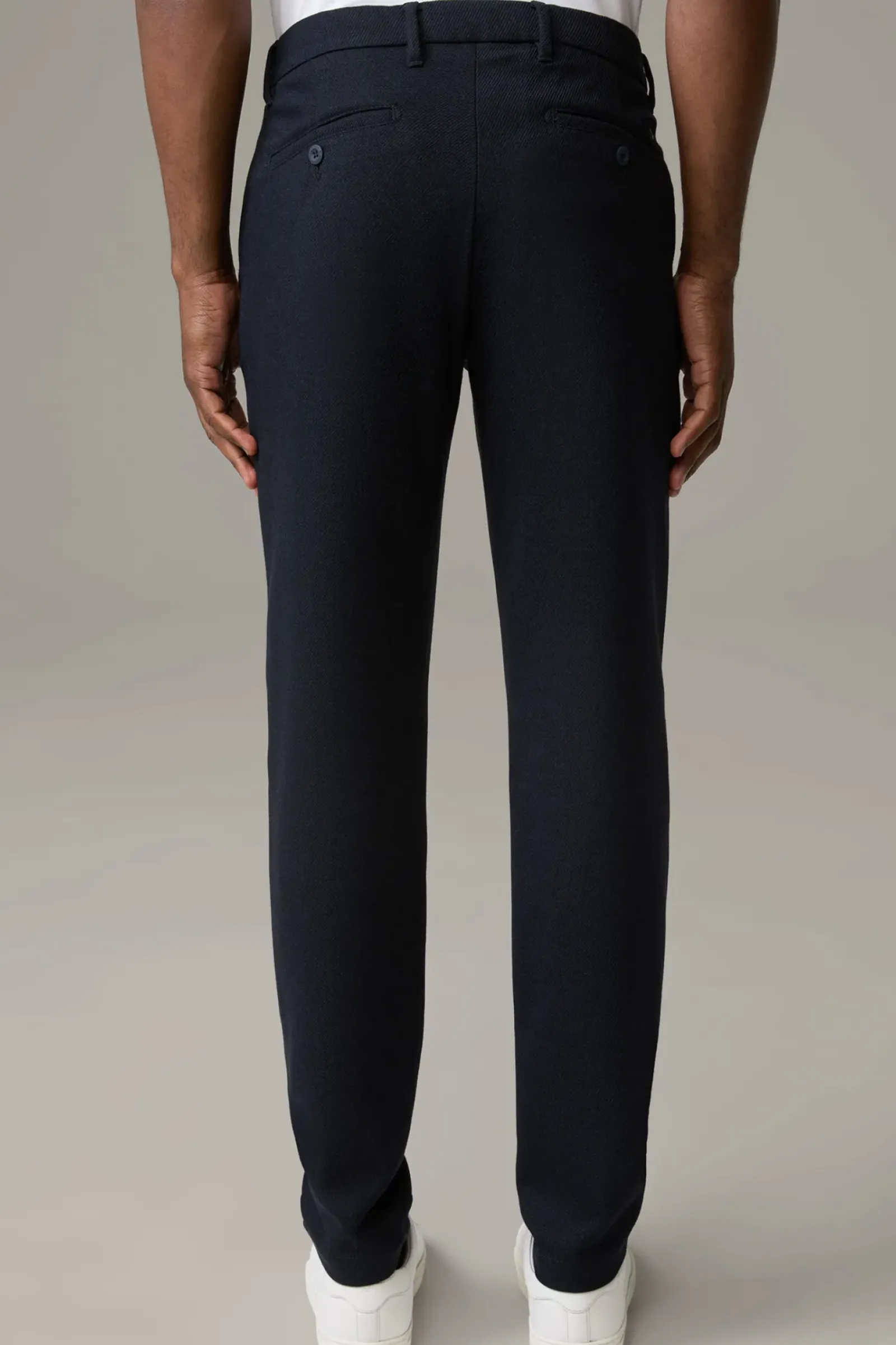 Die Chino Code begeistert mit knöpfbaren Paspelgesäßtaschen und komfortablem Knopfriegel. Stretchiger Viskose-Mix.