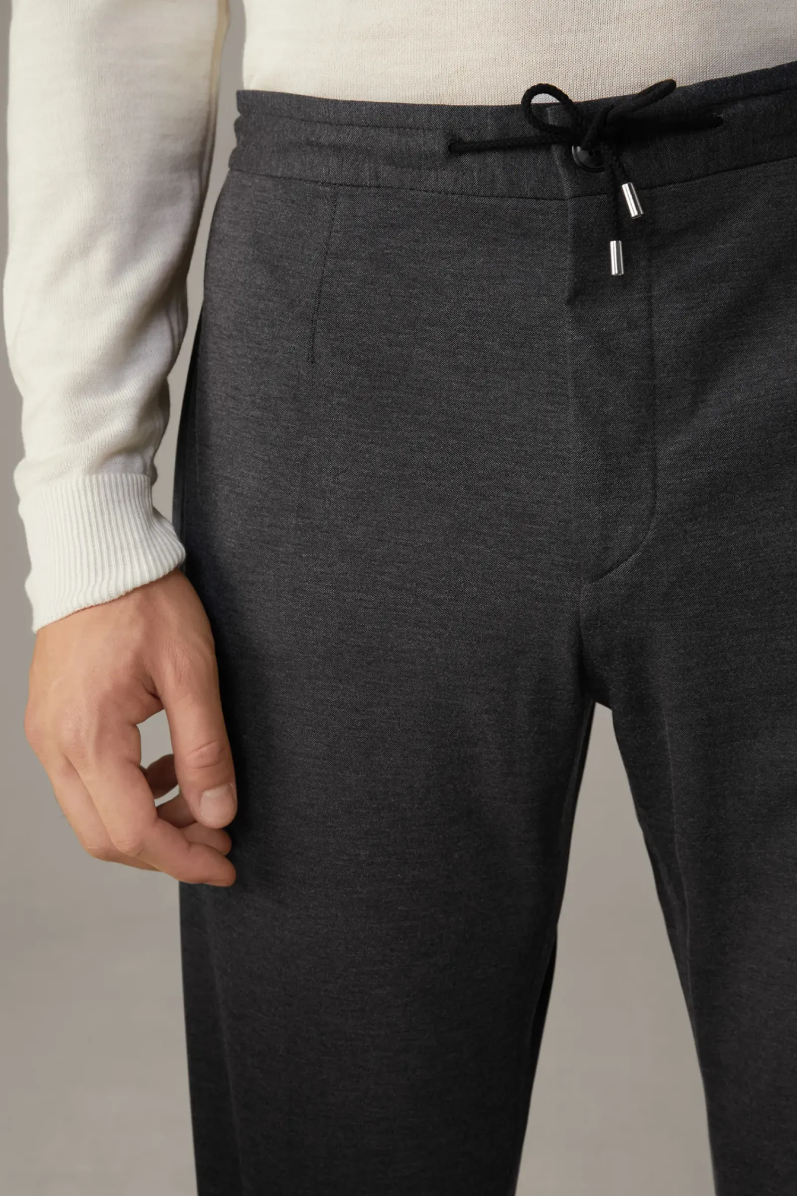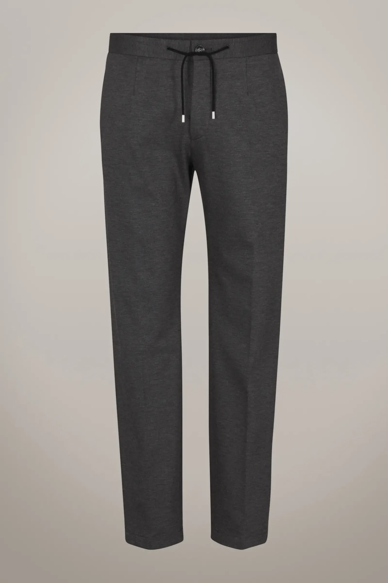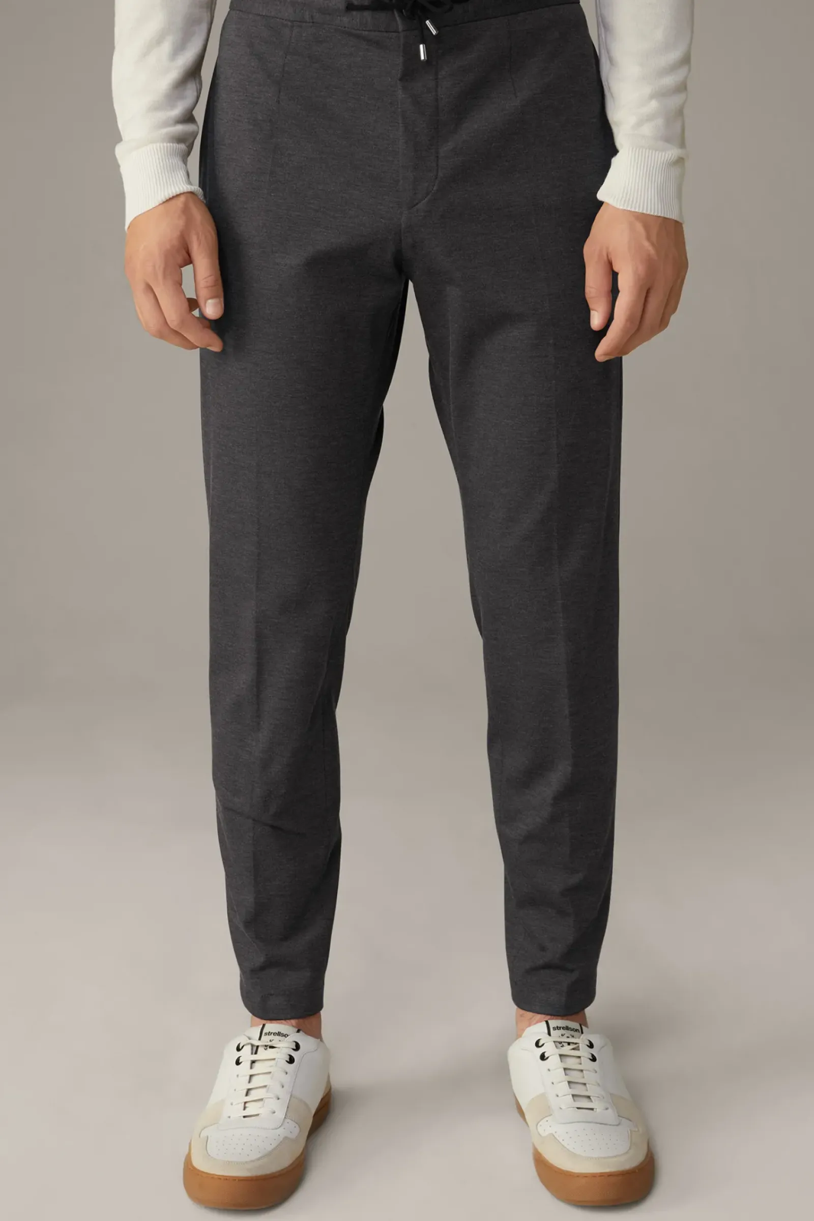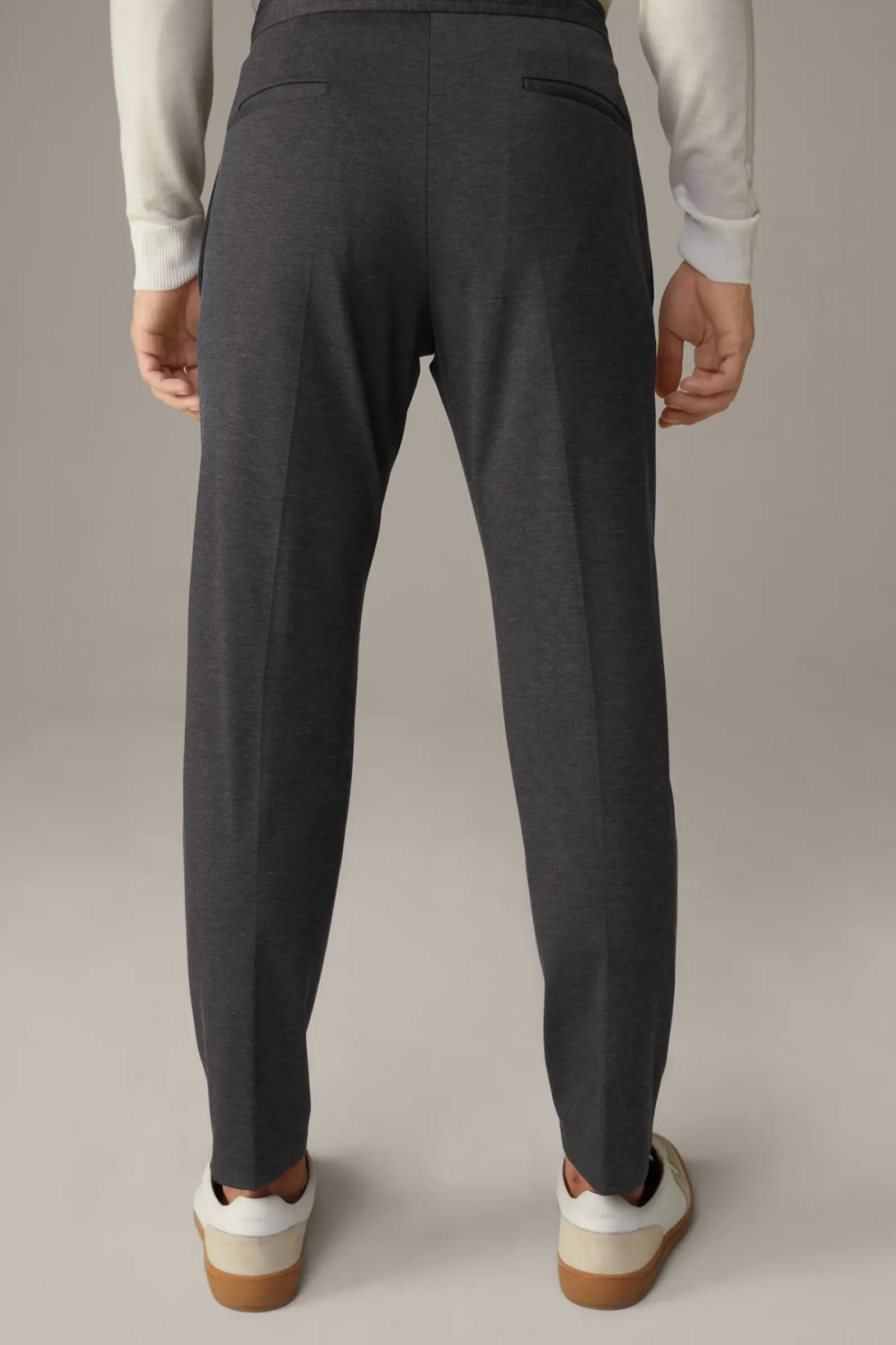 Die Flex Cross Anzughose Saturn überzeugt mit moderner Tech-Qualität, schmaler Silhouette und einem Bund mit lässigem Tunnelzug-Element, ergänzt durch klassische Eingriff- und Gesäßtaschen – passend zum Sakko Arndt.