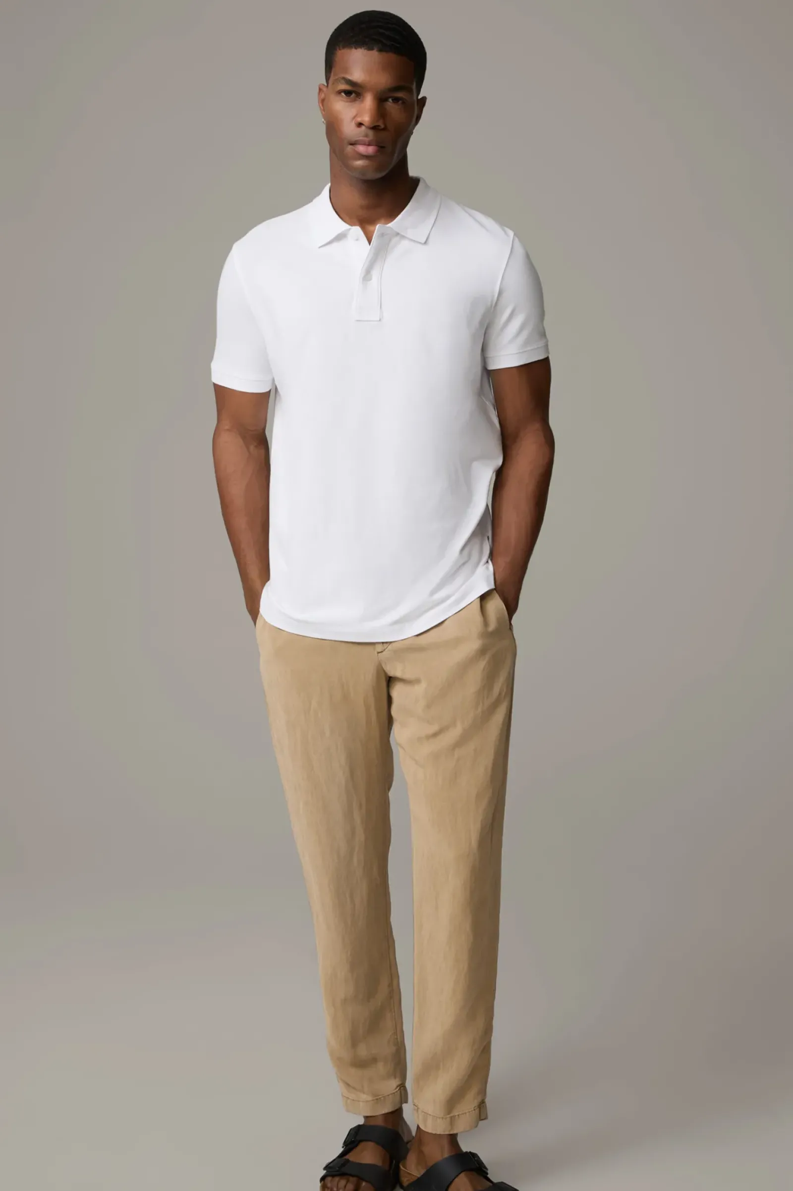 Leichter Leinen-Lyocell-Blend mit Paspeltaschen, Tunnelzug und Knopfschließe: die Stoffhose Saturn.