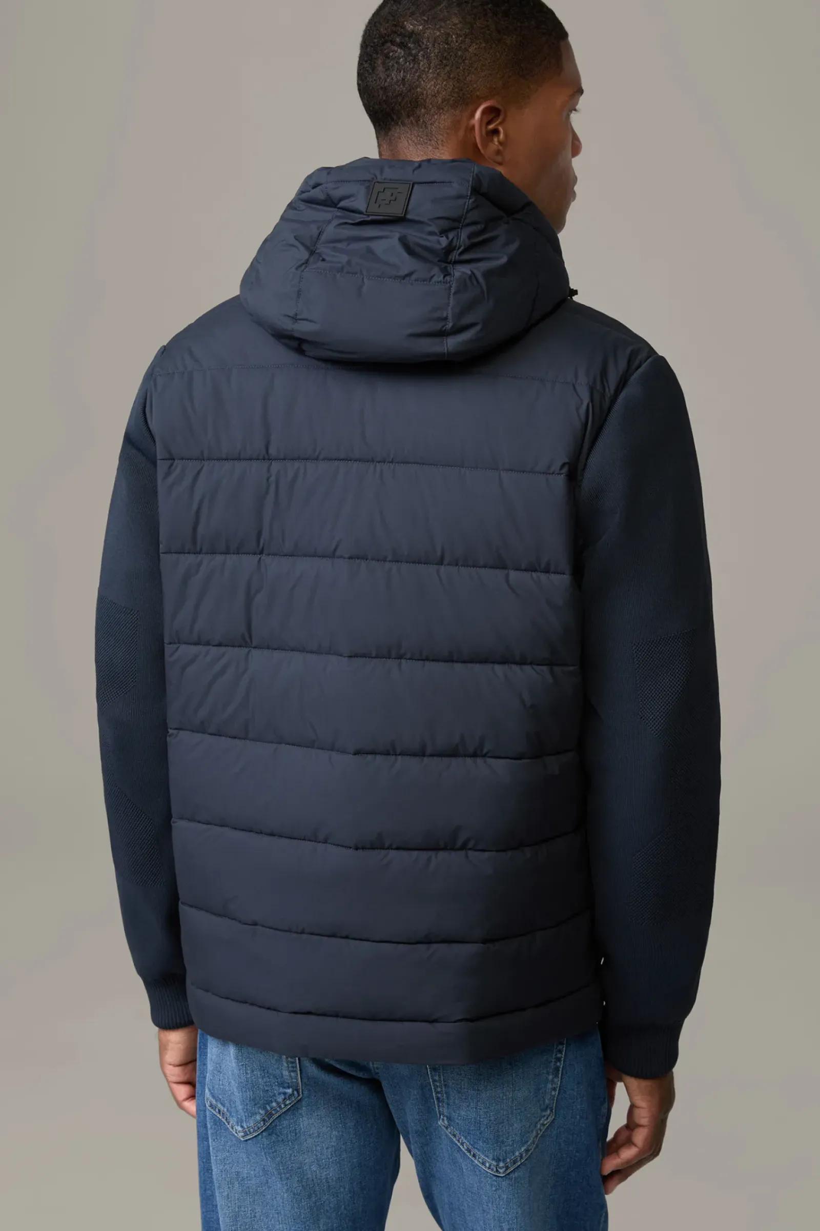 Als moderner Design-Mix präsentiert sich die Flex Cross Steppjacke Flex mit technischen Strickärmeln. Mit abzippbarer Kapuze, verdecktem Zipper und Logo-Details.