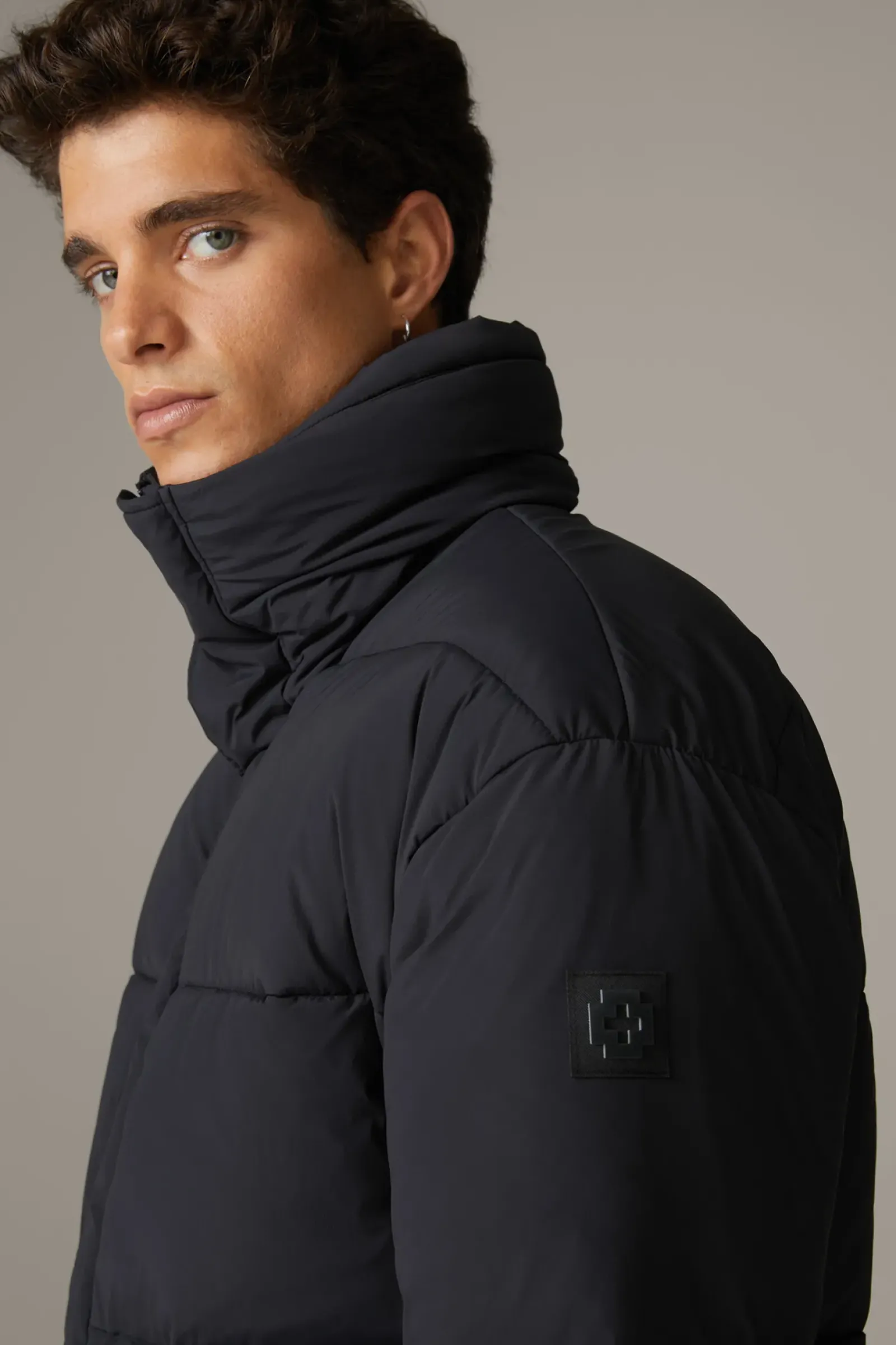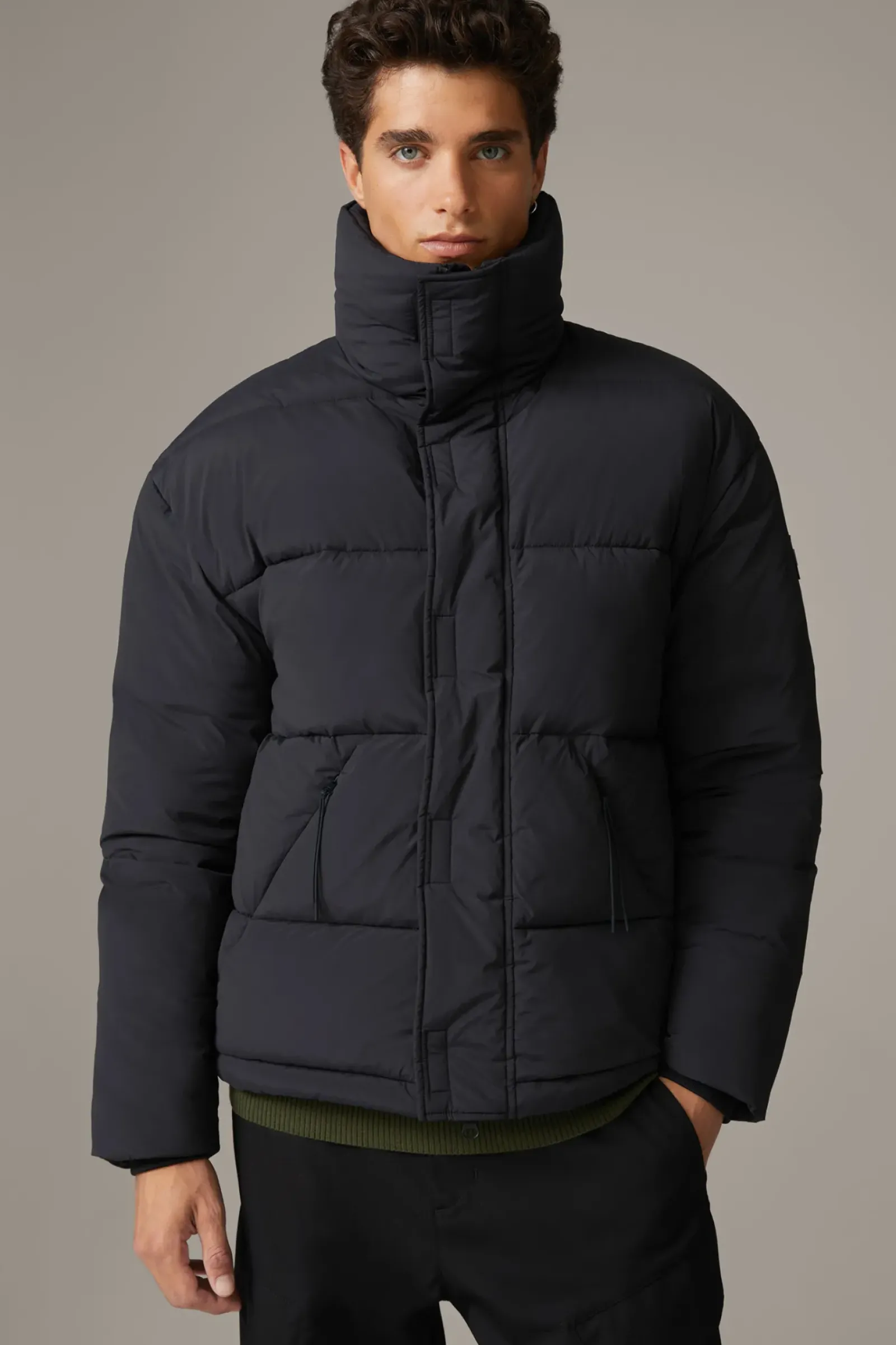 Performancestarkes Favourite Piece: die Flex Cross Steppjacke mit wärmender Wattierung aus recycelter Tech-Faser und wasserdichten und -abweisenden Features. Ergänzt durch den hohen Stehkragen, Zipper und Klettverschluss-Leiste.