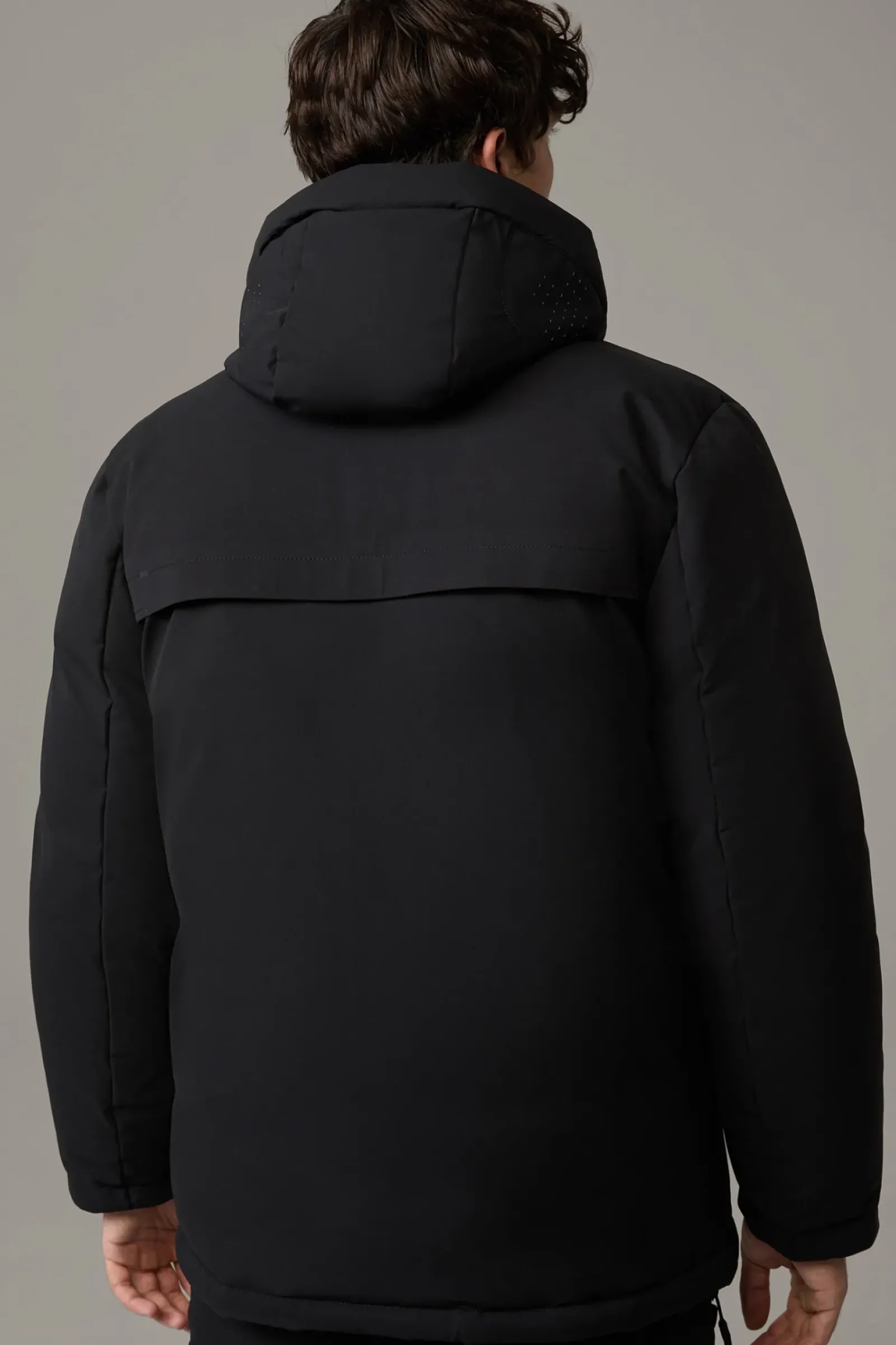 Alpiner Style: die Softshell-Jacke Mountaineering in wasserfester Tech-Qualität mit wärmender Wattierung und justierbarer Kapuze. Funktionales Design mit Schneefang und diversen Taschen.