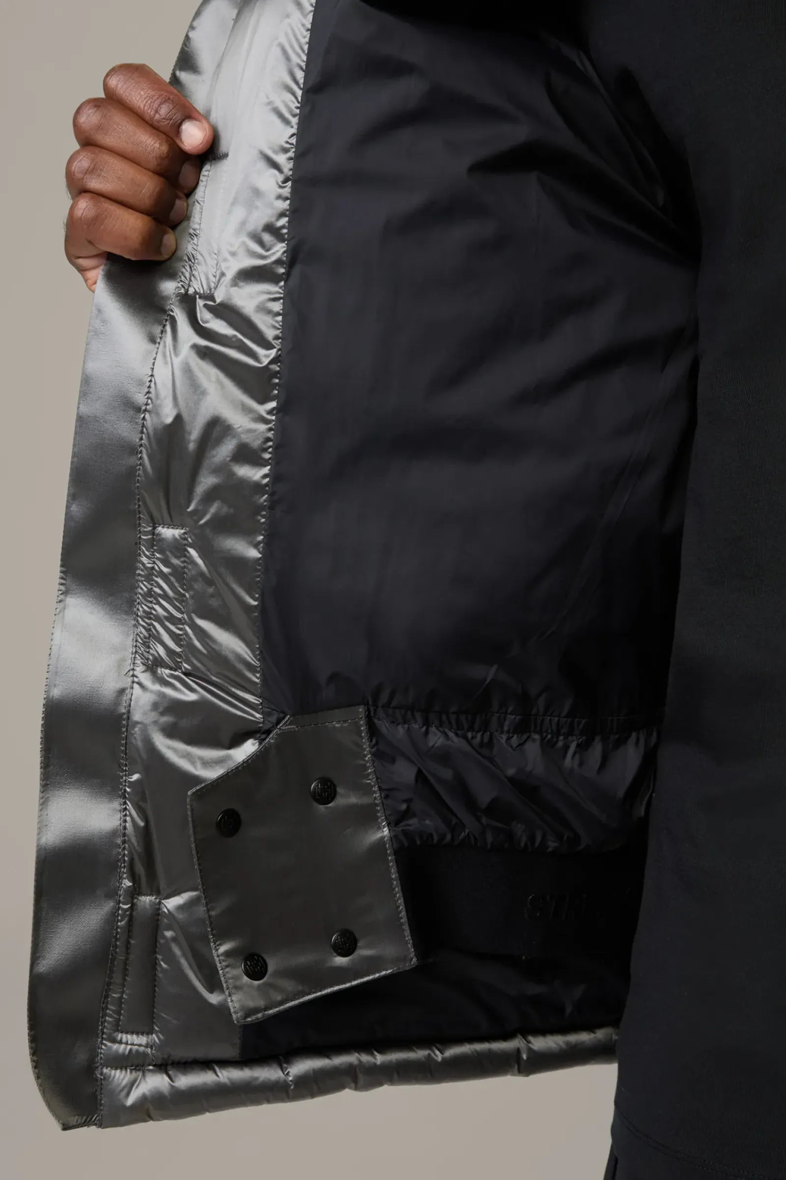 Cooles Performance-Piece: die Steppjacke Alpinist mit Tunnelzug am Stehkragen, Klettverschluss und inwendig verschließbarem Windbreaker-Bund.