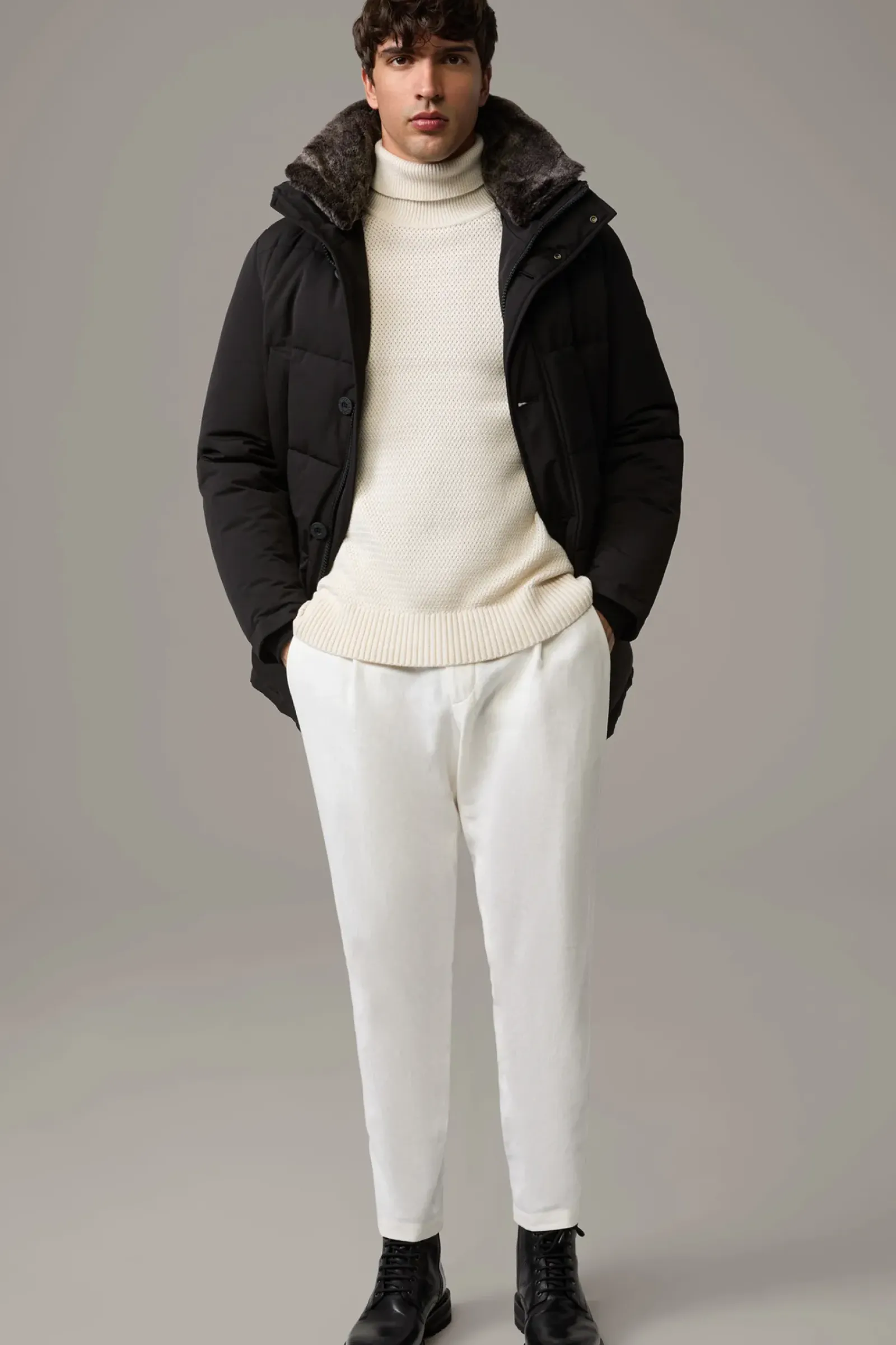 Wärmendes Essential: die Steppjacke Plaza mit einer Wattierung aus recycelten Tech-Fasern, wasser- und winddichten Features sowie abzippbarem Fake Fur-Besatz.