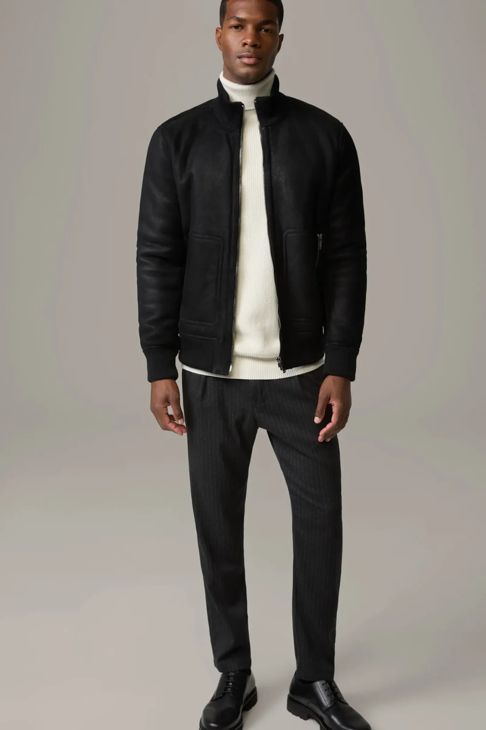 Die Lederjacke im Blouson-Stil überzeugt mit angenehmer Innenverarbeitung aus reinem Lammfell. Elastische Rippbündchen, ein Stehkragen und Metallic-Logo-Zipper ergänzen den Look.