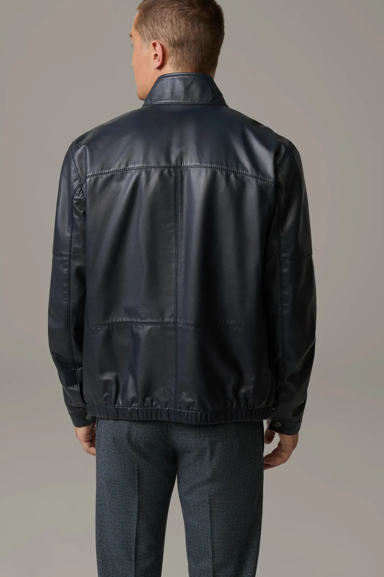 Favorit in jeder Saison: Die Lederjacke Jim aus weichem Lammnappa im Blouson-Style mit elastischem Finish am Bund. Lässige Akzente: knöpfbare Ärmelabschlüsse, Zip-Taschen und urbane Teilungsnähte.