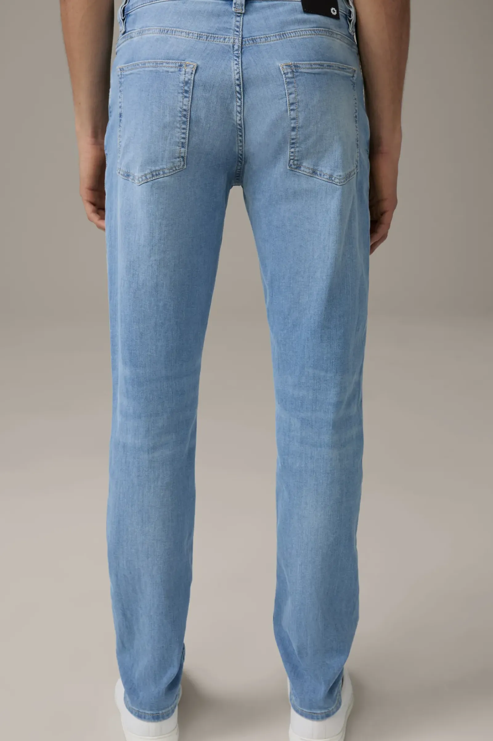 Die Jeans Liam als urbanes Stylingpiece mit authentischer Waschung im 5-Pocket-Stil mit Logo-Details. Aus komfortablem Light Weight Cotton-Stretch.