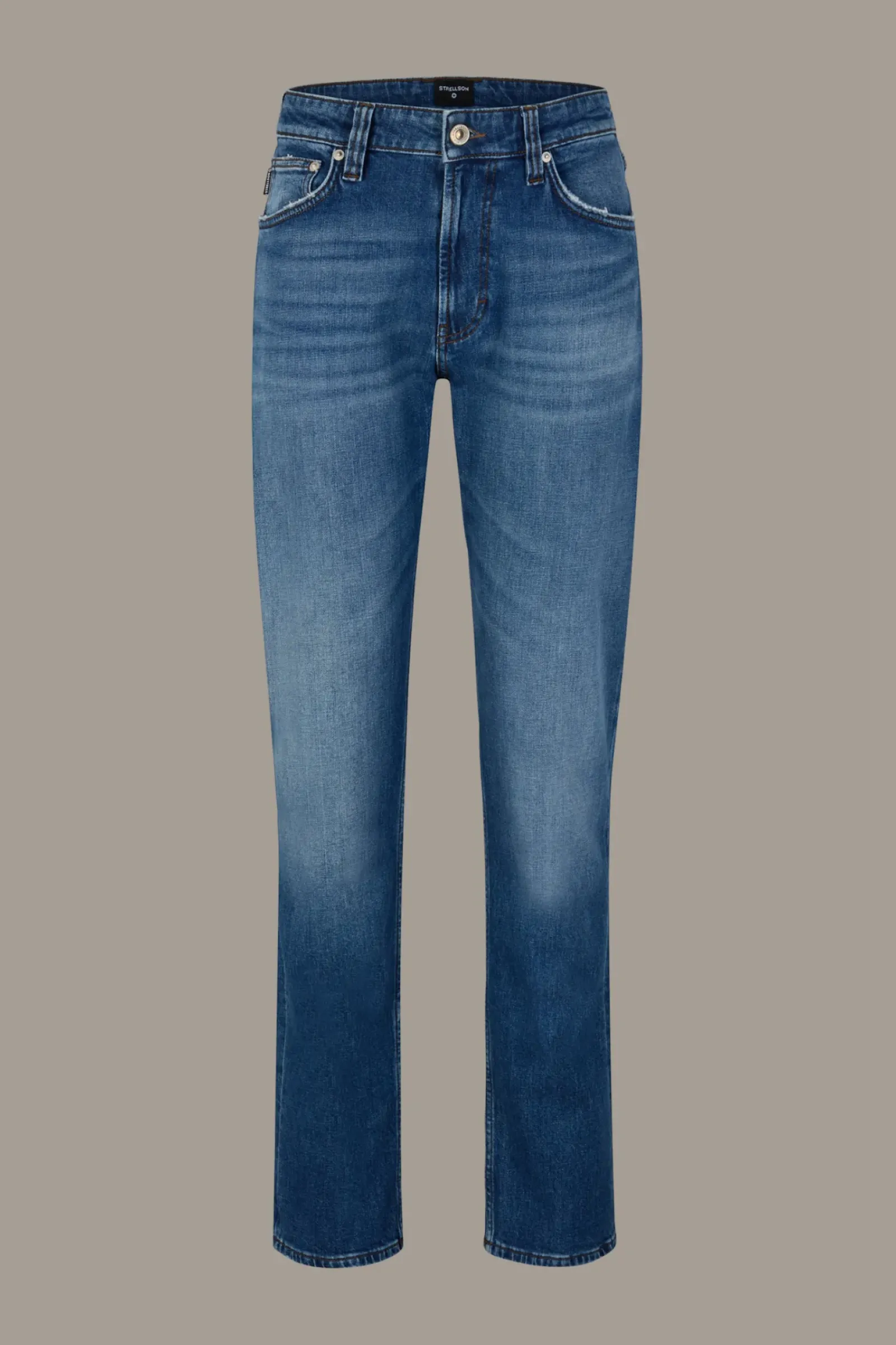 Urbaner Style: Jeans Rui aus Cotton-Stretch im gewaschenen Denim Look. Das Five-Pocket-Design wird signaturetypisch ergänzt durch geprägte Nieten und Logo-Flag.