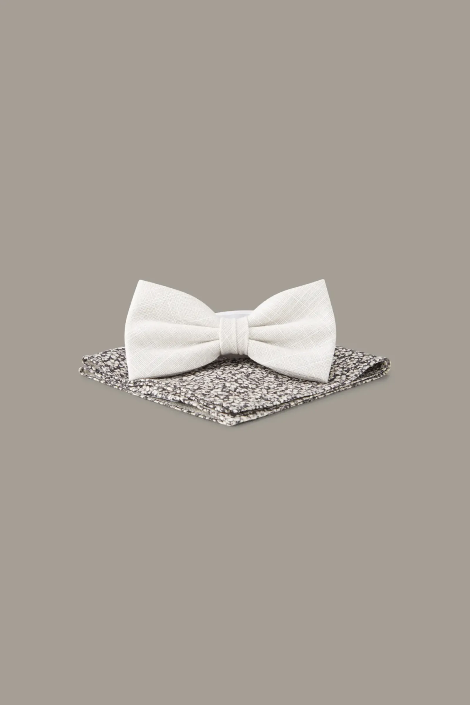 Das Set aus Fliege und Einstecktuch im strukturierten Design und Allover-Print begeistert als Highlight für feine Anlässe. Edler Cotton-Mix mit Schurwolle und Seide.