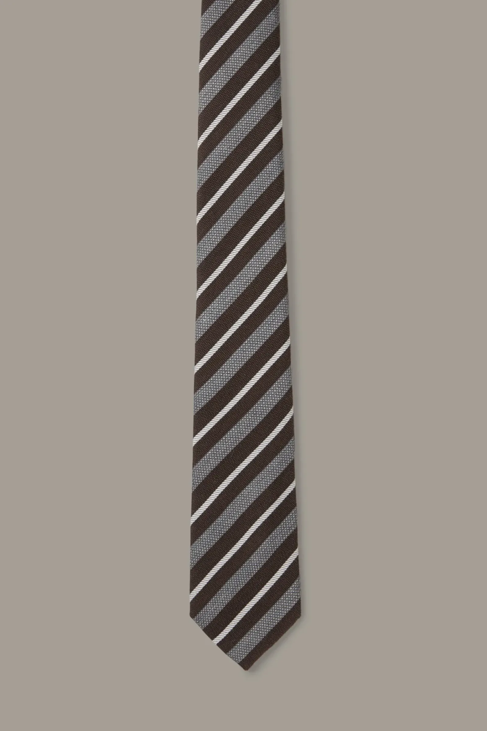 Smartes Finish: die Krawatte aus Seiden-Wollmix im modernen Streifen-Design. Der spitze Zulauf, ein Logo-Handriegel und das Signé-Futter ergänzen den urbanen Style.