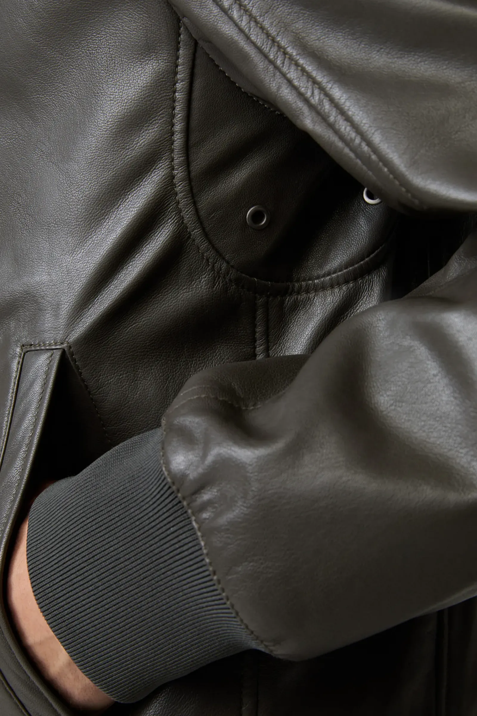 Stehkragen und Bündchen aus Rippstrick verleihen der Lederjacke Meltvin College-Look-Vibes. Aus reinem Lammnappa mit glattem Innenfutter.