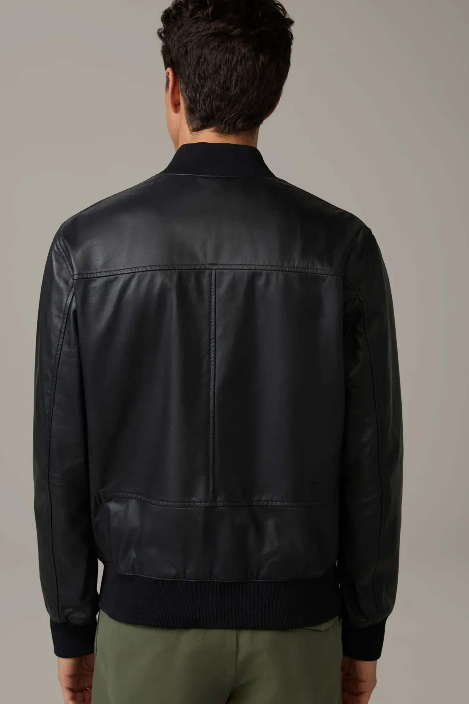 Stehkragen und Bündchen aus Rippstrick verleihen der Lederjacke Meltvin College-Look-Vibes. Aus reinem Lammnappa mit glattem Innenfutter.