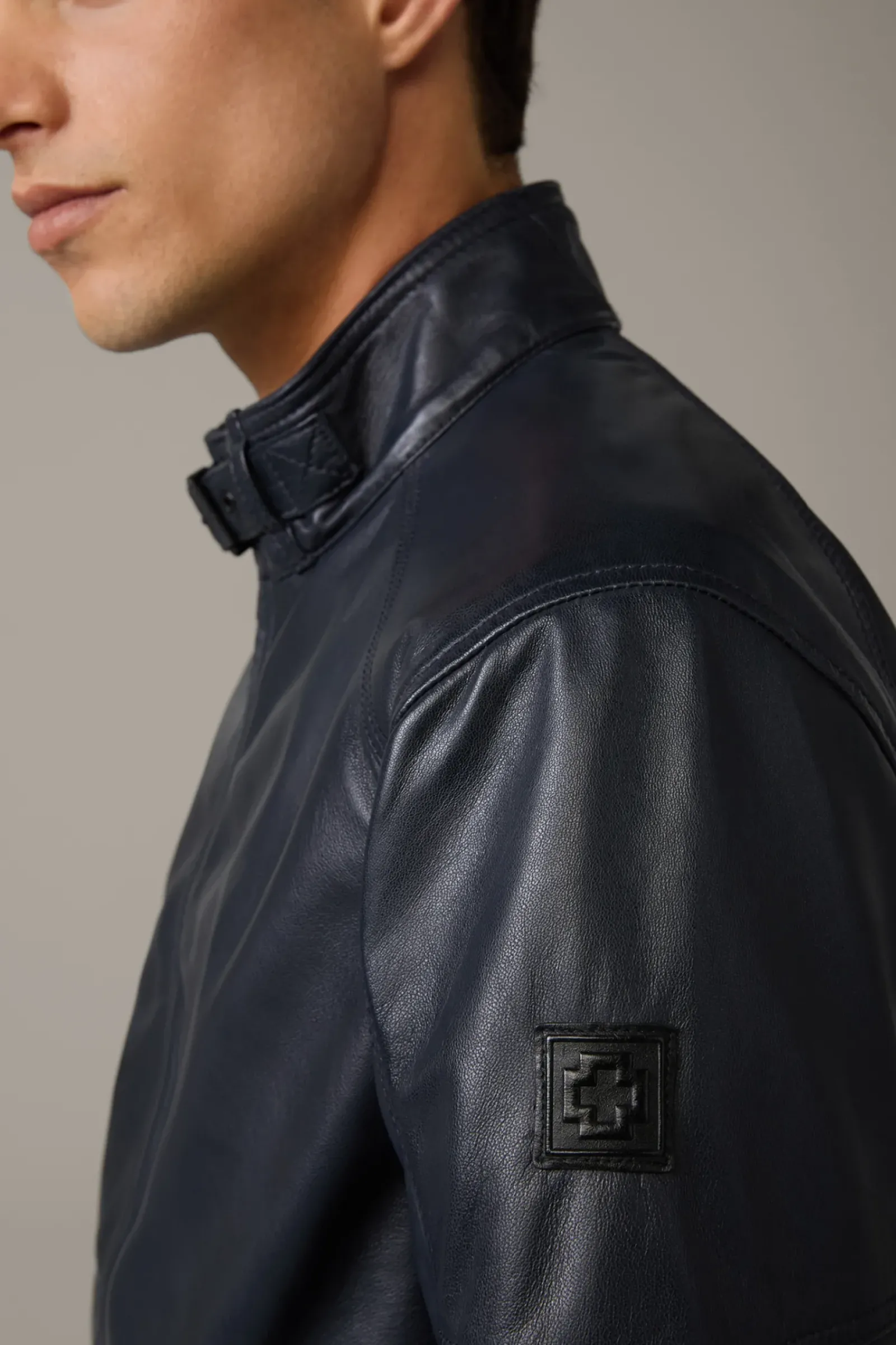 Die Lederjacke Preston aus reinem Lammnappa im Biker-Look mit Stehkragen und Riegel-Detail. Teilungsnähte und Zippertaschen prägen das Design. Vollgefüttert.