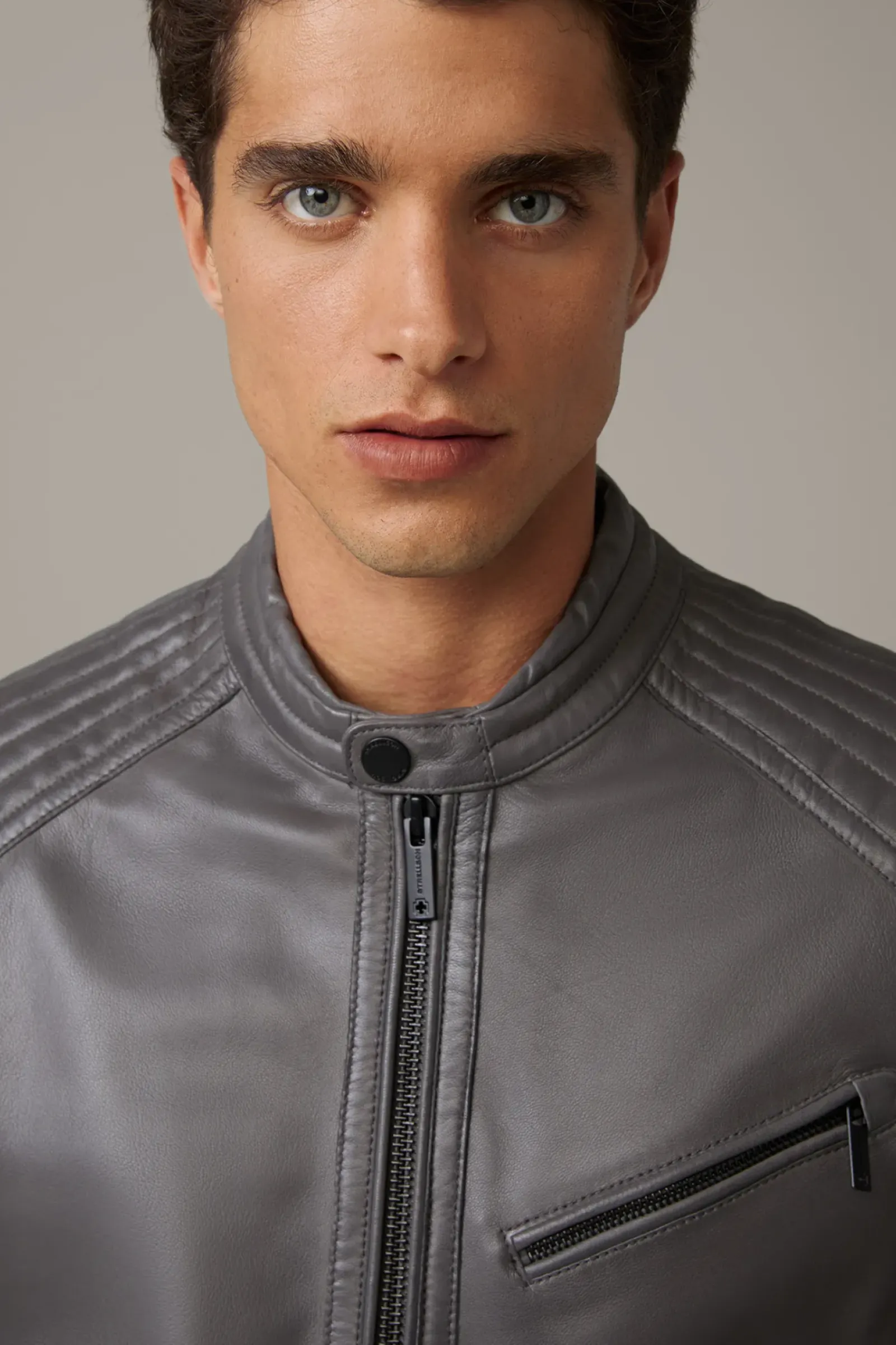 Cooles Item im Bikerstil: die Lederjacke Wells mit knöpfbarem Stehkragen, Zippertaschen und gesteppter Schulterpartie. Aus reinem Lammnappa, vollgefüttert.