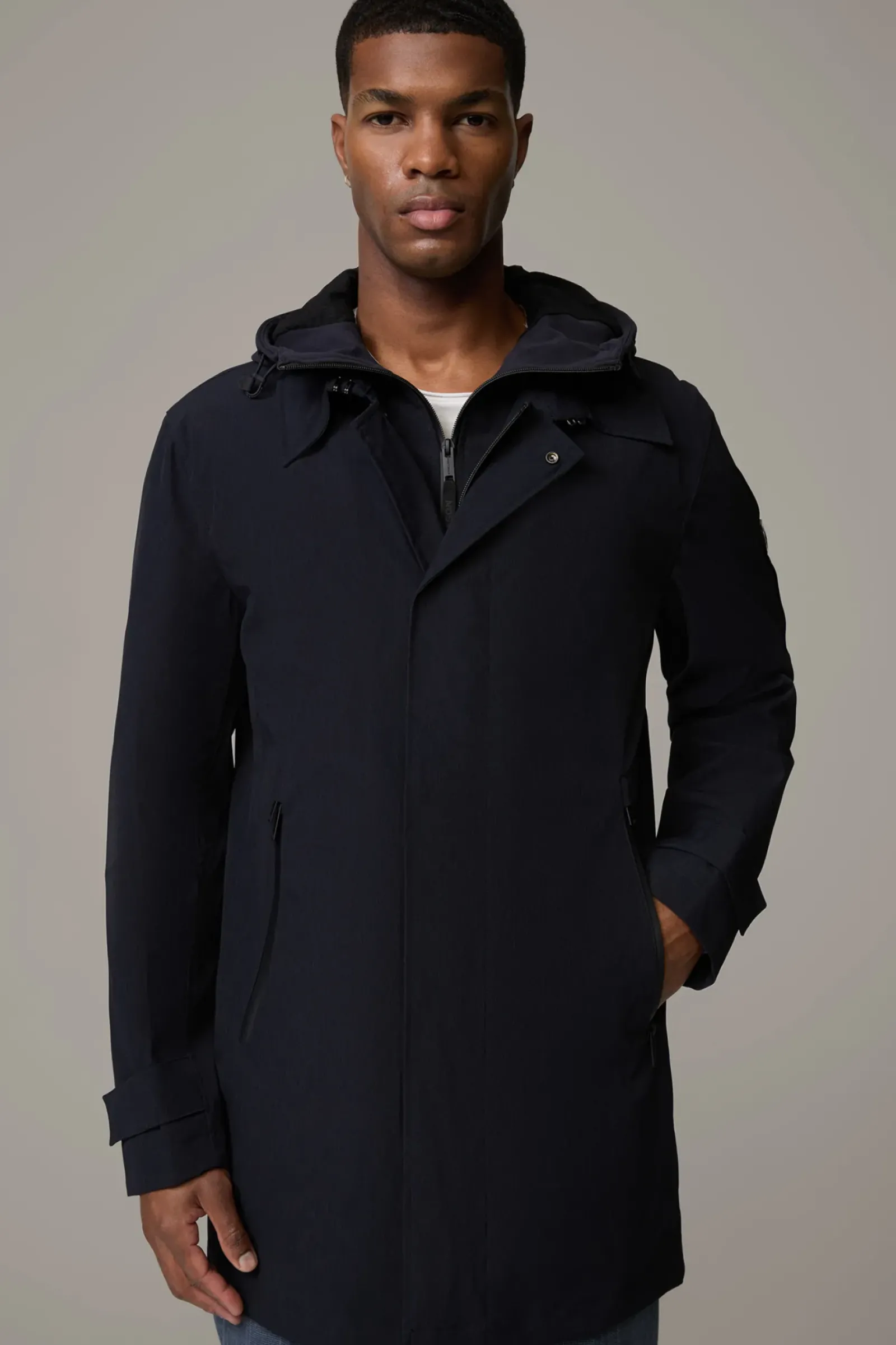 Im Duo-Look überzeugt der Flex Cross Kurzmantel Finchley mit herauszipbarem Inlay. Die Sweat-Kapuze punktet als lässiges Detail, während getapte Nähte und wasserabweisende Eigenschaften ein Performance-Upgrade verleihen.