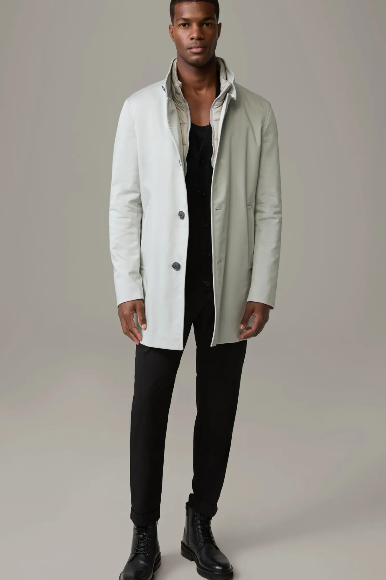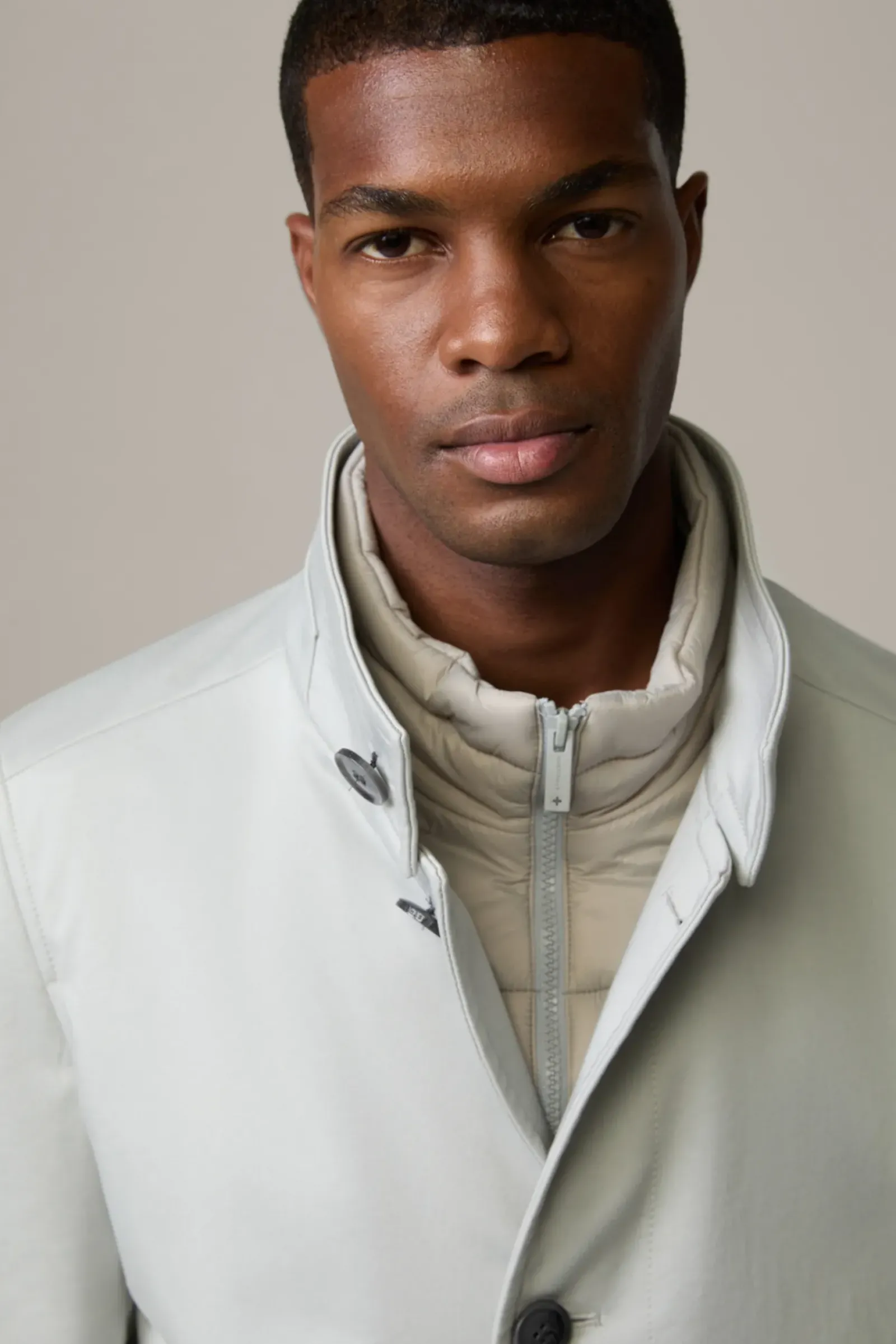 Begeistert als moderner Einreiher mit Stehkragen und abzippbarem Stepp-Inlay. Perforiertes Teilfutter und Bewegungsschlitz sorgen für Komfort.
