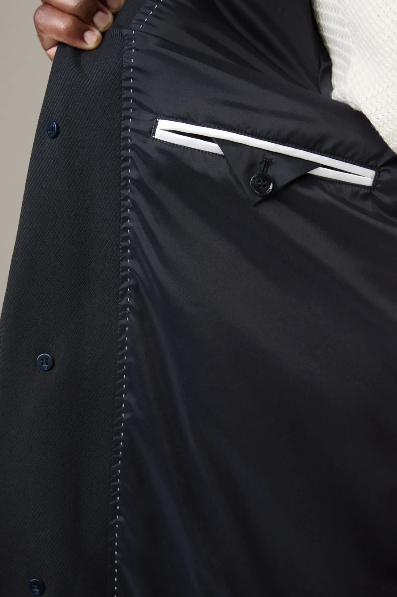 Allrounder mit Classic Twist: der Kurzmantel Adem aus technischer Viskose im Struktur-Design mit Trenchkragen, Leistentaschen und Knopfleiste. Für Komfort sorgt der Bewegungsschlitz.