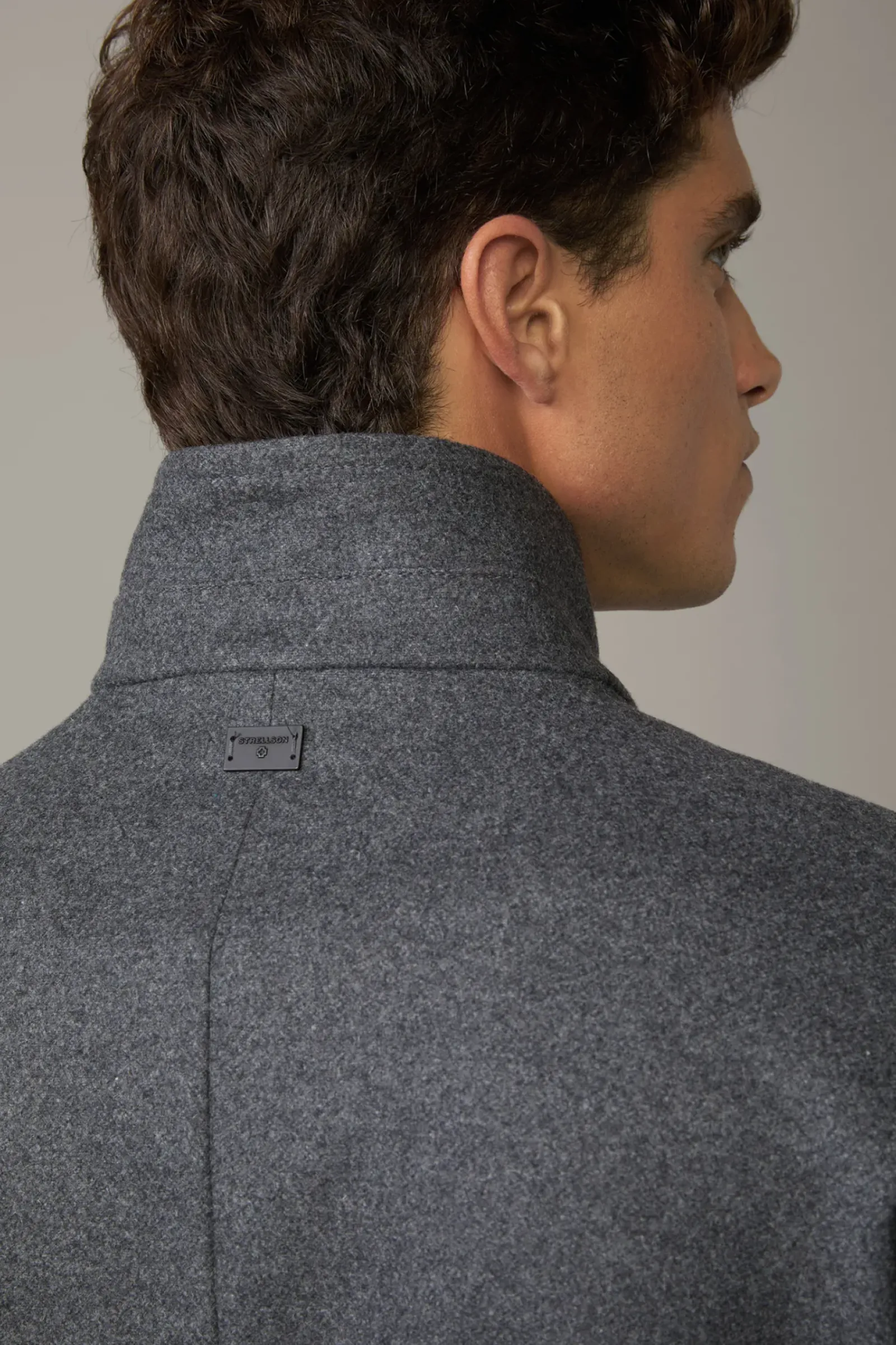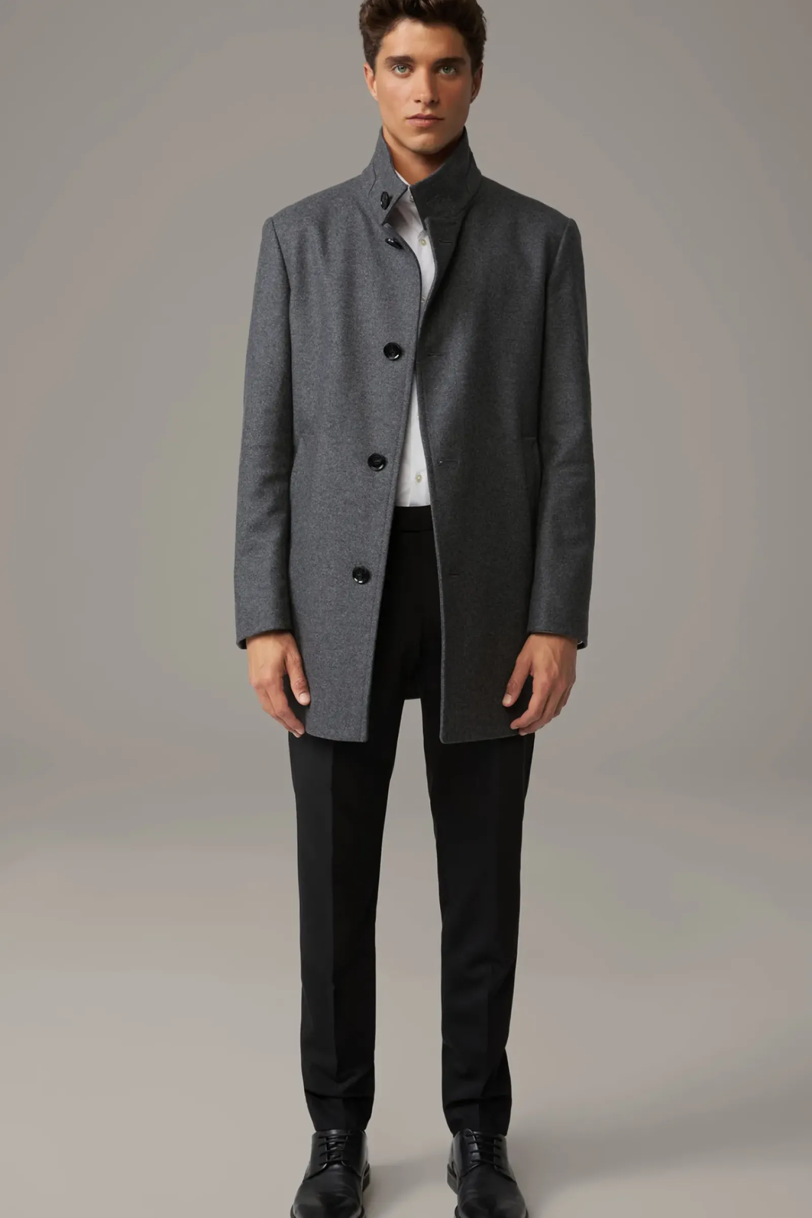 Präsentiert sich als klassischer Einreiher: der Mantel Finchley 2.0 im Wollmix mit Cashmere-Anteil. Mit knöpfbarem Stehkragen, Leistentaschen und fließendem Futter.