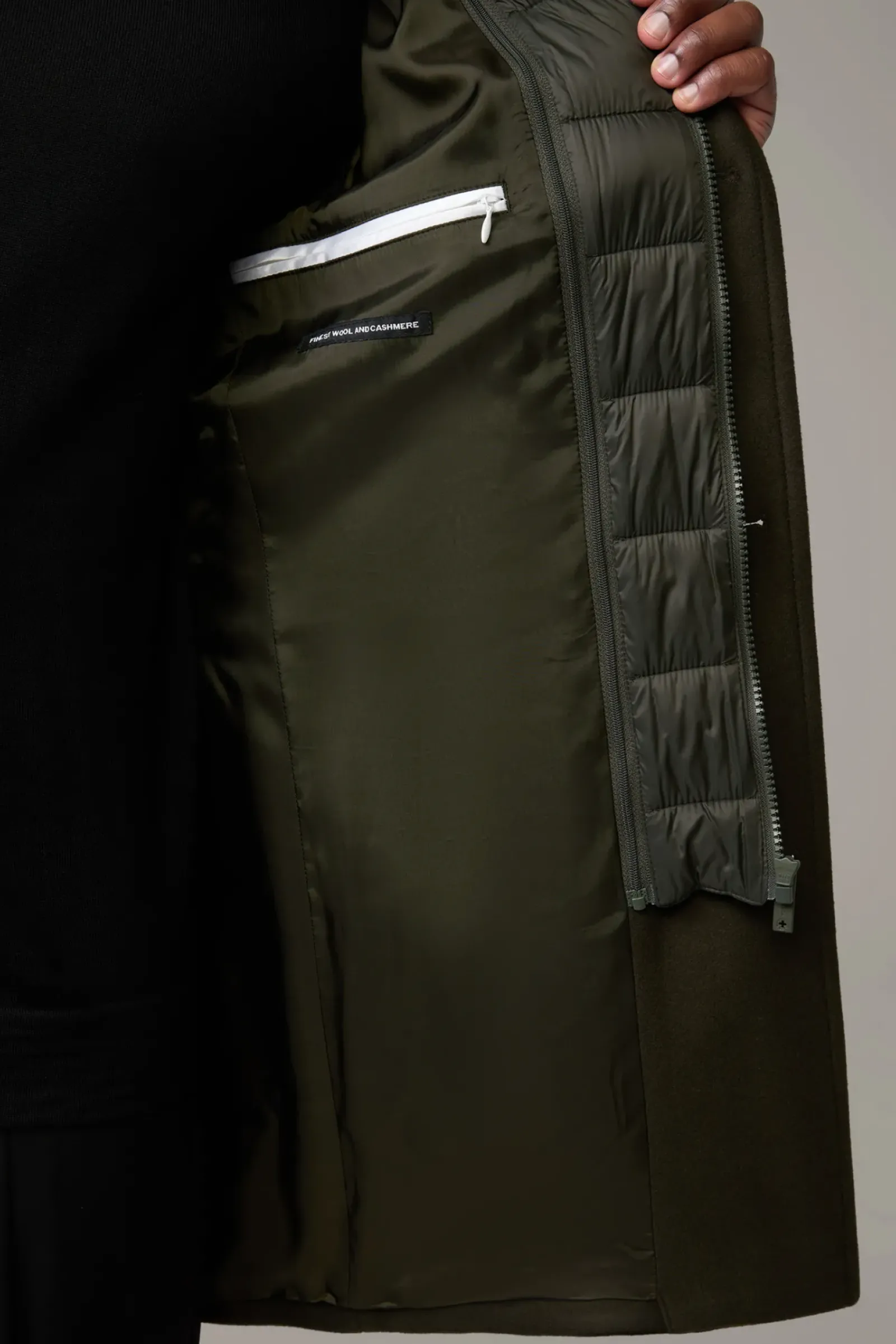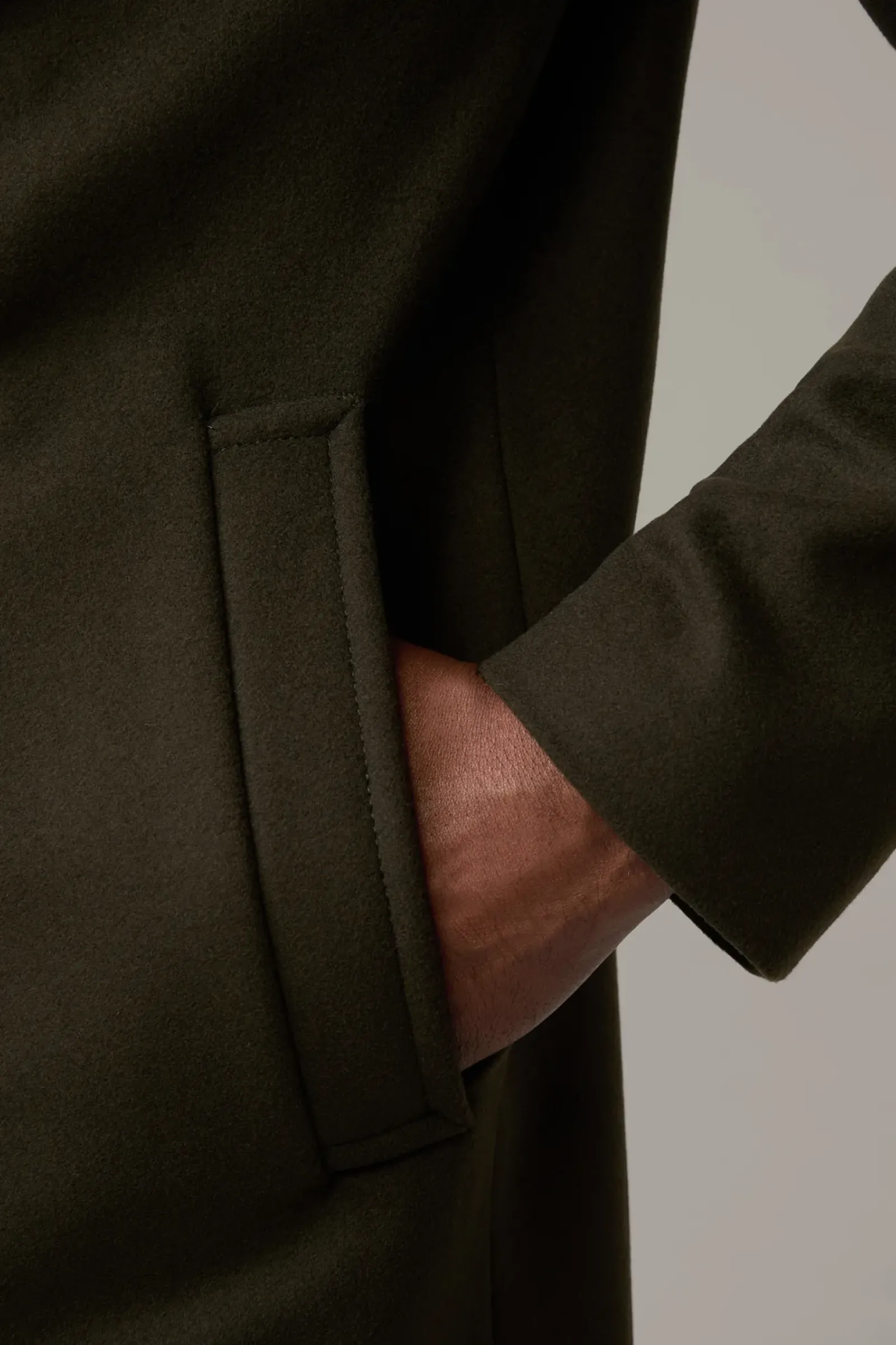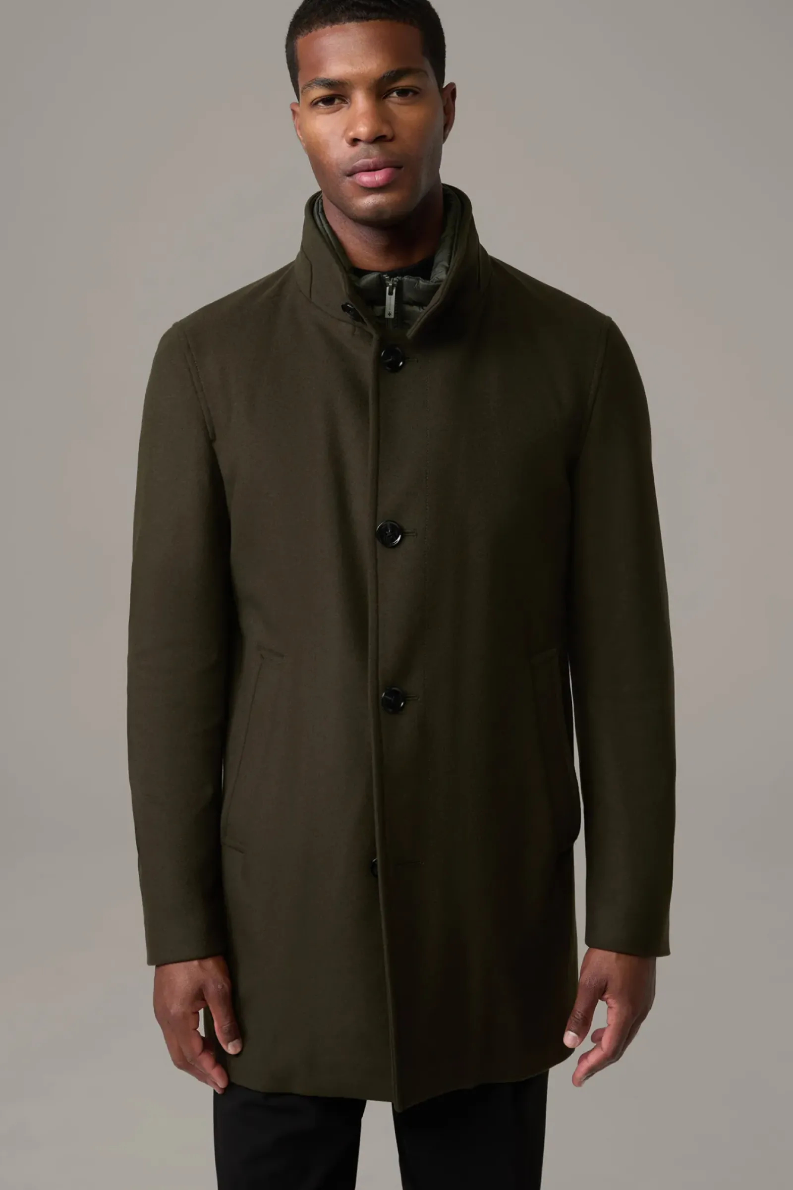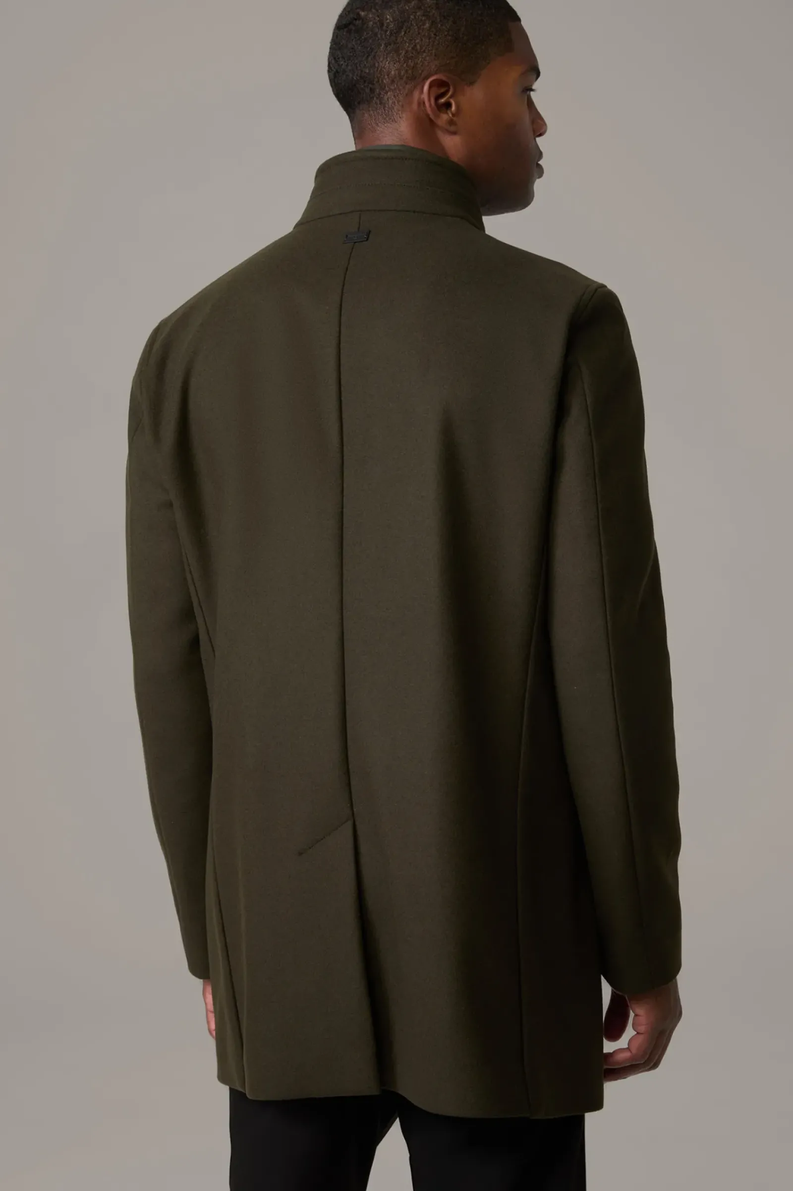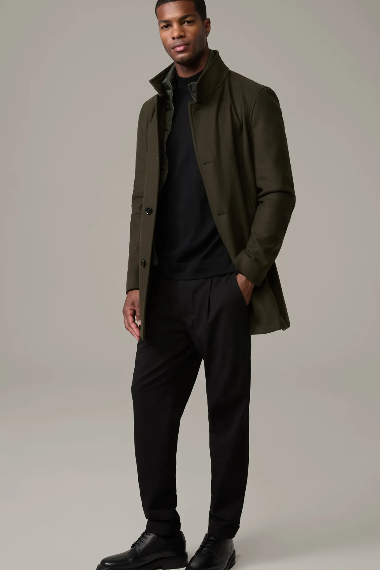 Klassischer Einreiher mit Stehkragen und abzippbarem Stepp-Inlay: der Mantel Finlay im Wollmix mit Cashmere-Anteil. Teilgefüttert.
