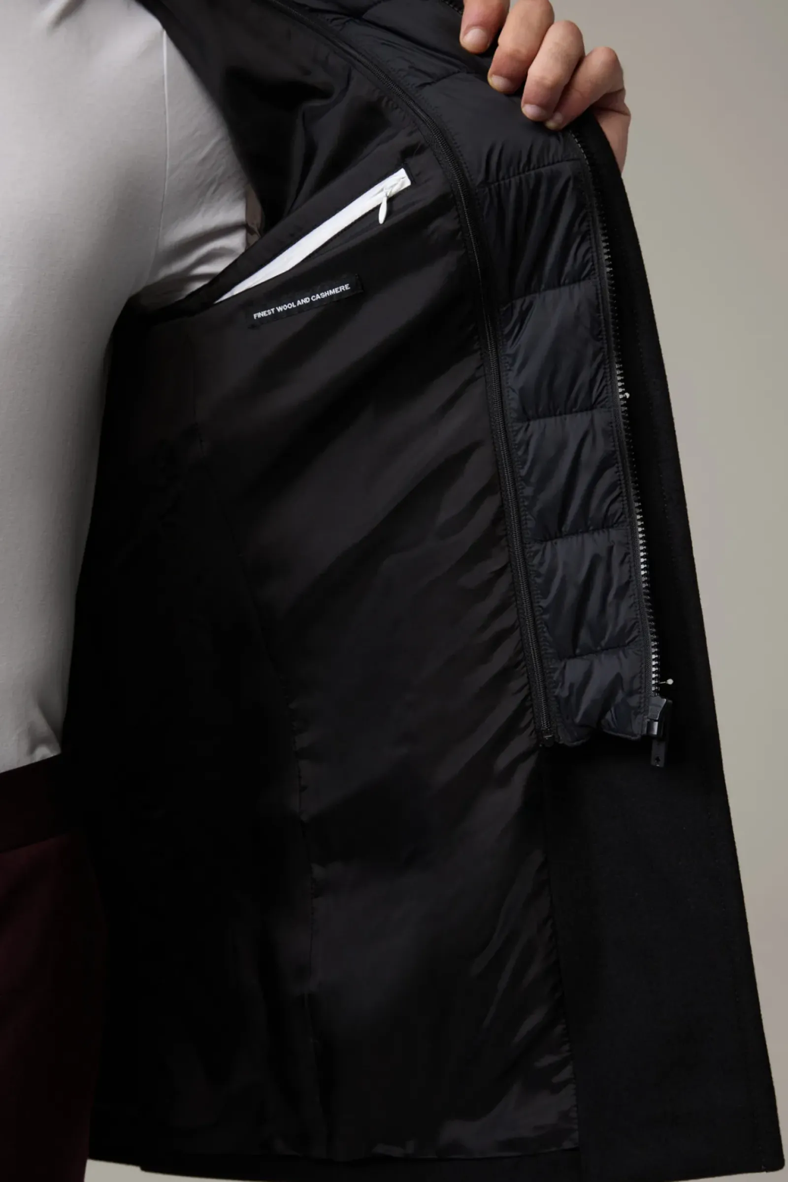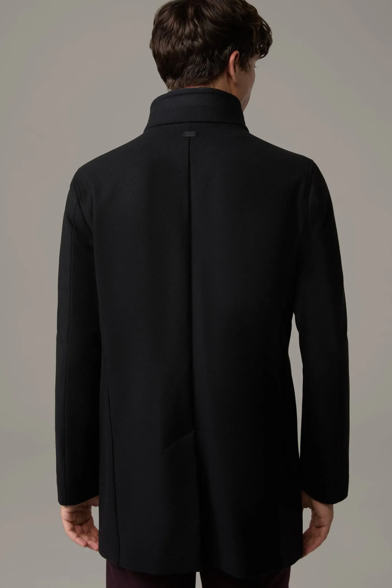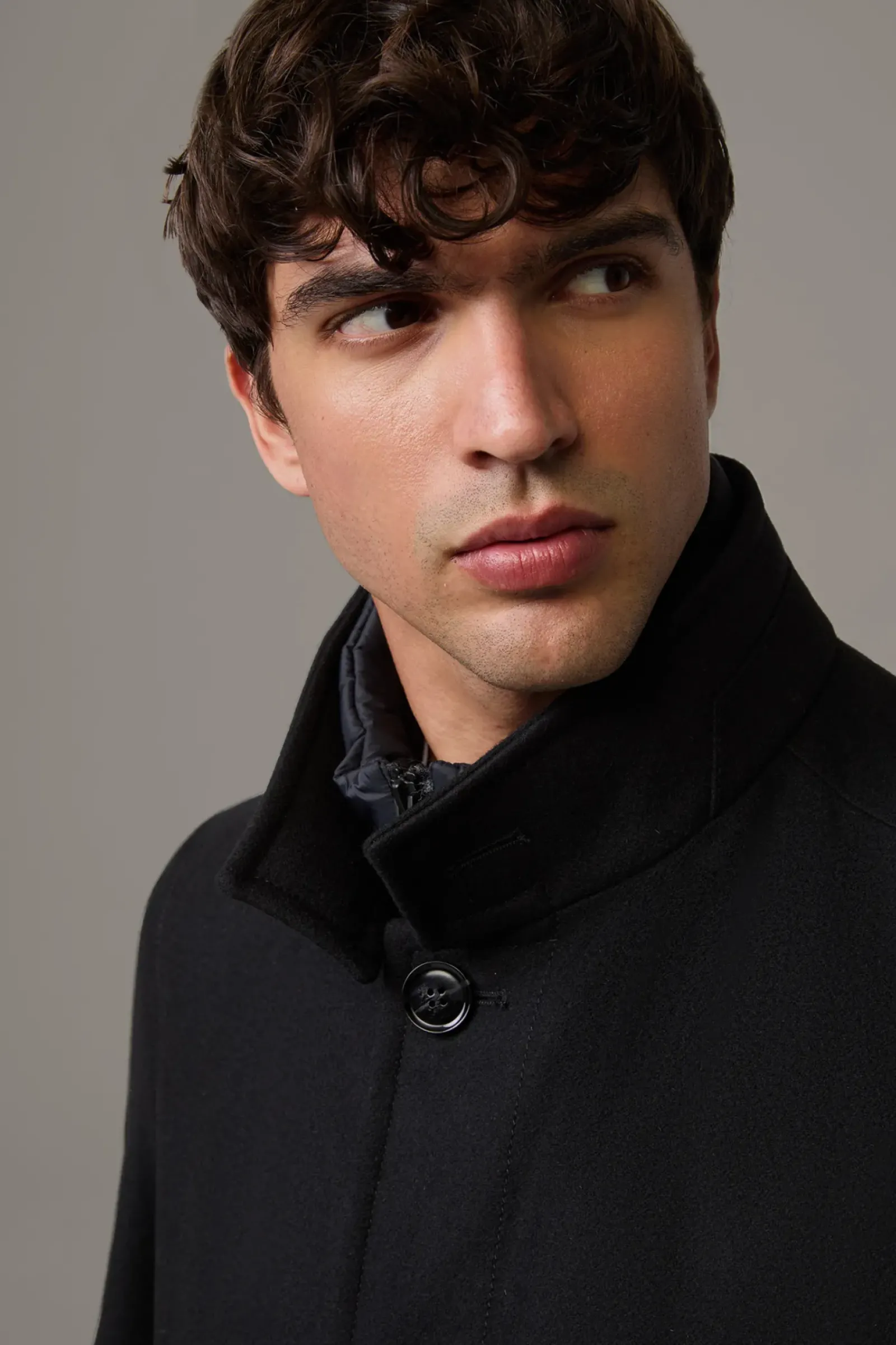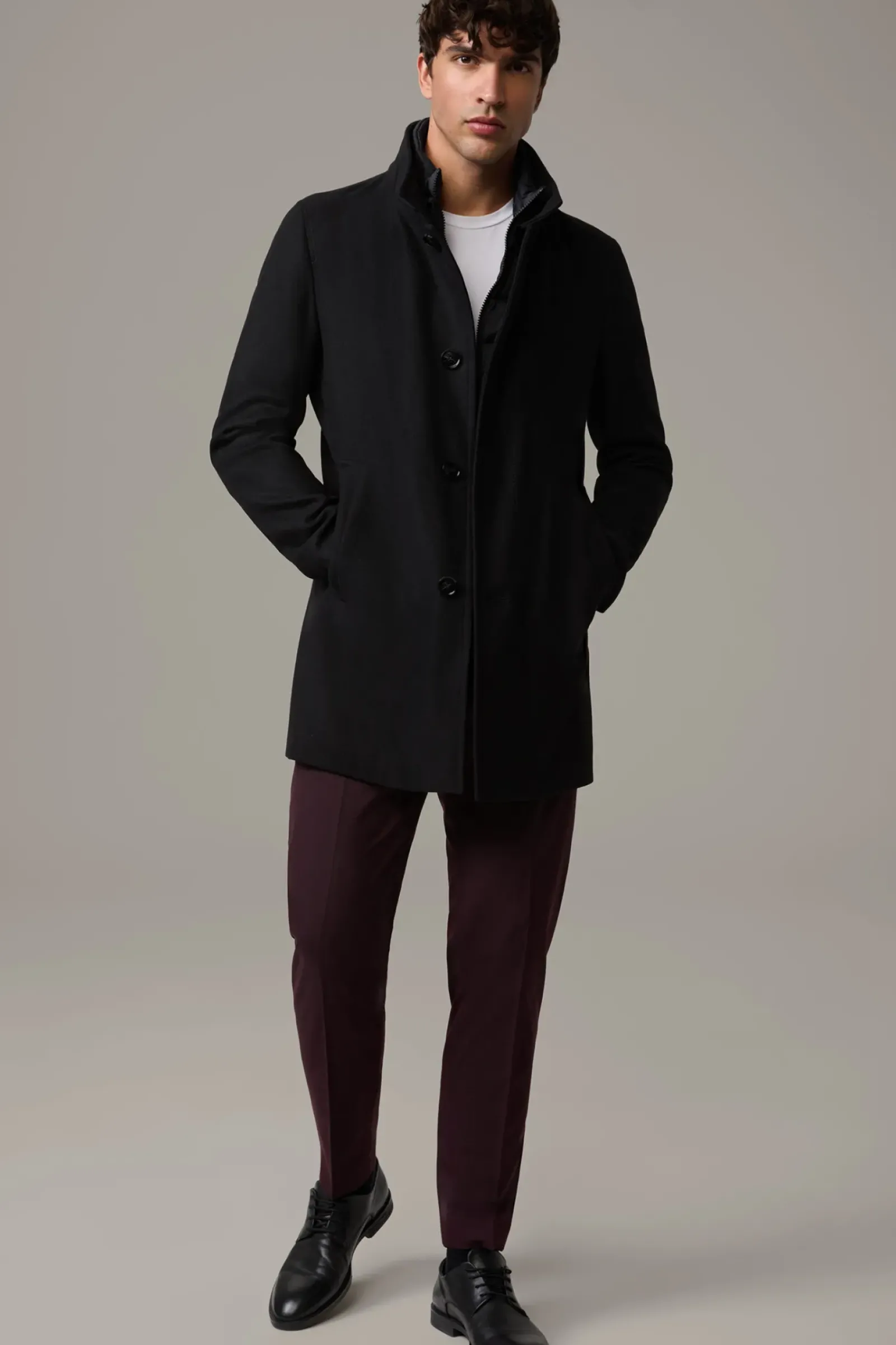 Klassischer Einreiher mit Stehkragen und abzippbarem Stepp-Inlay: der Mantel Finlay im Wollmix mit Cashmere-Anteil. Teilgefüttert.