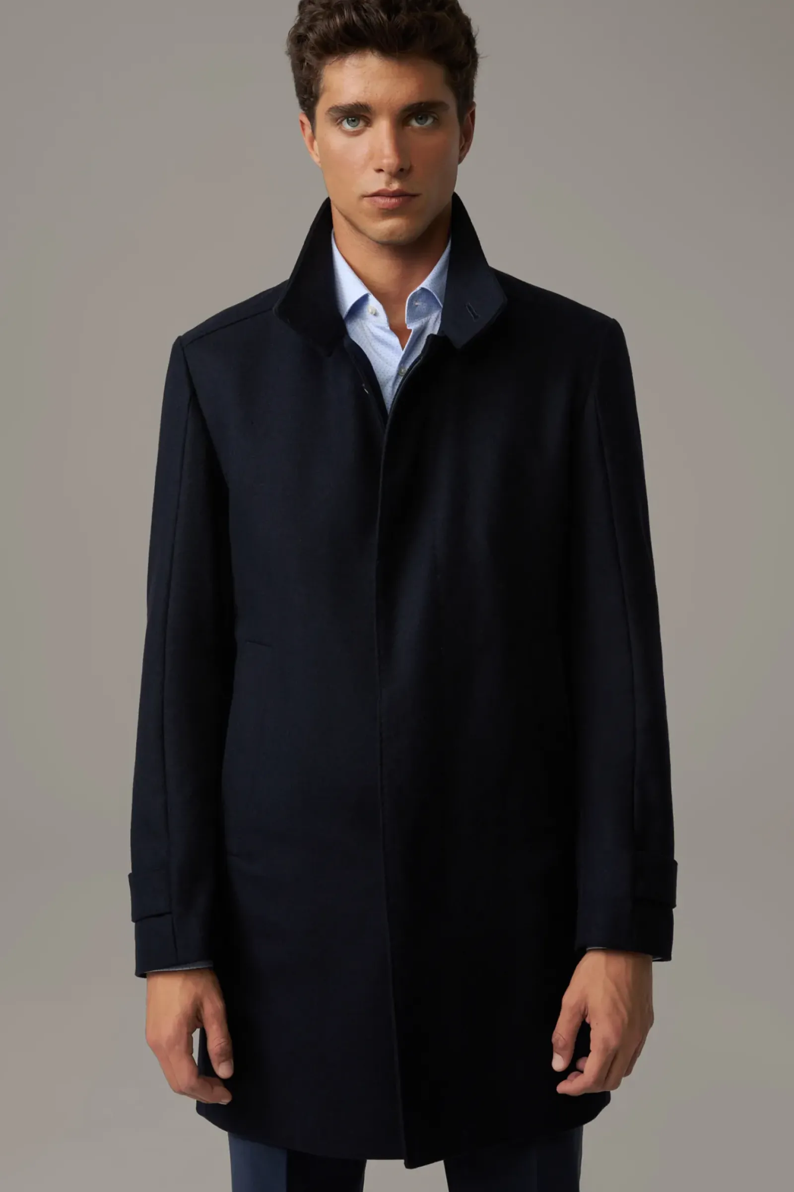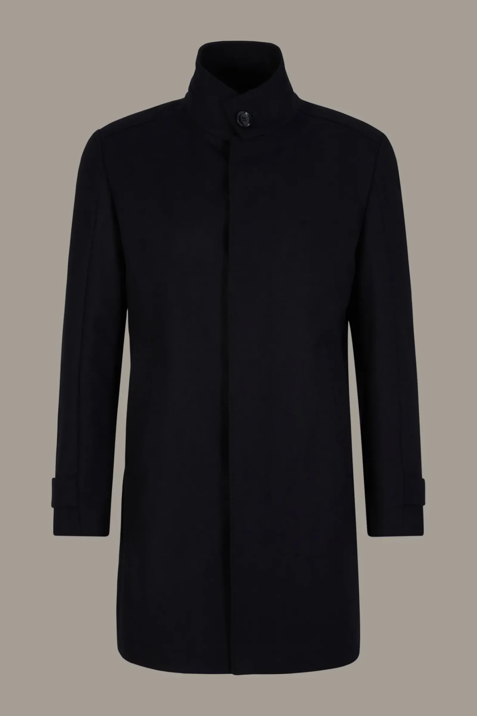 Klassisches Piece: der Mantel New Broadway im edlen Wollmix mit Cashmere und fließendem Futter. Stehkragen, Ärmelabschlüsse mit Riegeldetail, Leistentaschen setzen Akzente.