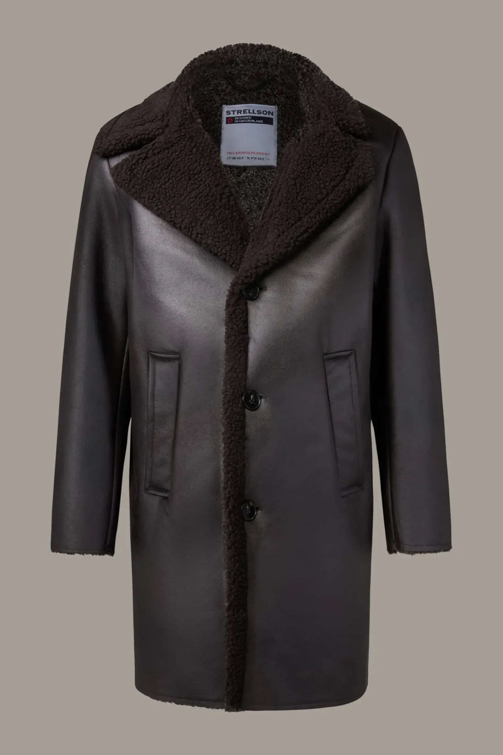 Aus Lammfellimitat im Vintage-Look mit Fake-Fur-Details begeistert der Mantel Teddy Coat als Key Style. Mit Umlegekragen, Knopfverschluss und Leistentaschen.