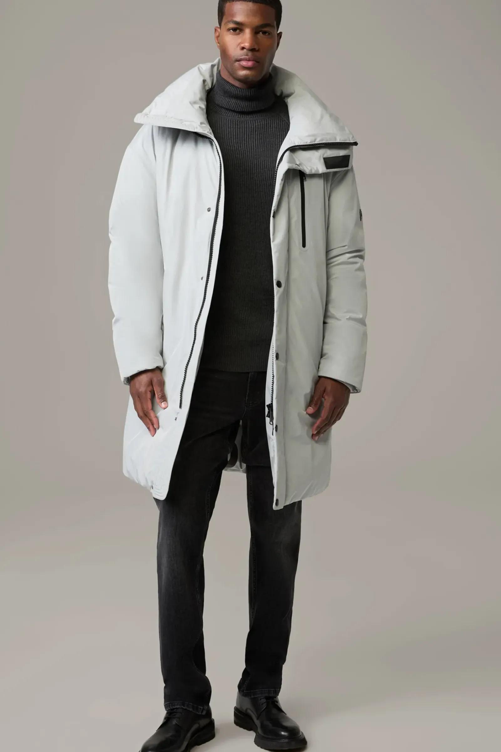 Funktionales Key Piece: der wattierte Parka mit Stehkragen in Tech-Qualität mit wasserabweisenden und winddichten Eigenschaften. Mit Zwei-Wege-Zipper und Logo-Druckknöpfen.