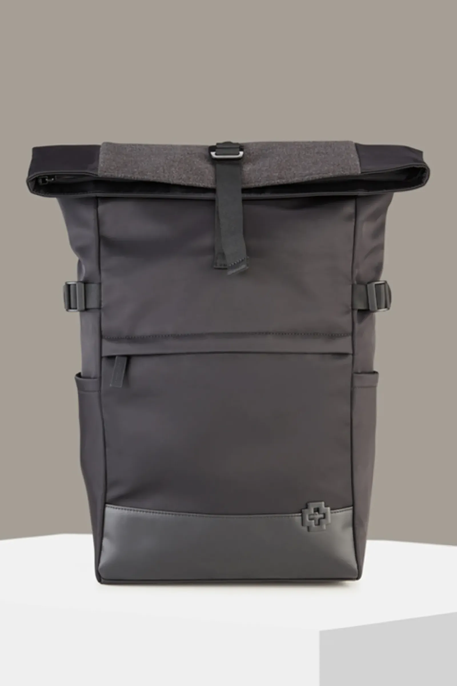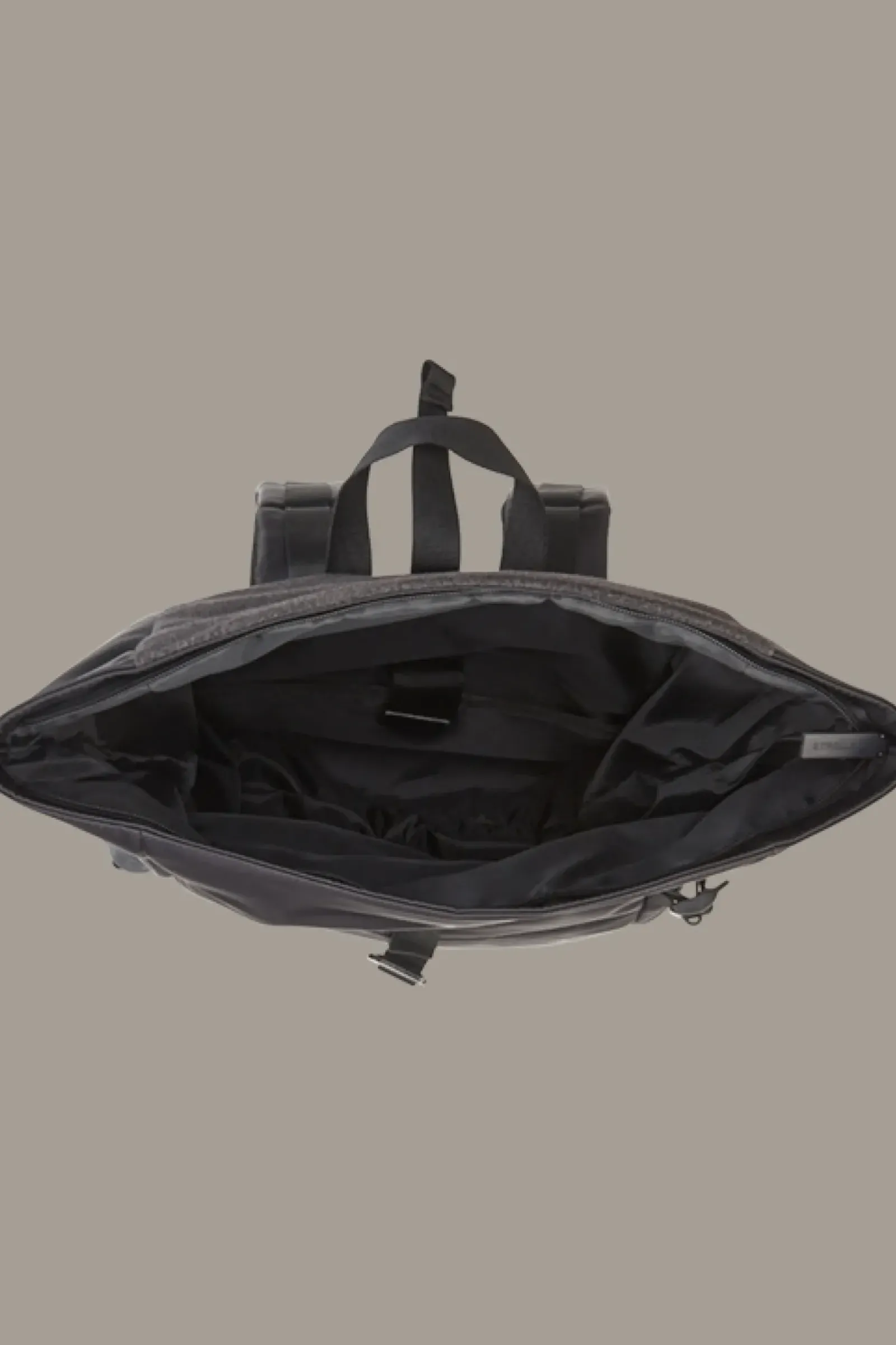 Performancestarkes Piece: der Rucksack Eddie aus der Brick Lane Kollektion im Fold-Over-Design mit diversen Taschen und Fächern, gepolsterten Schulterriemen sowie einer Mesh-Rückenpartie mit Trolley Schlaufe.