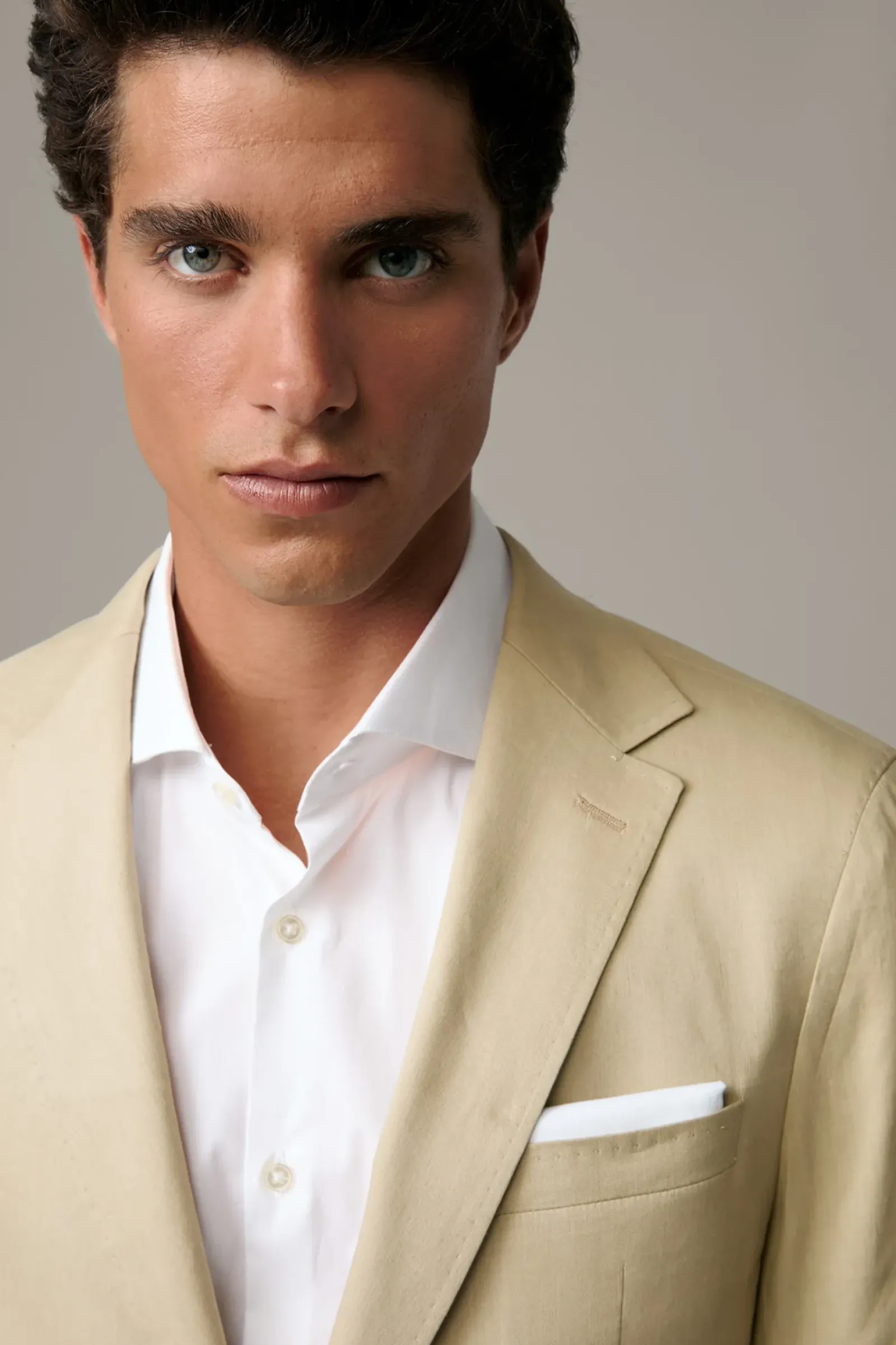 Smart und lässig zu kombinieren: das Sakko Acon im Mix aus Leinen mit recycelter Viskose. Made in Italy.