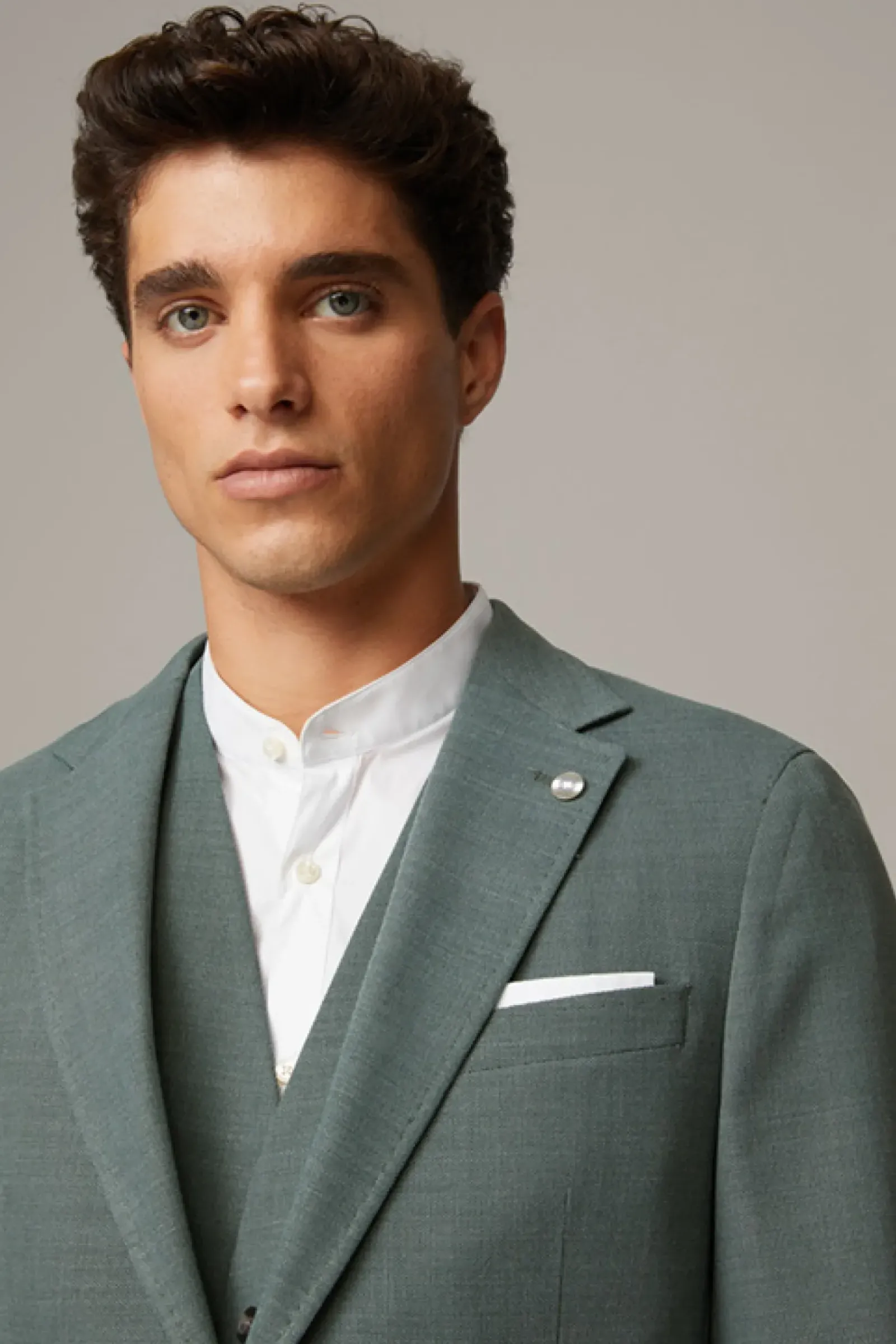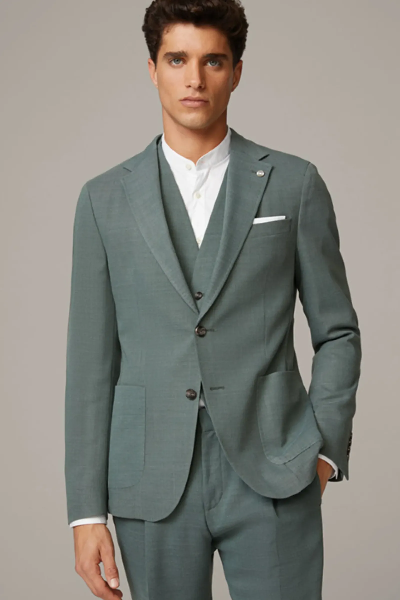 Italienischer Schurwollmix der Weberei Marzotto mit leichtem Teilfutter zeichnet das Sakko Acon aus. Design mit Label-Pin am Revers, aufgesetzten Taschen und doppelten Bewegungsschlitzen.