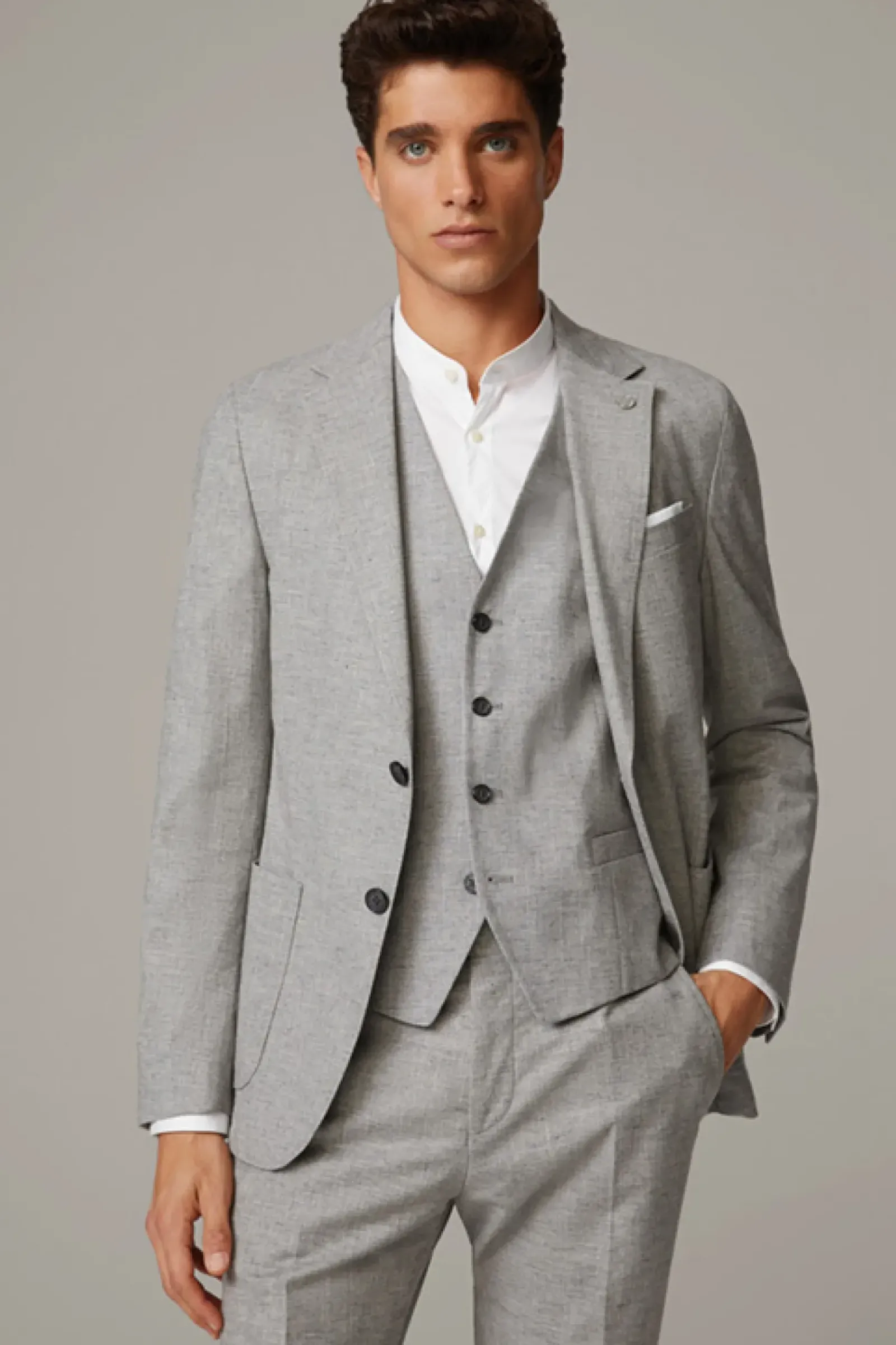 Das aus einem italienischen Baumwoll-Blend gefertigte Baukasten-Sakko Acon begeistert als klassischer SLIM FIT Einreiher mit Reverskragen, Einschubtaschen und AMF-Nähten – perfekt für smarte Looks mit Hose Luc und Weste Gawin. Auch gut zu tragen bei Hochzeit oder anderen besonderen Anlässen