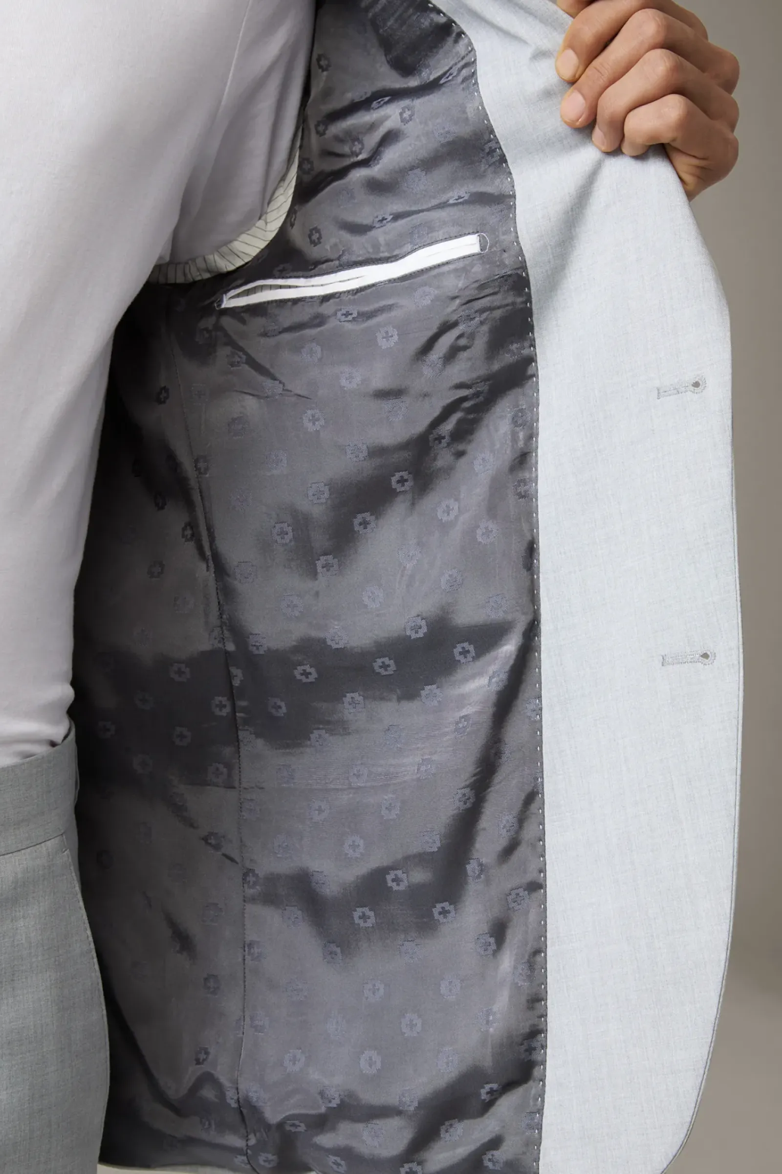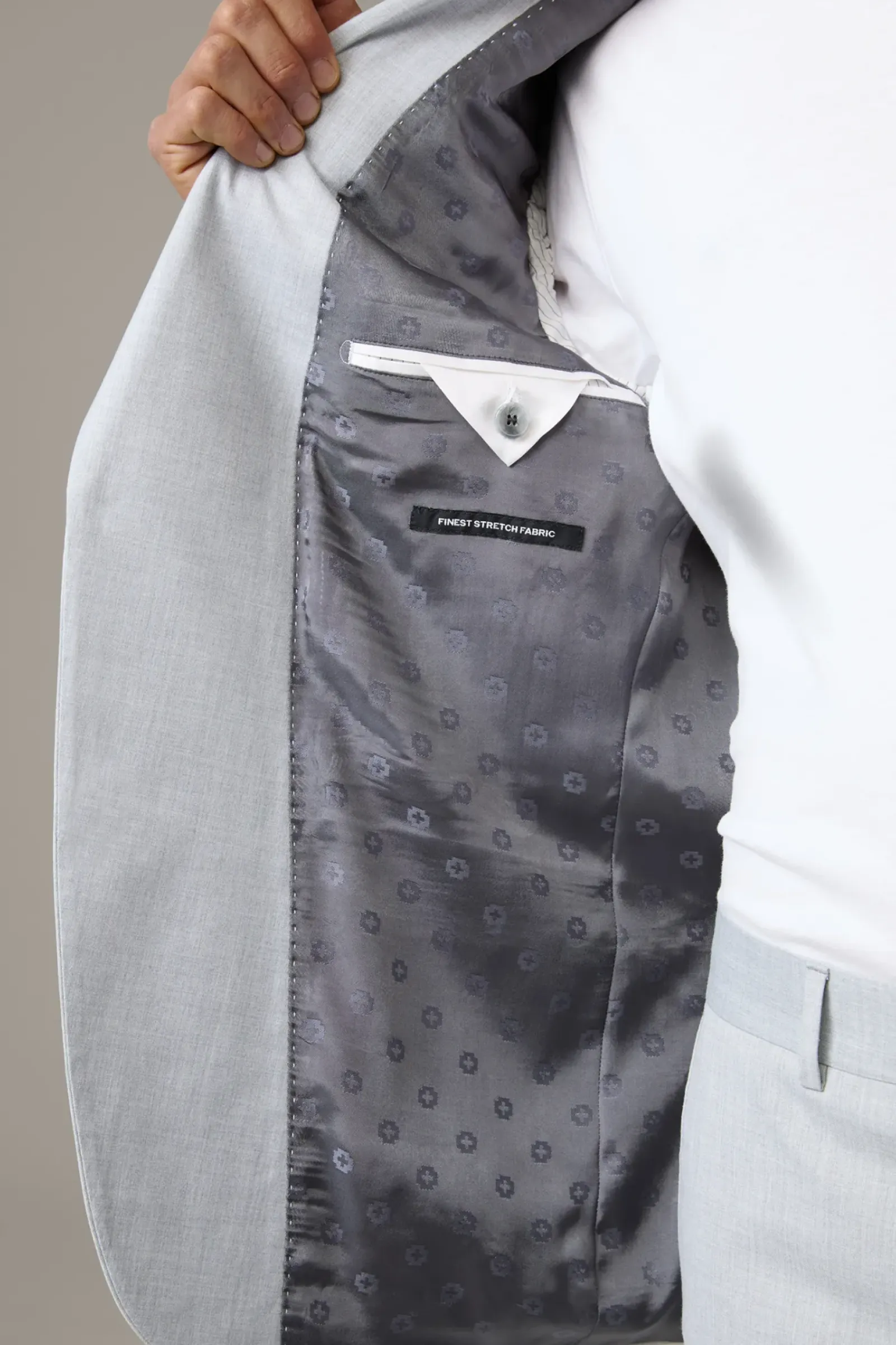 Stilvoll schmales Design: Das Baukasten-Sakko Aidan im Viskose-Blend mit Futter im Signé-Print, klassischem Revers und Pattentaschen.