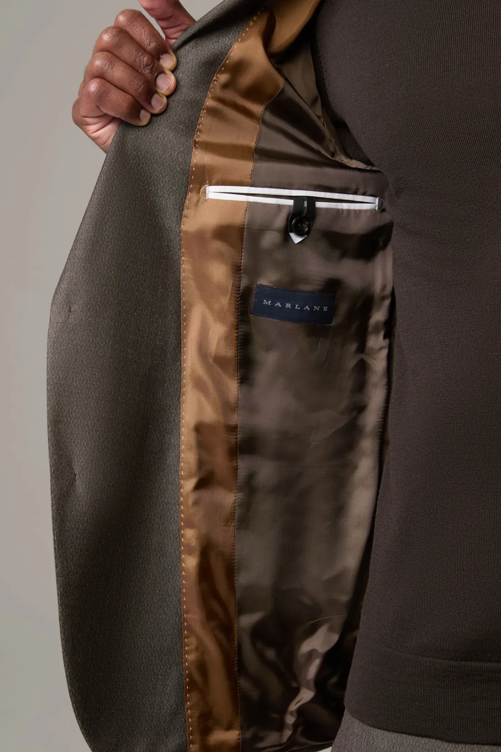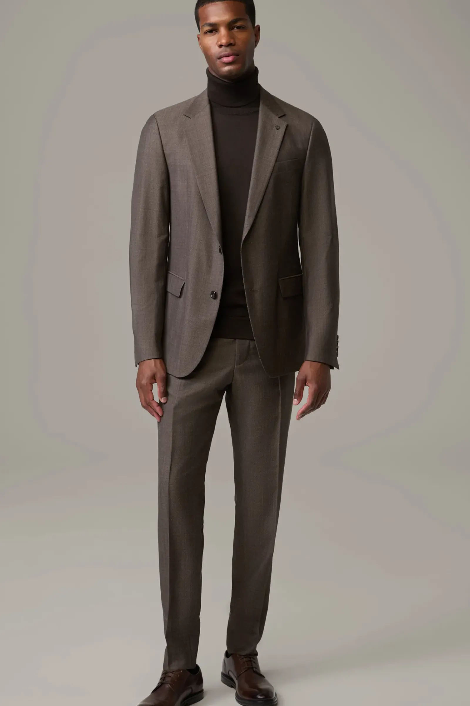 Präsentiert sich als Perfect Match zur Anzughose Melwin: das Sakko Alzer im dezenten Muster mit paspelierten Pattentaschen und Logo-Pin am Revers. Weberei Marlane.
