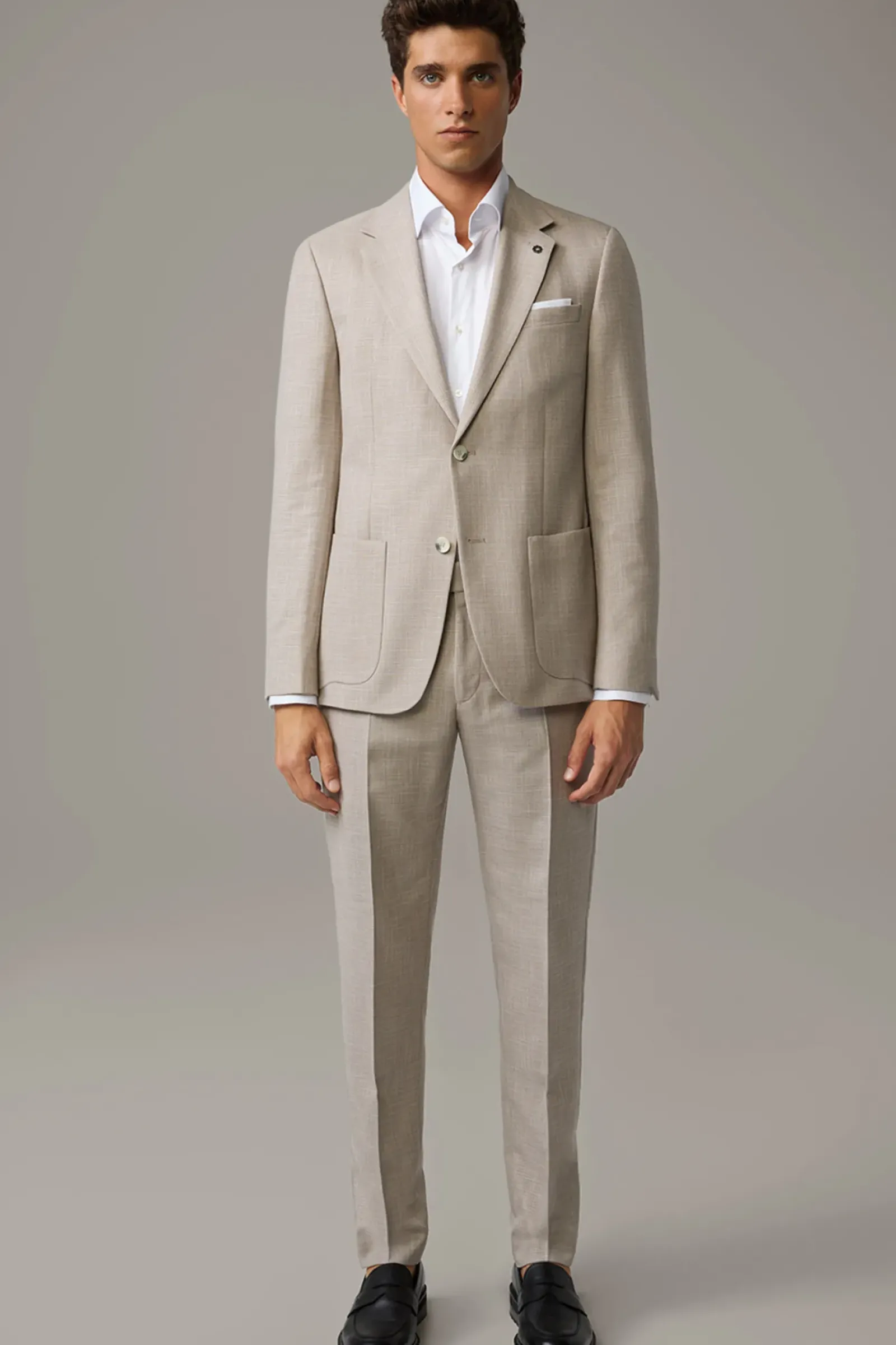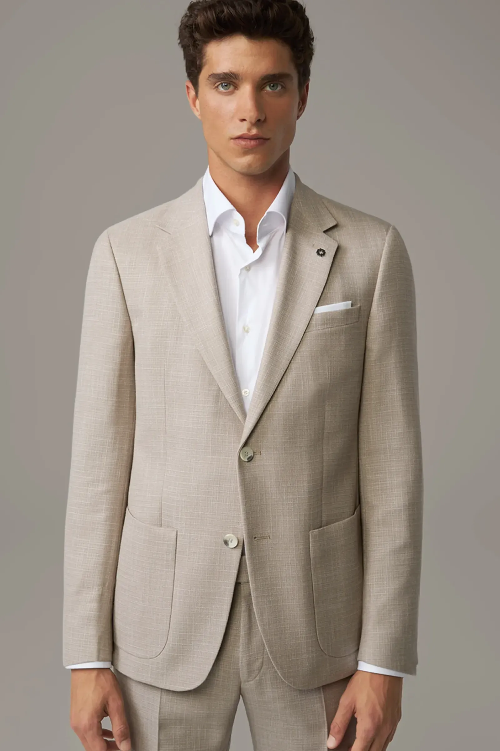 Souveränes Key Piece: Sakko Arndt mit aufgesetzten Eingrifftaschen, Zierärmelschlitzen und fließendem Innenfutter. Der Logo-Pin setzt ein signaturetypisches Finish. Perfekt zu kombinieren mit der passenden Hose Melwin.