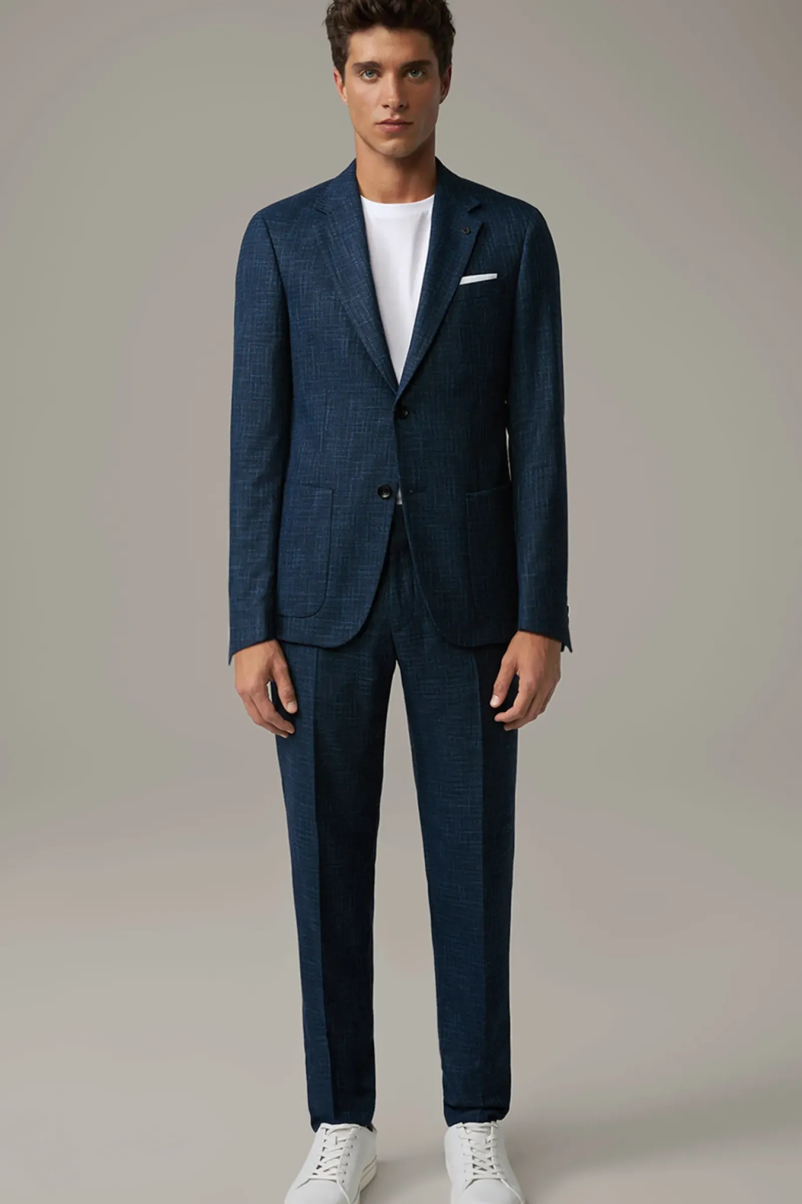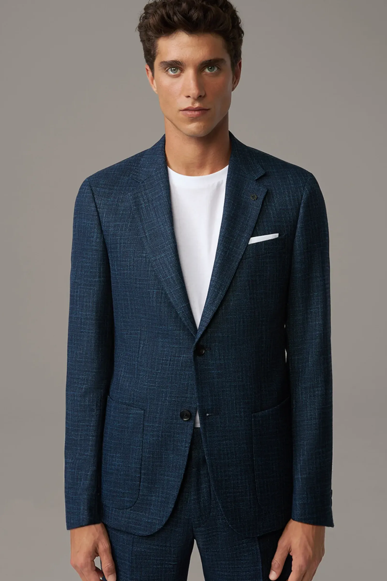 Souveränes Key Piece: Sakko Arndt mit aufgesetzten Eingrifftaschen, Zierärmelschlitzen und fließendem Innenfutter. Der Logo-Pin setzt ein signaturetypisches Finish. Perfekt zu kombinieren mit der passenden Hose Melwin.