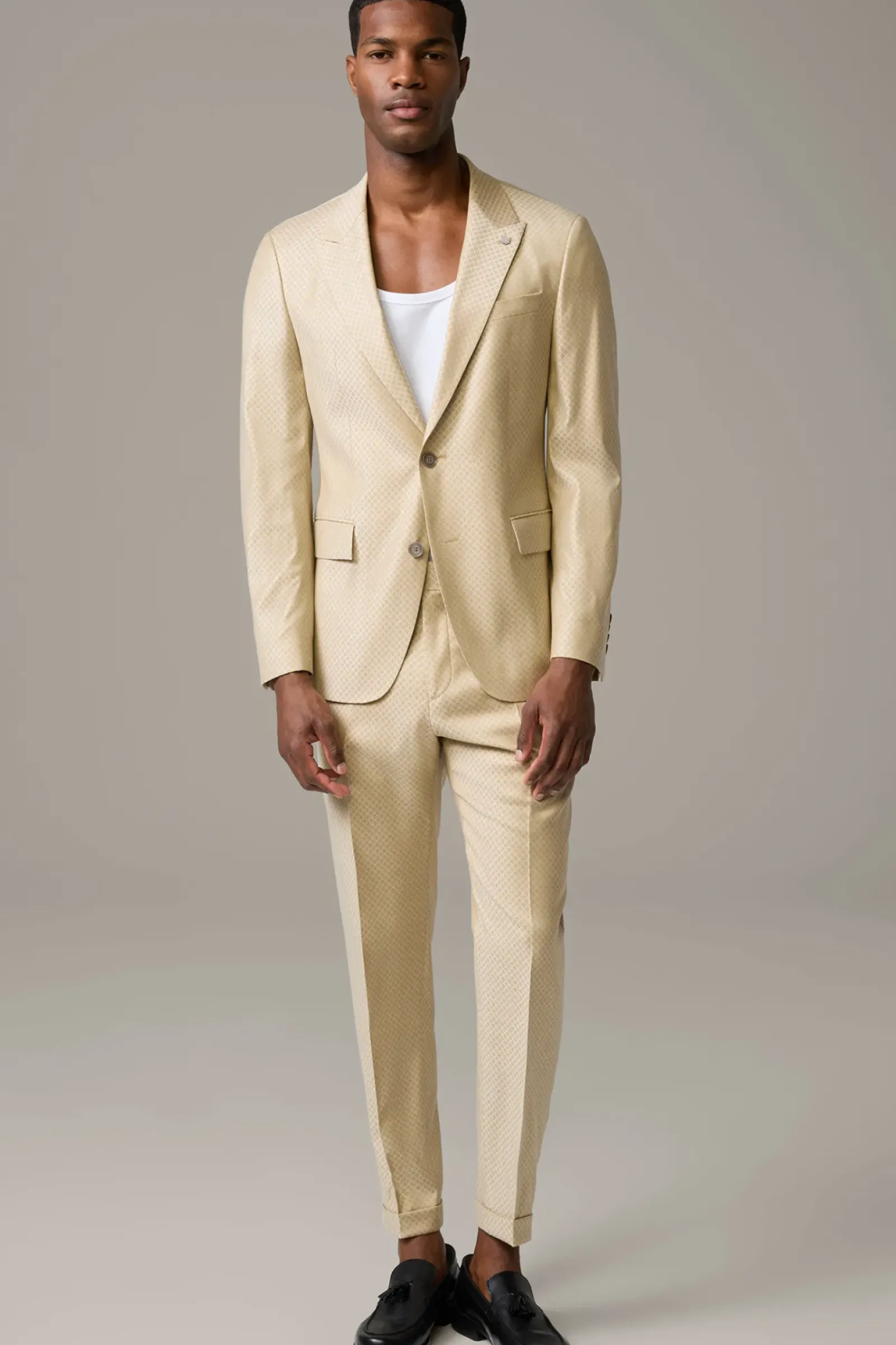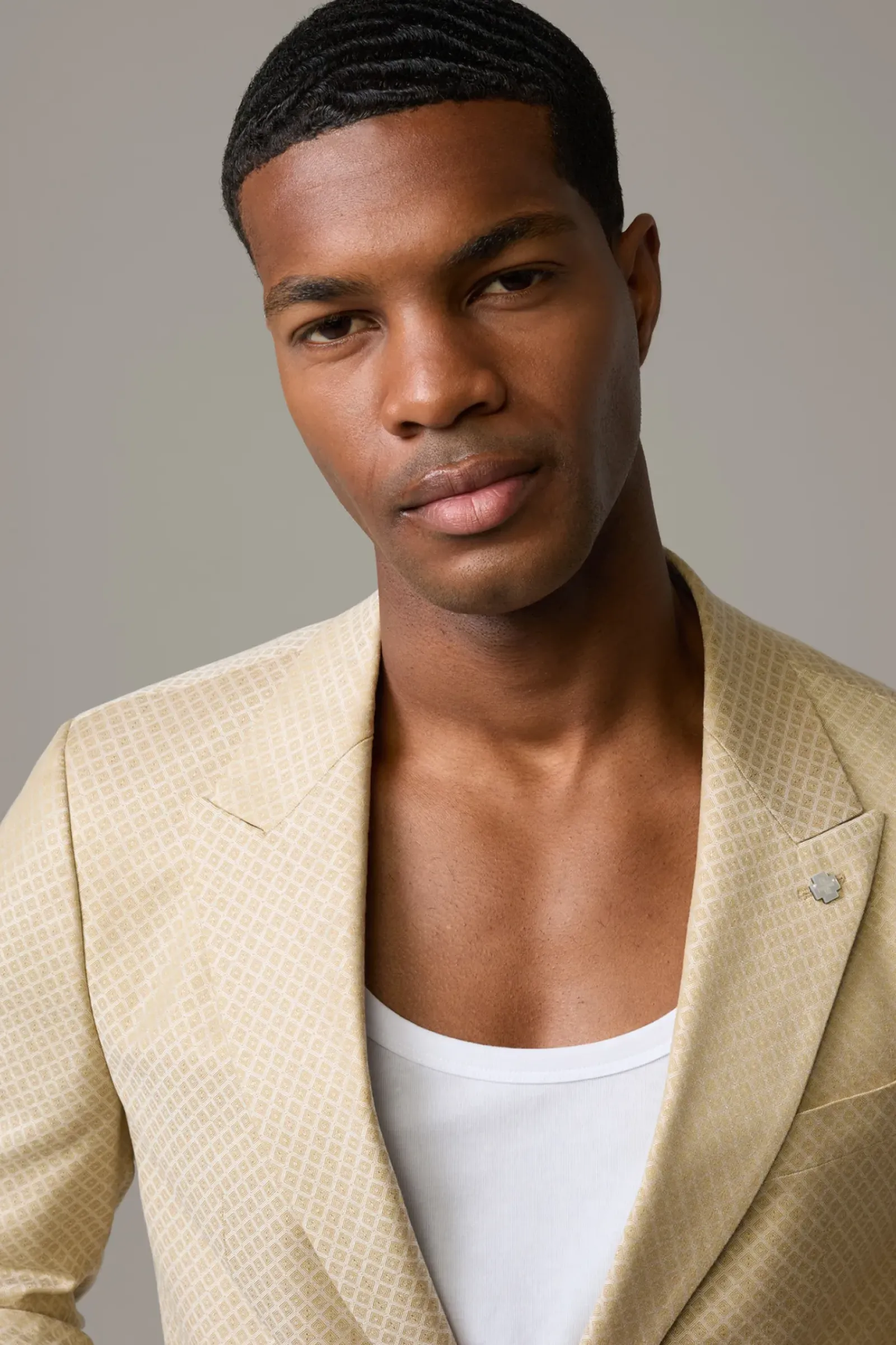 Im italienischen Schurwoll-Mix begeistert das Sakko Ayres als Eyecatcher für feine Anlässe. Ein steigendes Revers mit Logo-Pin und paspelierte Pattentaschen betonen das klassische Design. Perfekt zu kombinieren mit der passenden Hose Luc.