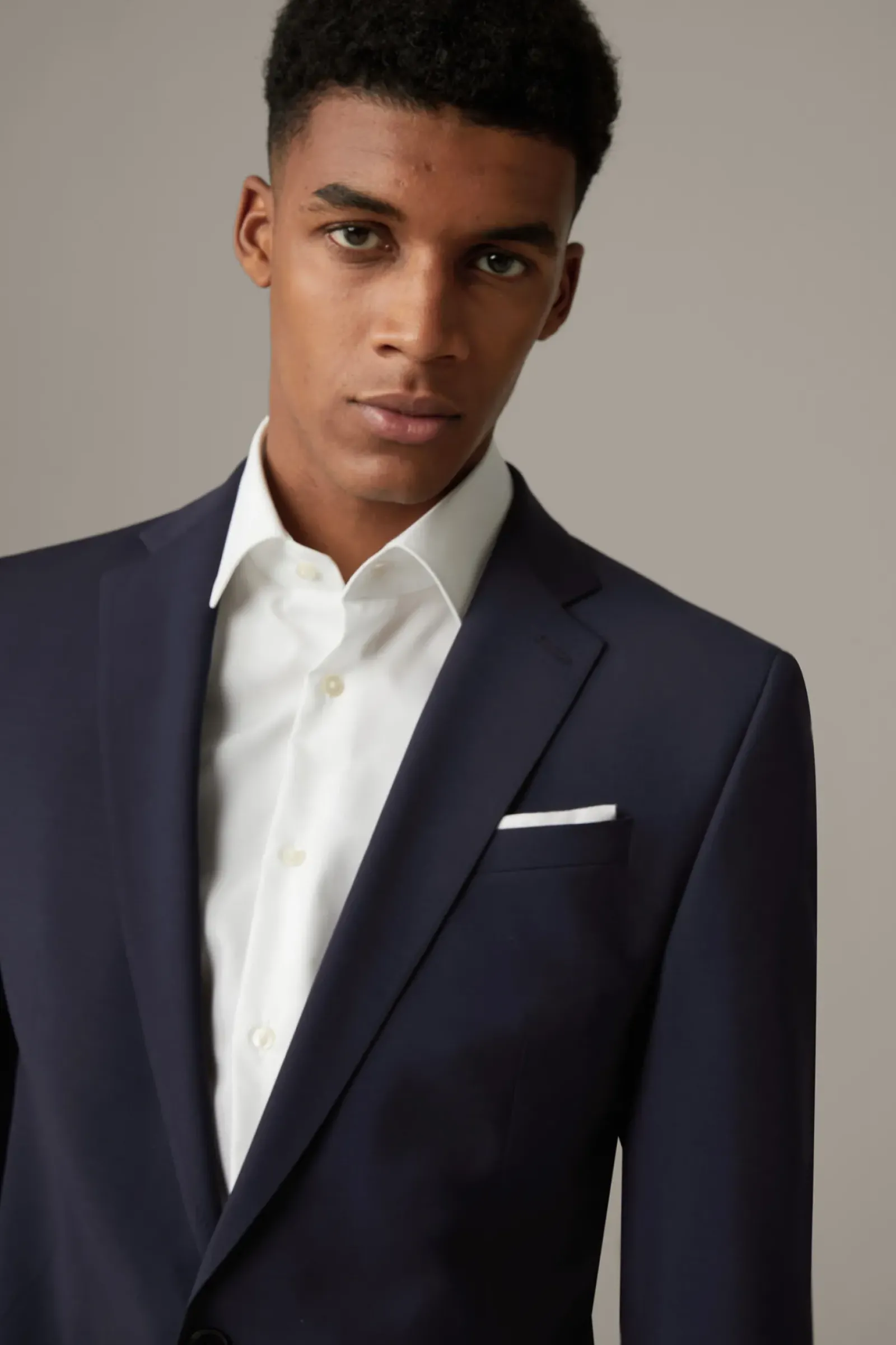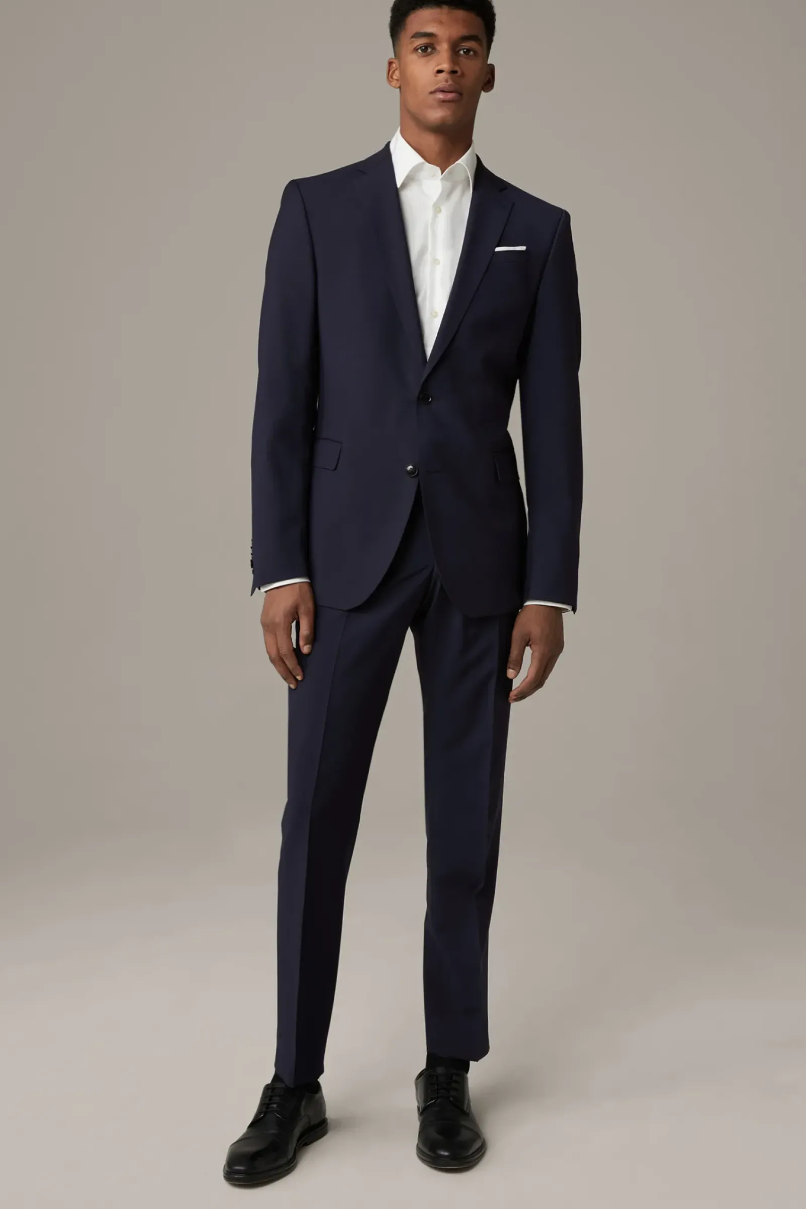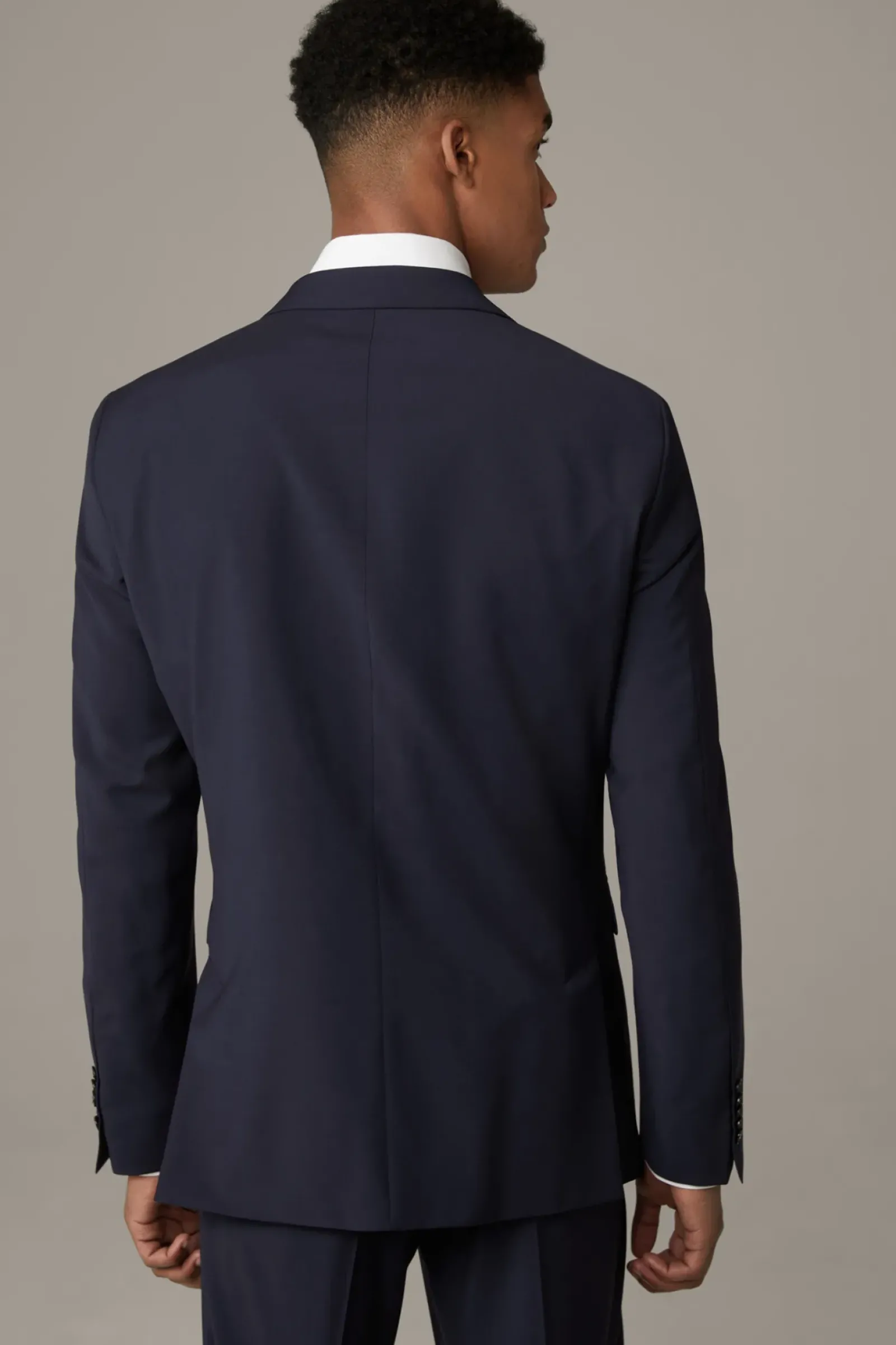 Aus luxuriöser Schurwolle überzeugt das Sakko Rick mit natürlichem Super 100’s Stretch in italienischer Qualität. Paspelierte Pattentaschen setzten einen edlen Akzent – in Kombination mit der Anzug-Hose Jans ein stilvoller Business-Look.