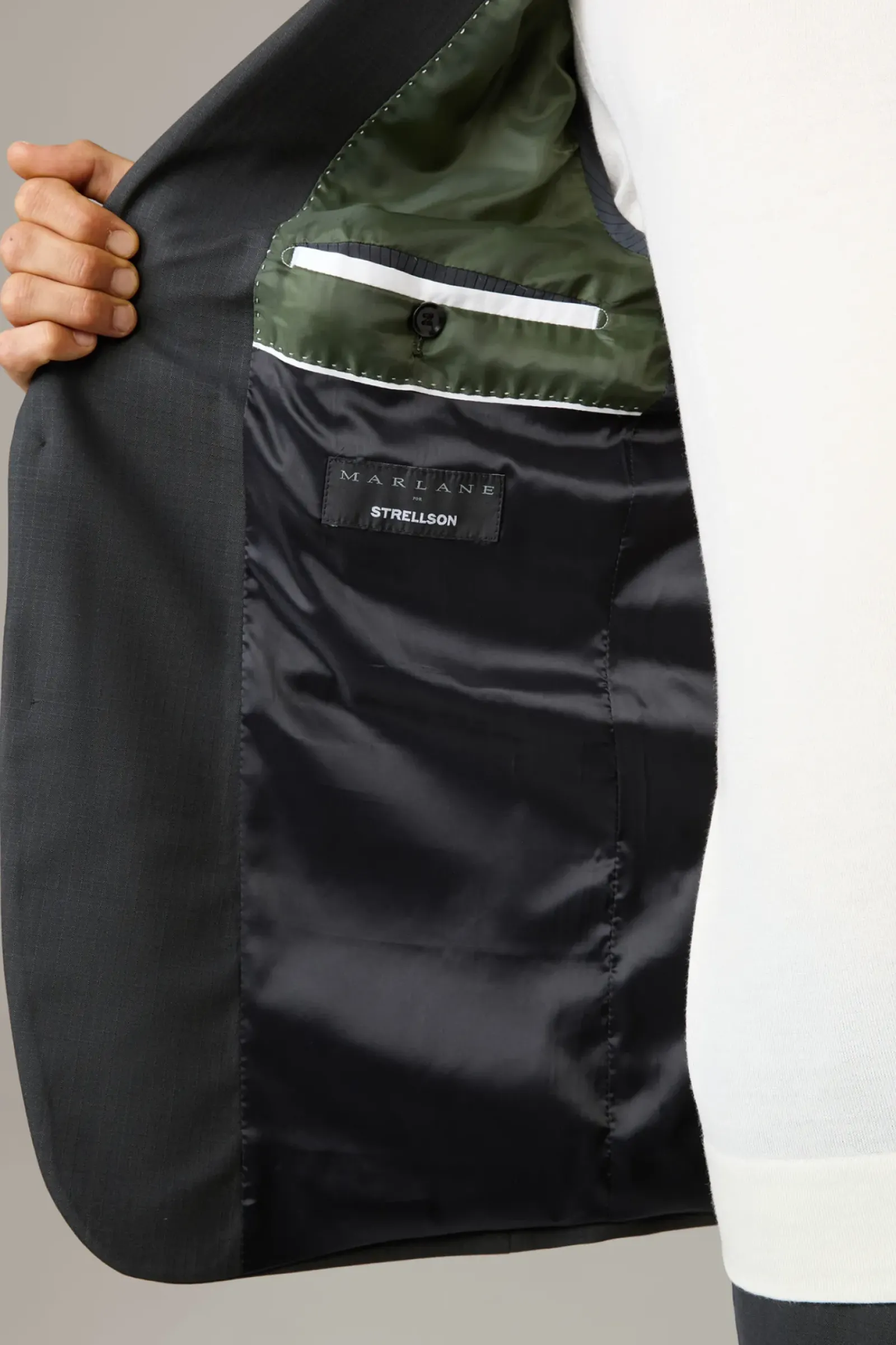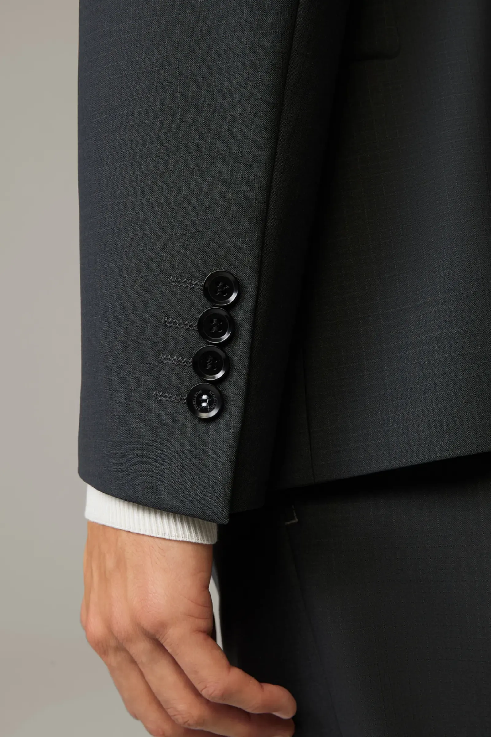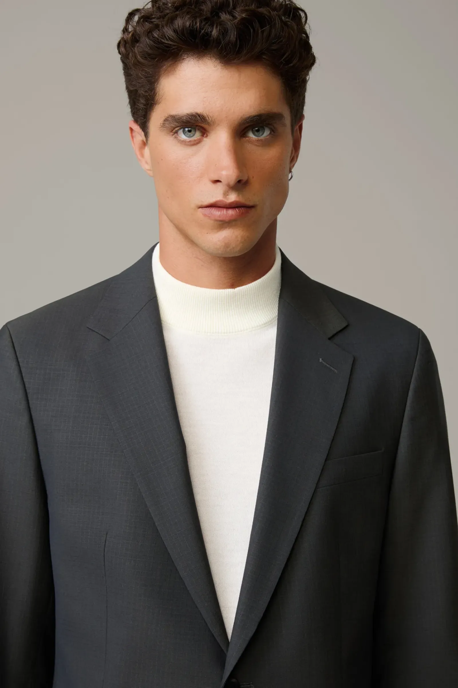 Aus komfortablem Schurwoll-Stretch in extraschmaler Silhouette: das Sakko Caidan im Einreiher-Design mit paspelierten Pattentaschen und Bewegungsschlitzen. Fließendes Futter mit AMF-Stitching.