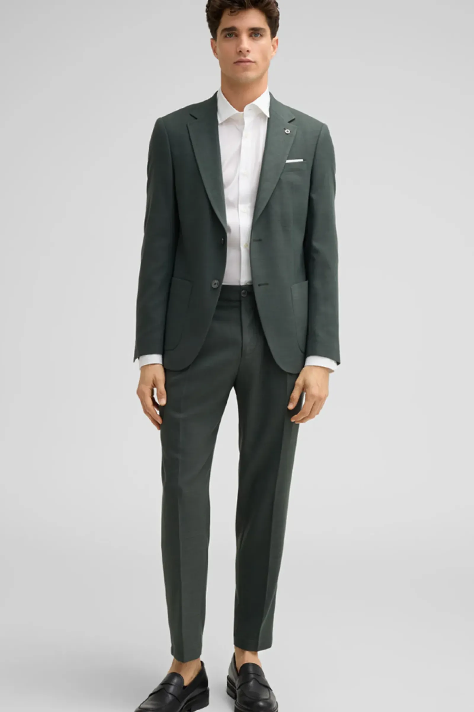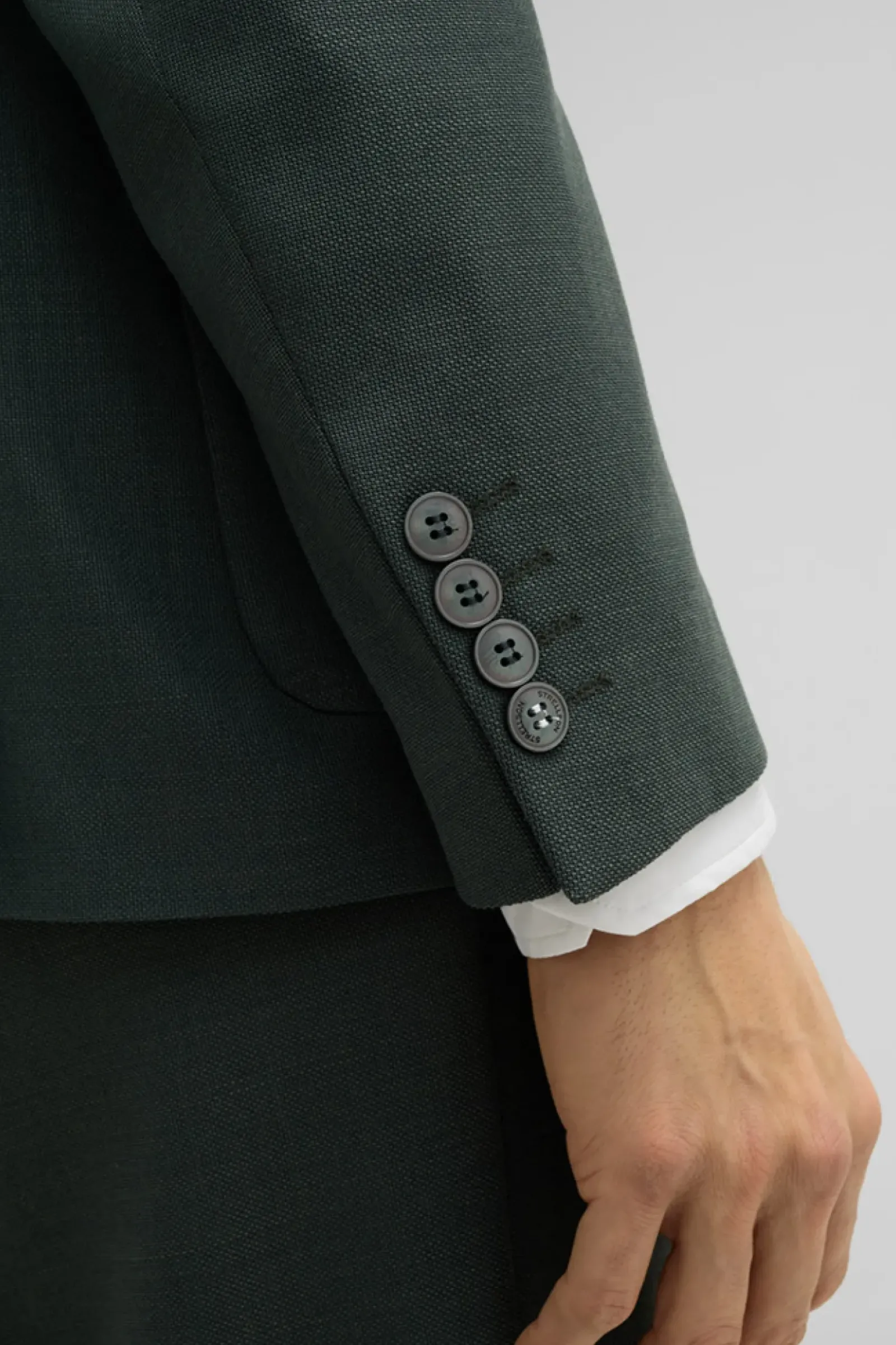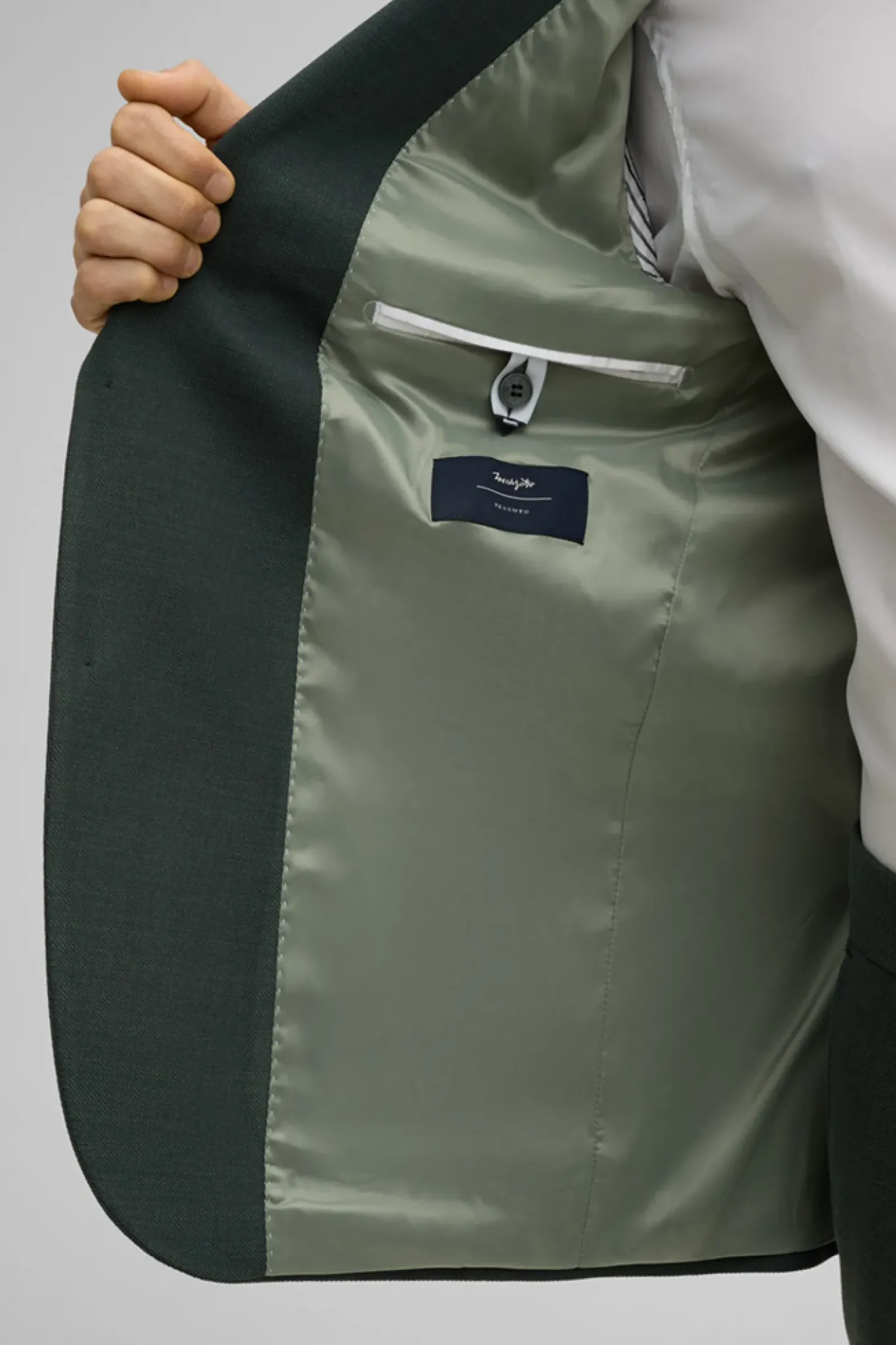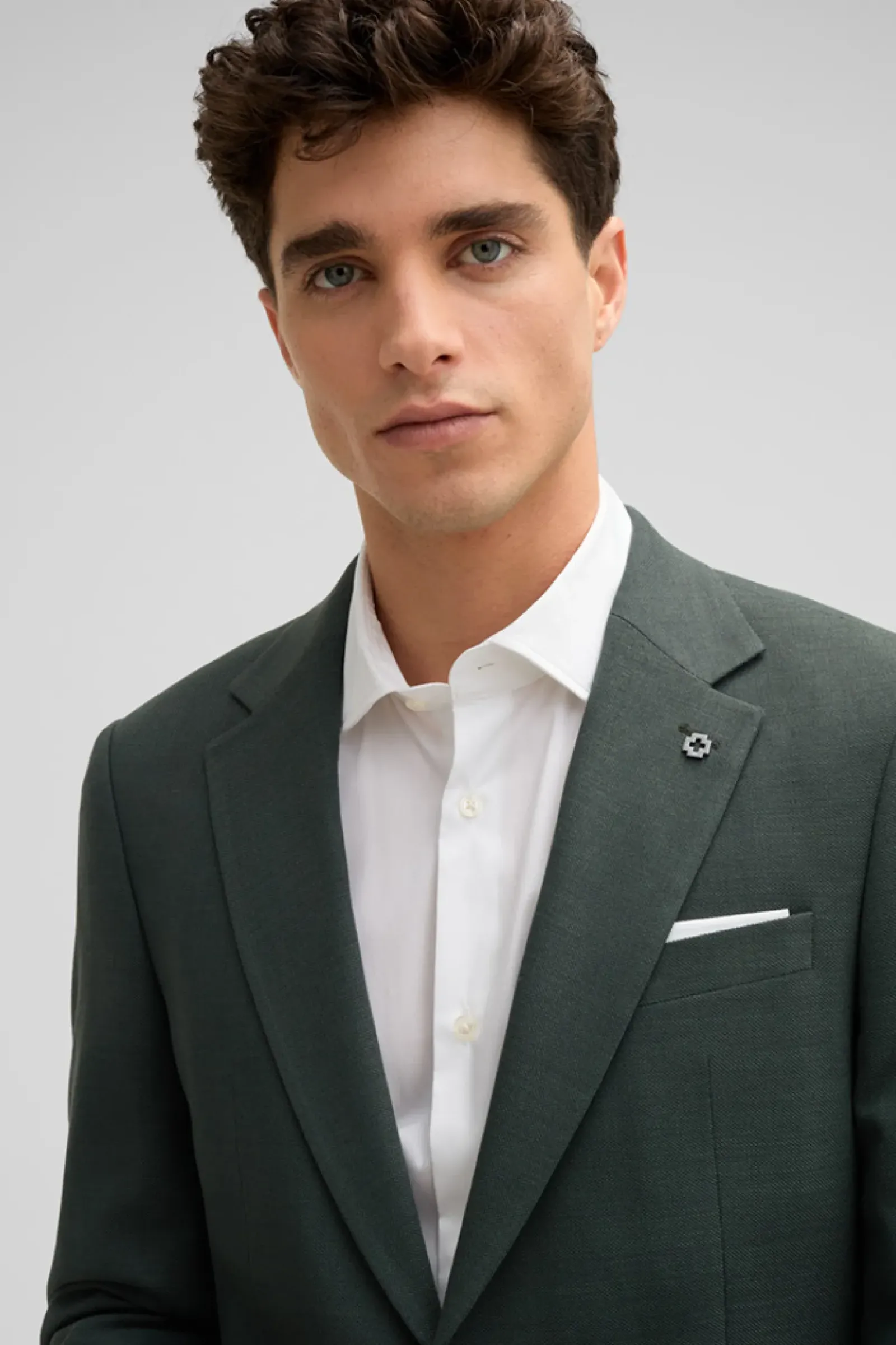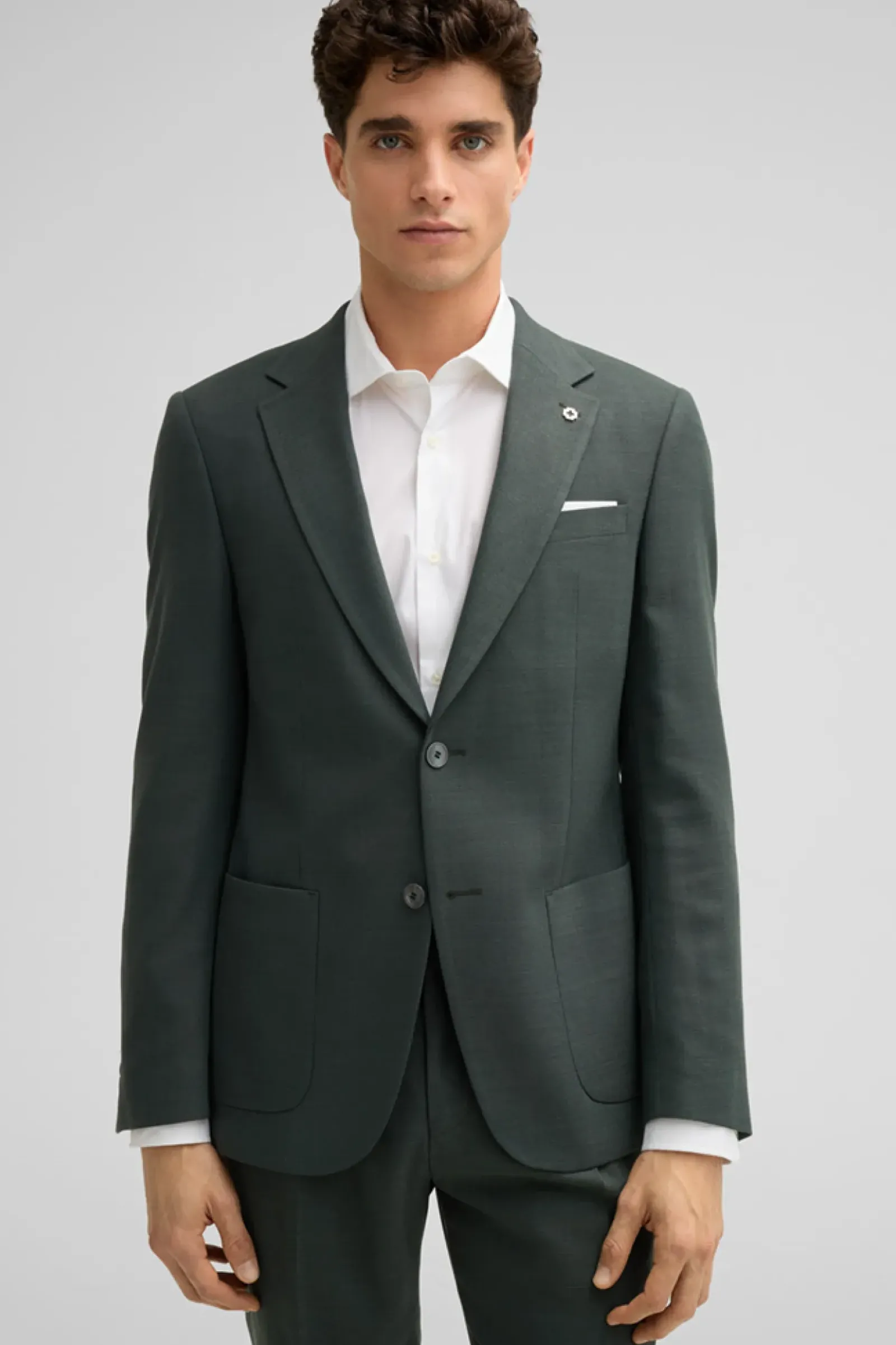 Klassisches Item im leicht strukturierten Design: das Sakko Arndt mit aufgesetzten Taschen, Revers und fließendem Innenfutter. Akzente setzen ein Logo-Pin und changierende Knöpfe.