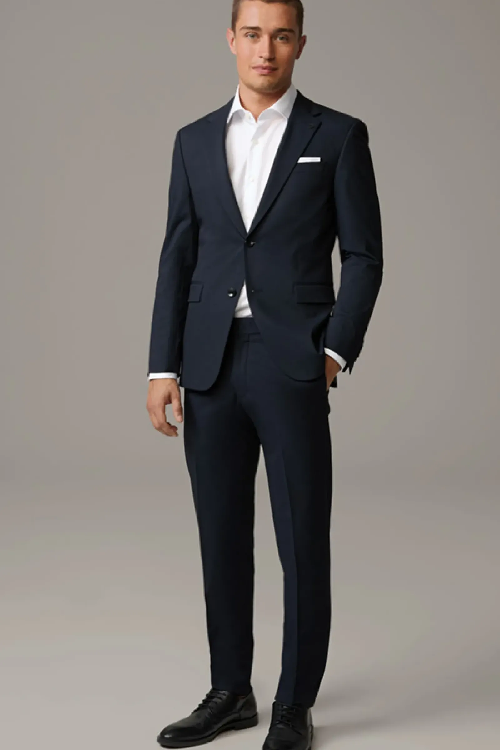 Begeistert als Einreiher mit fallendem Revers, paspelierten Pattentaschen und Bewegungsschlitzen. Mit ikonischem Signé-Pin und Innenfutter.