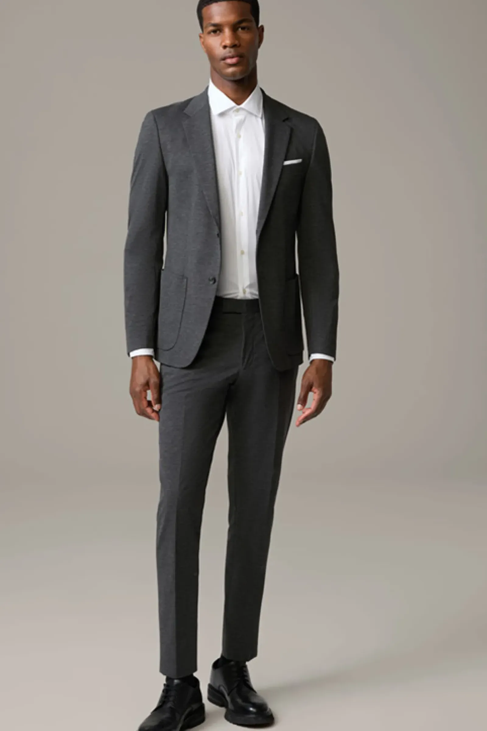 Die luxuriöse Jersey-Stretch-Qualität zeichnet das Sakko Arndt der Serie Flex Cross als variables Dresscode-Essential aus, akzentuiert mit modernen Eingrifftaschen – passend zur schmalen Hose Saturn.