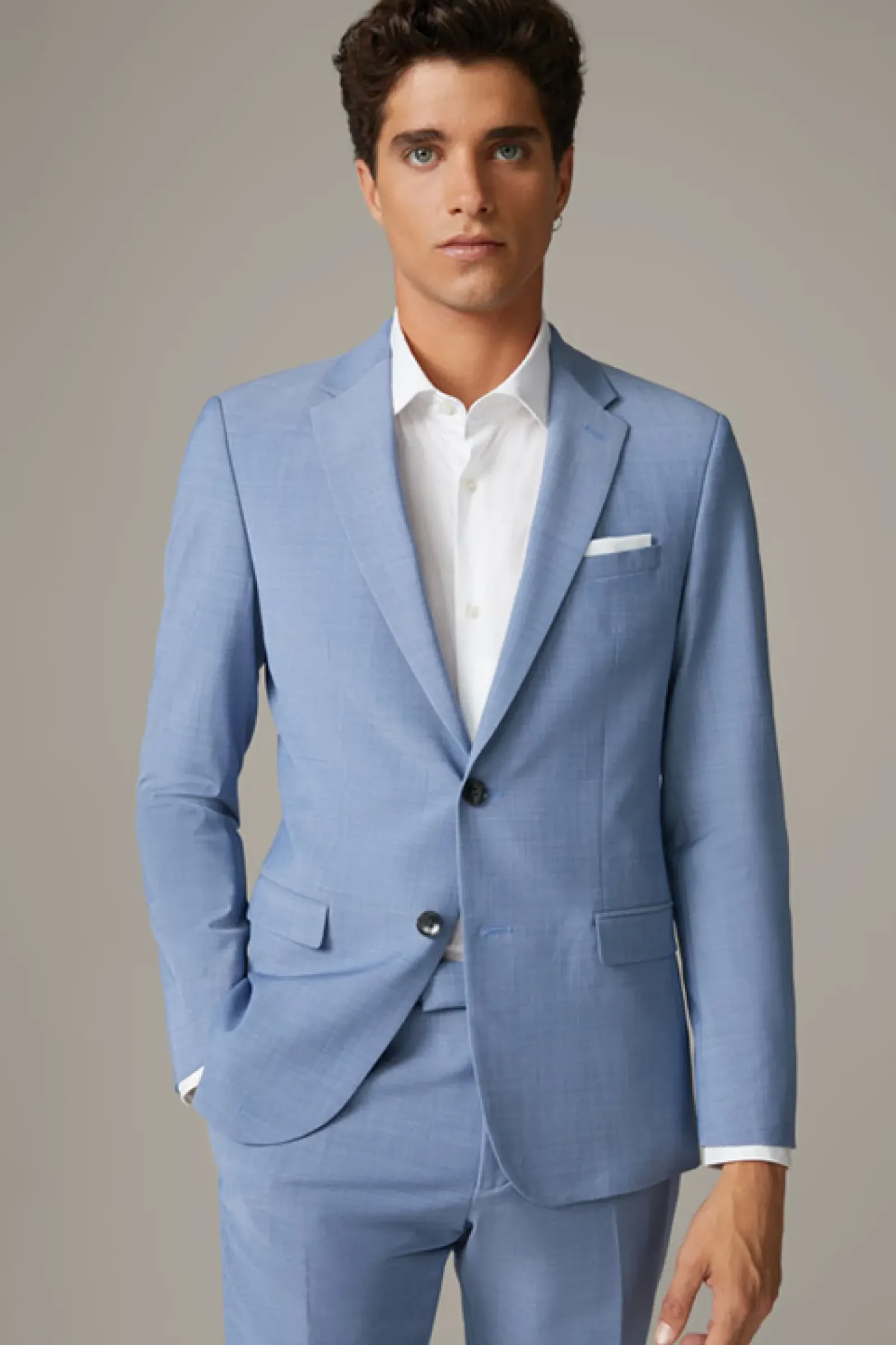 Klassisches Business-Piece: das Sakko Caleb mit Revers, Pattentaschen und Bewegungsschlitzen. Komfortabler Woll-Stretch mit glattem Futter.