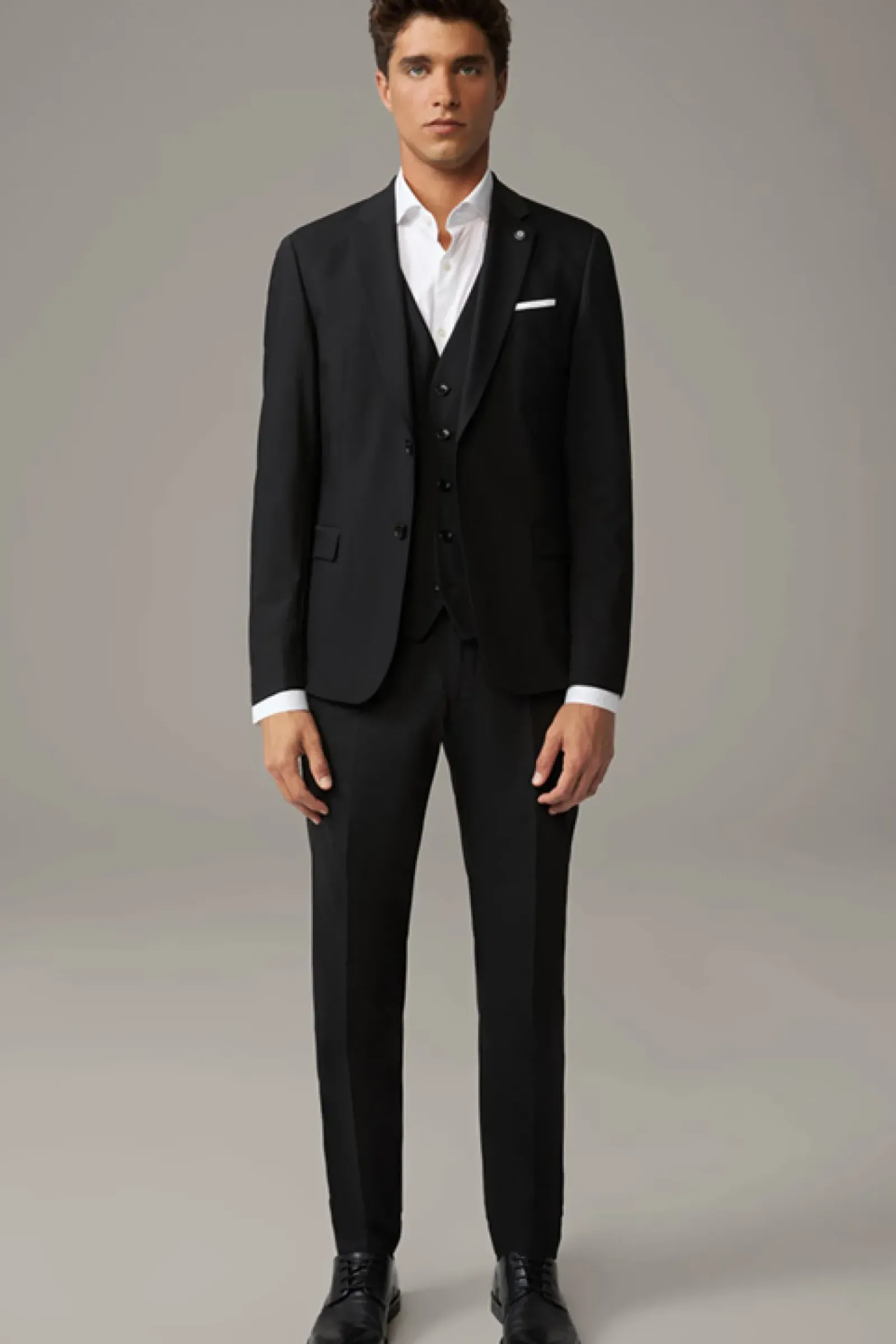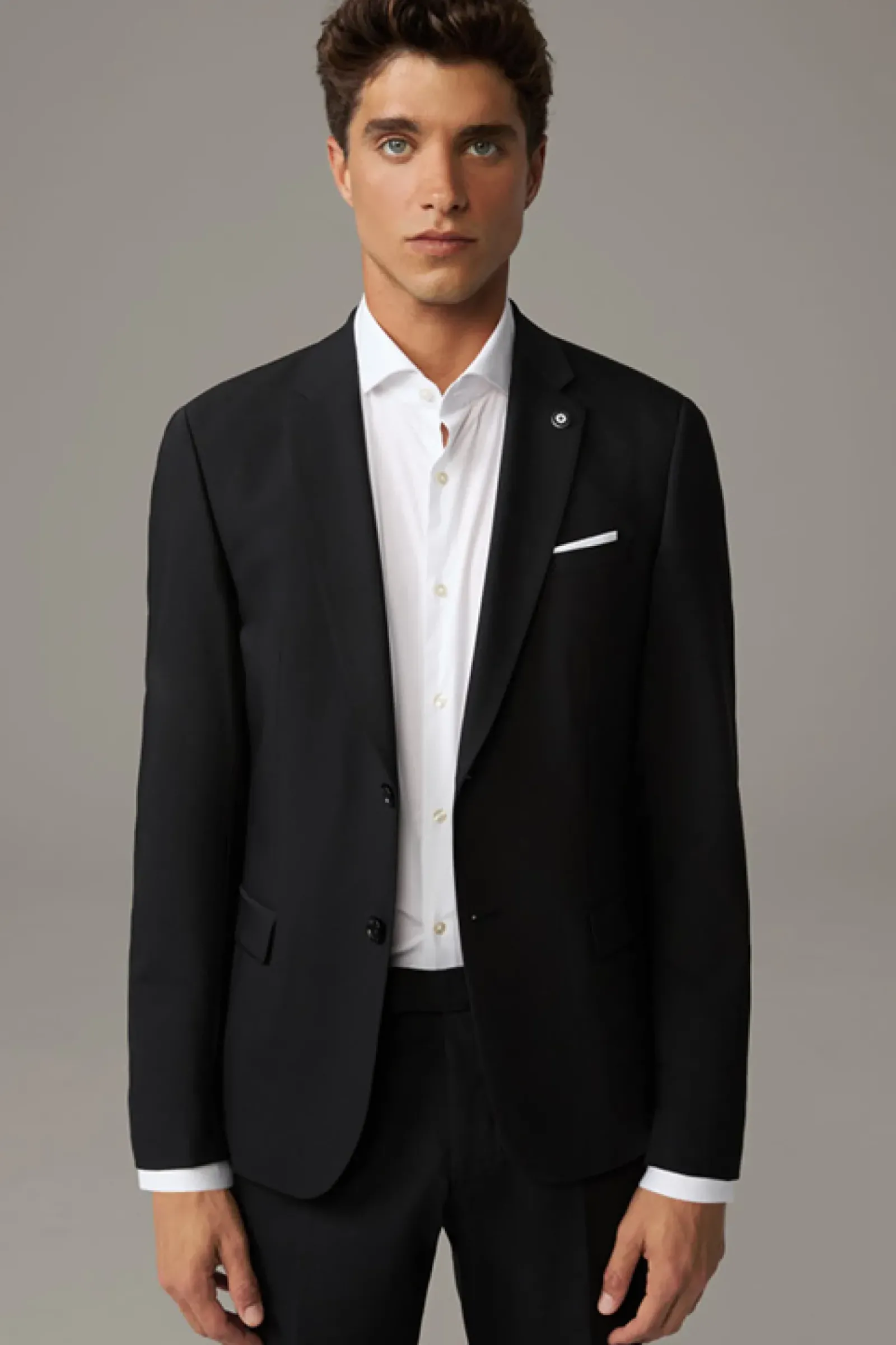 Mit fallendem Revers, Brustleistentasche und klassischen Bügelfalten überzeugt das elegante Flex Cross Sakko Caleb zu Business- und Fest-Anlässen. Die glatte Qualität im stretchigen Woll-Mix begeistert mit einem Maximum an Komfort.