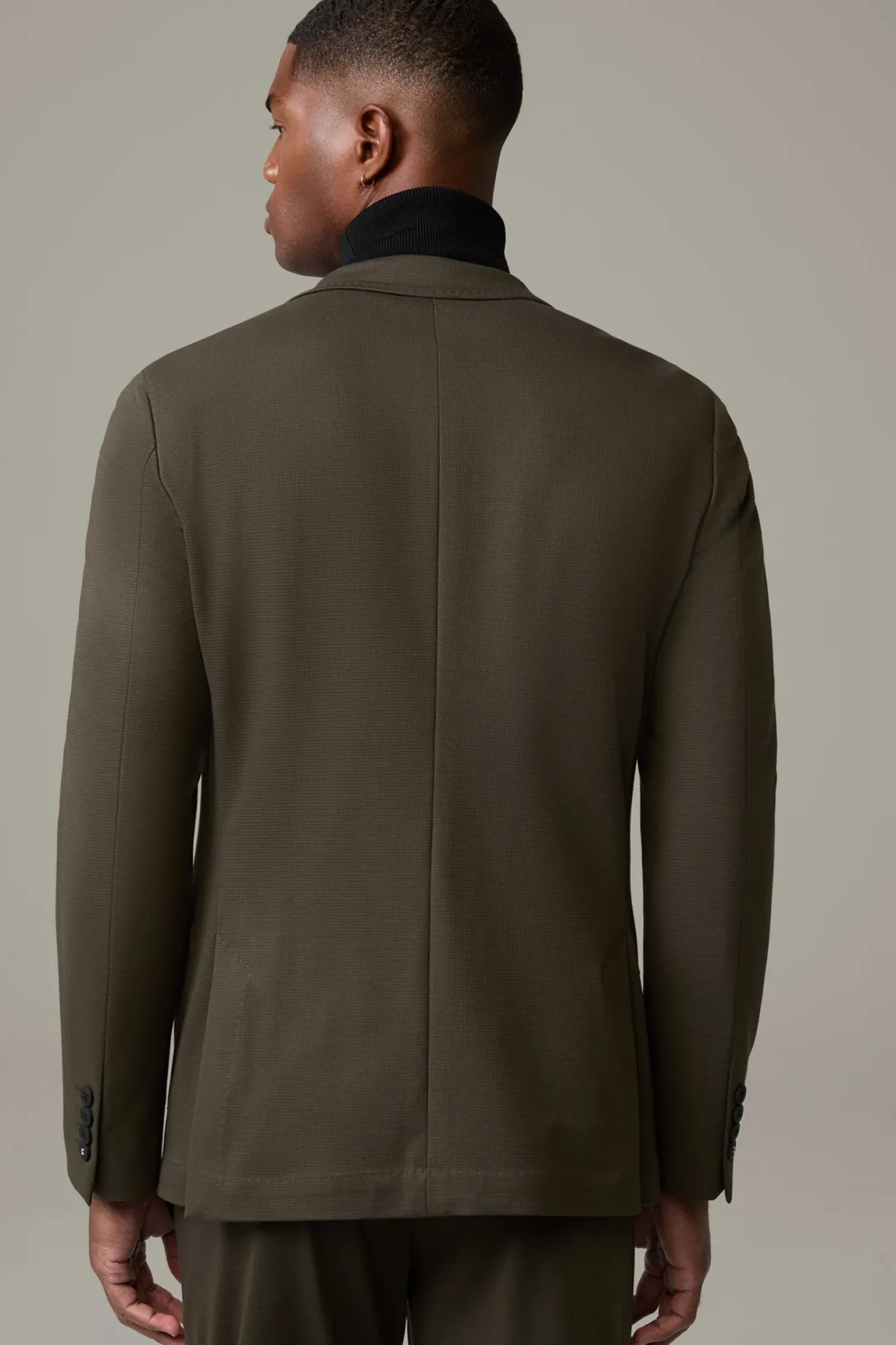 Komfortables Piece: Sakko Acon im strukturierten Ramie-Mix. Ein schmales Revers, paspelierte Pattentaschen sowie Duo-Bewegungsschlitze zeichnen das Item aus.