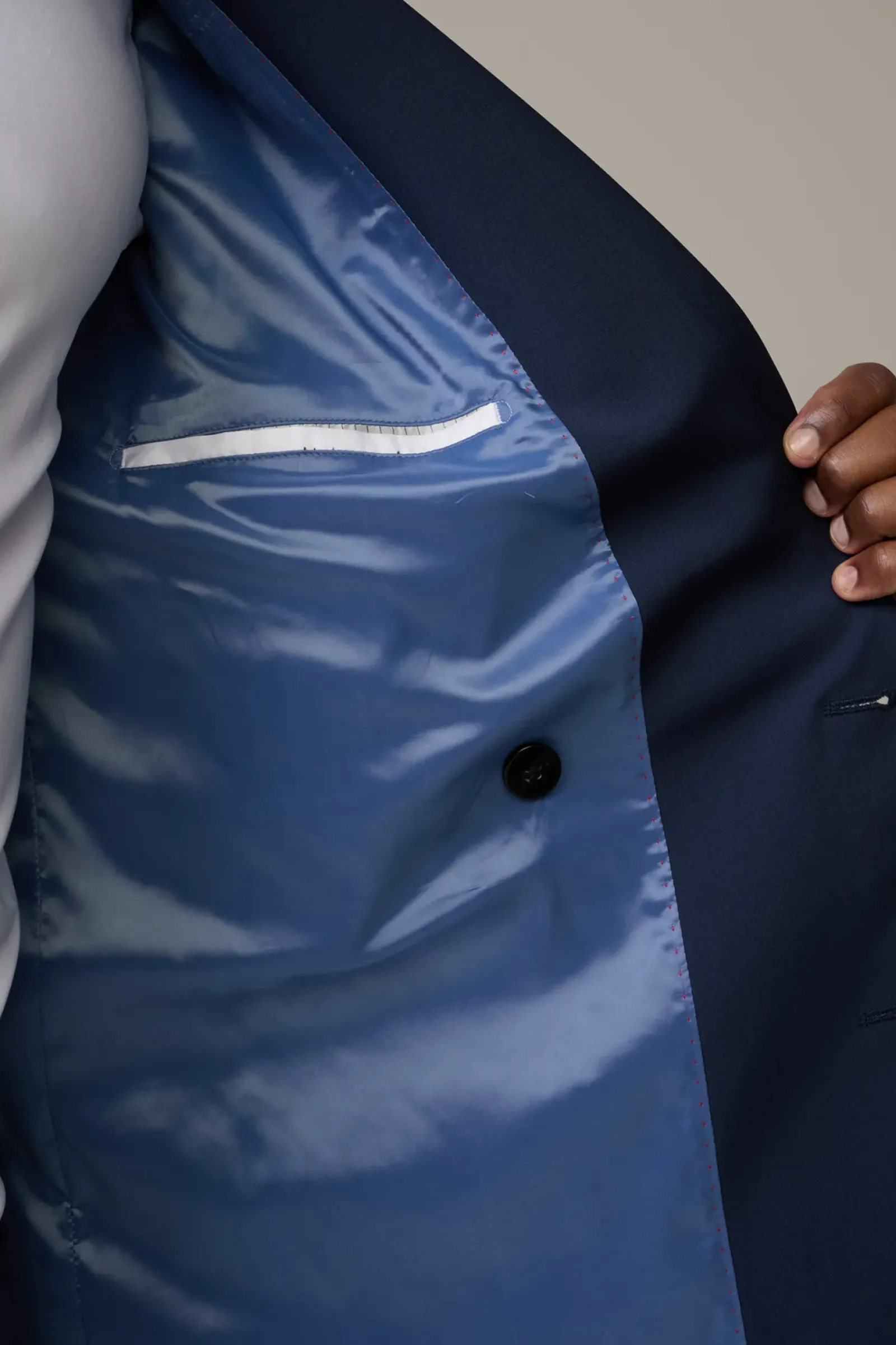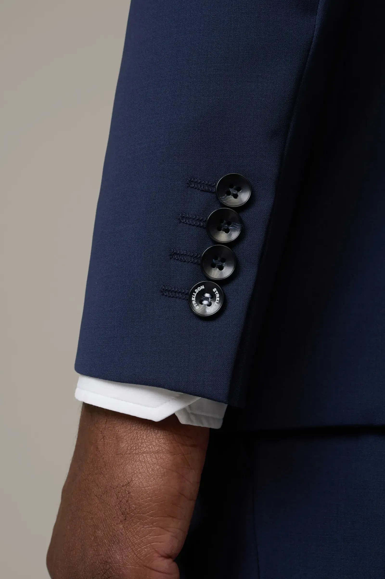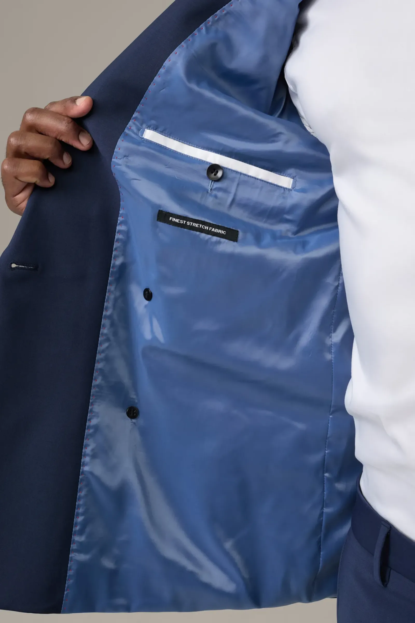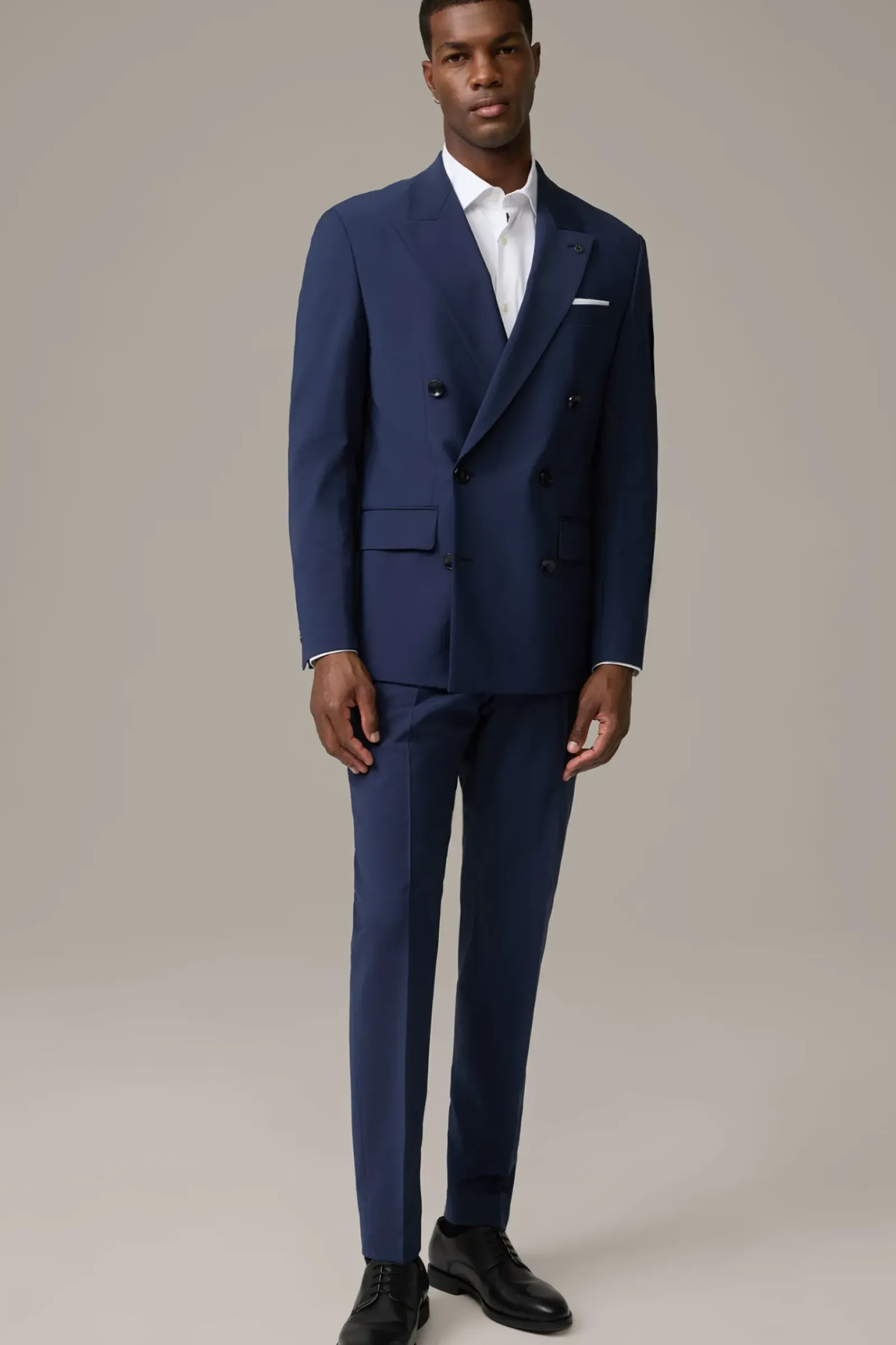 Für feine Anlässe: der Zweireiher Ashton im komfortablen Wool-Stretch mit steigendem Revers, paspelierten Pattentaschen und Bewegungsschlitzen. Vollgefüttert.